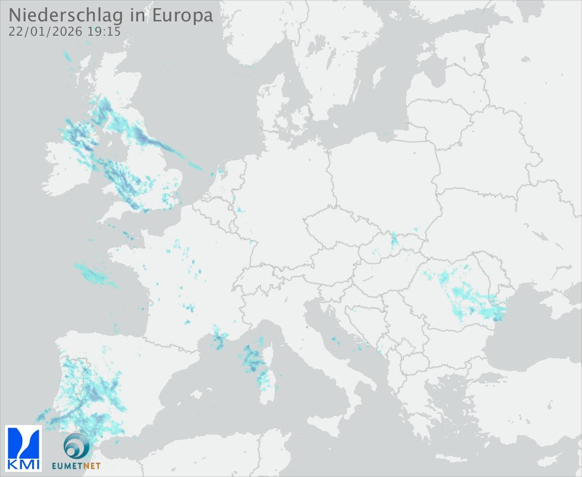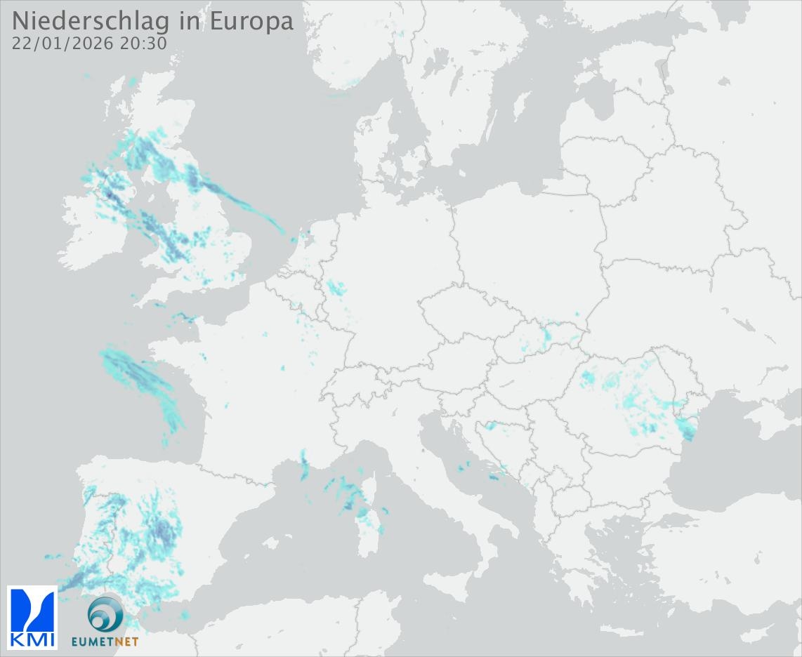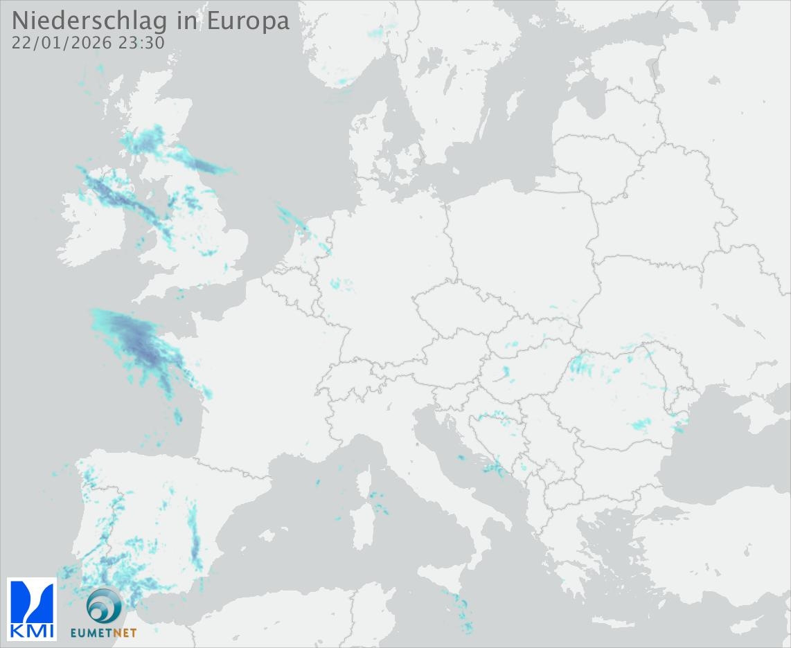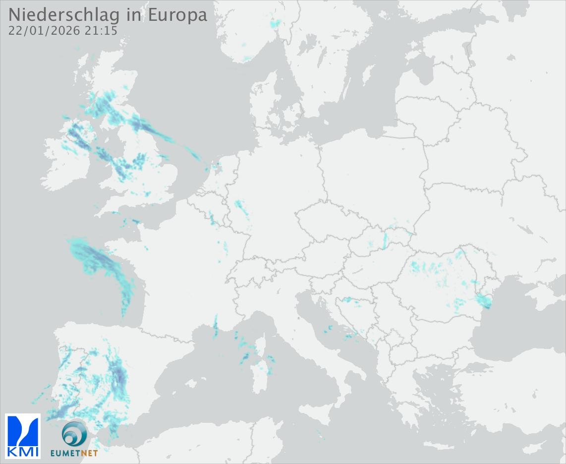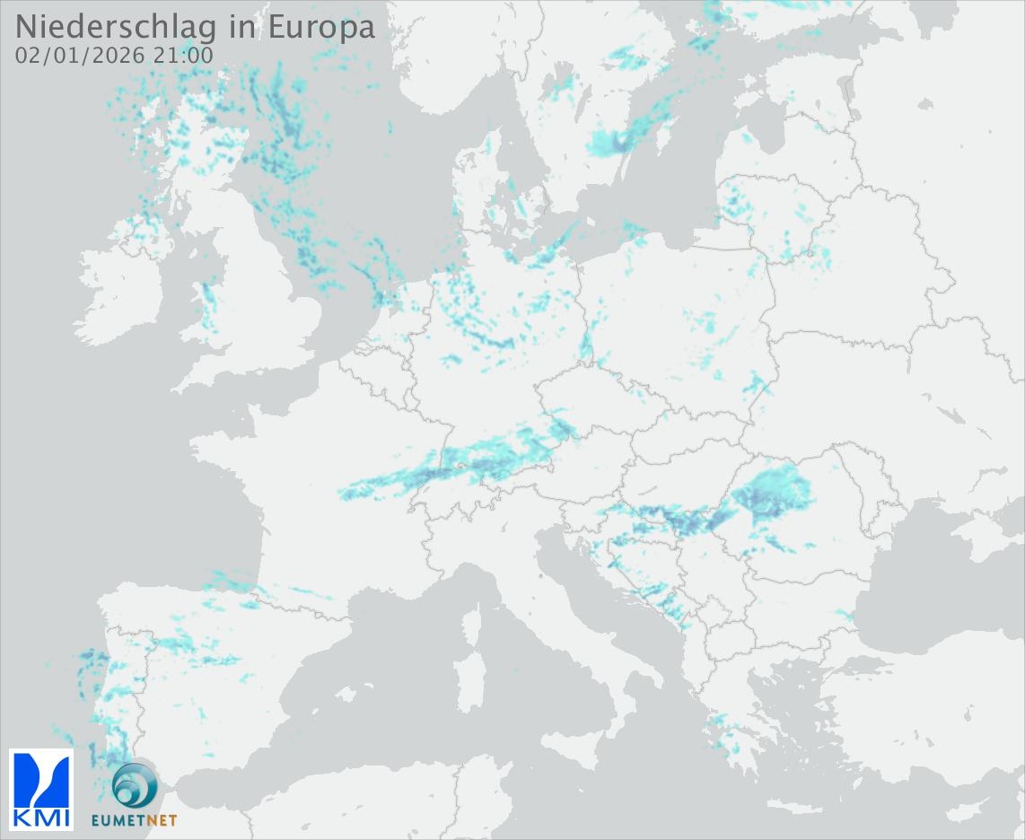 Diese Animation zeigt den gefallenen Niederschlag, gemessen durch die Regenradargeräte der europäischen Teilnehmer des Eumetnet-Programms OPERA (in 15-Minuten-Intervallen).