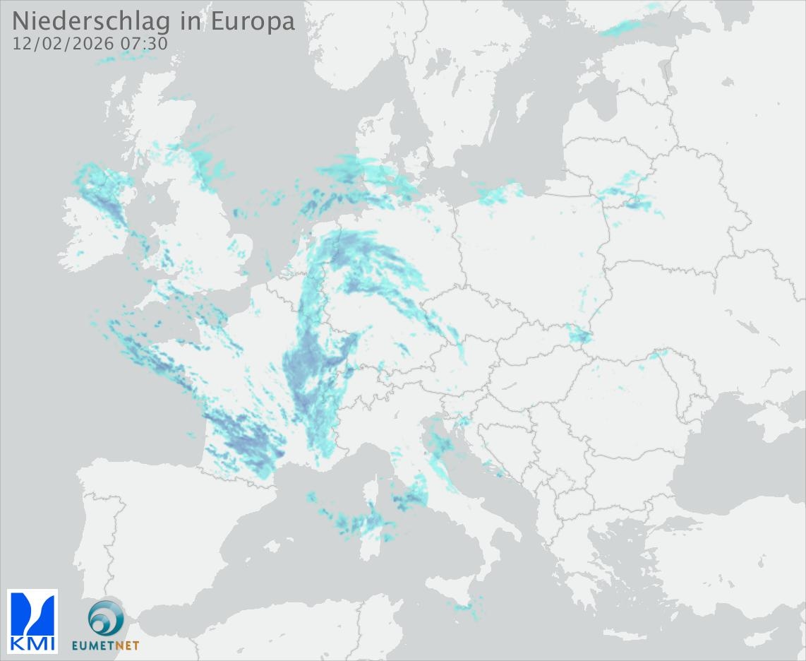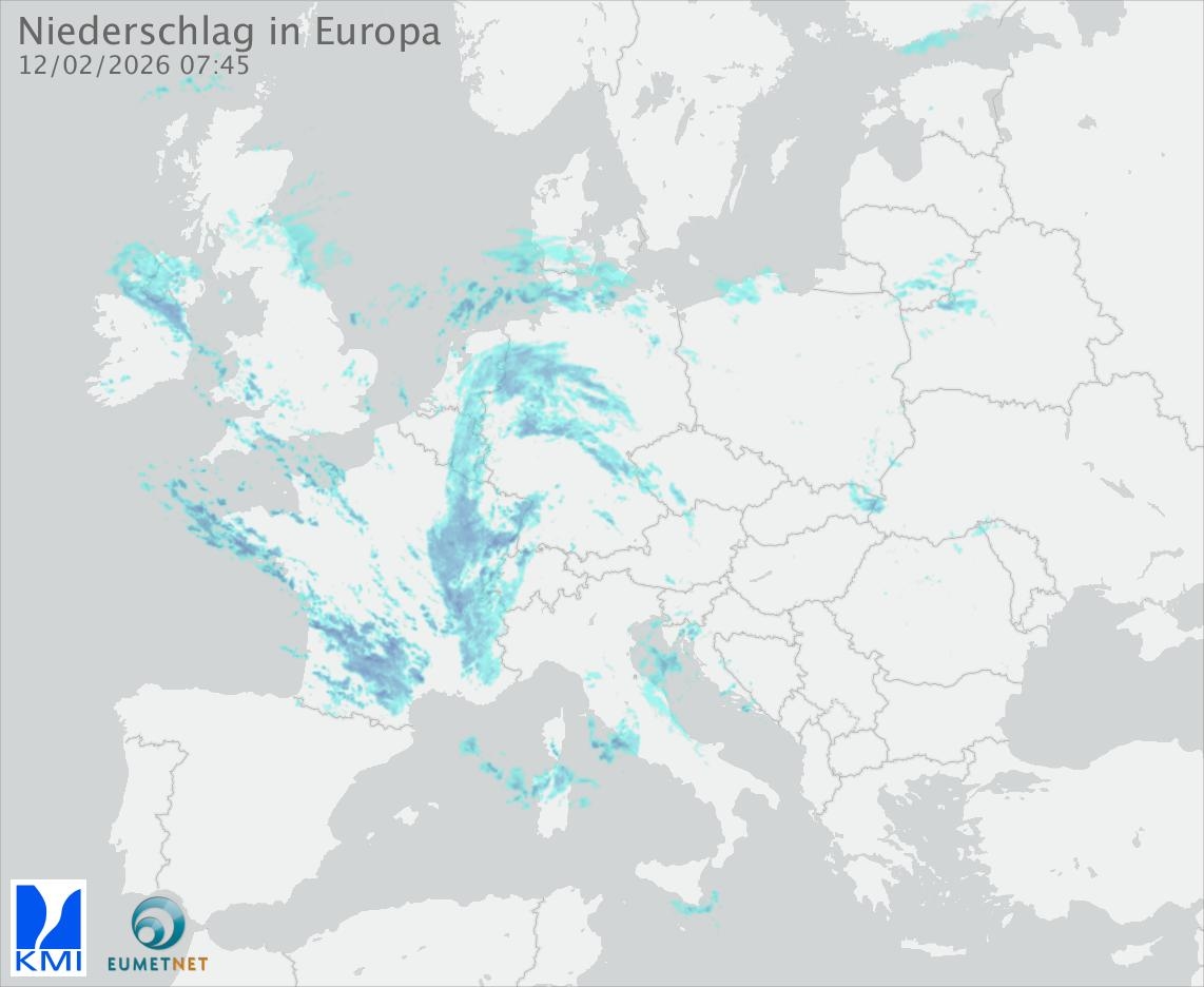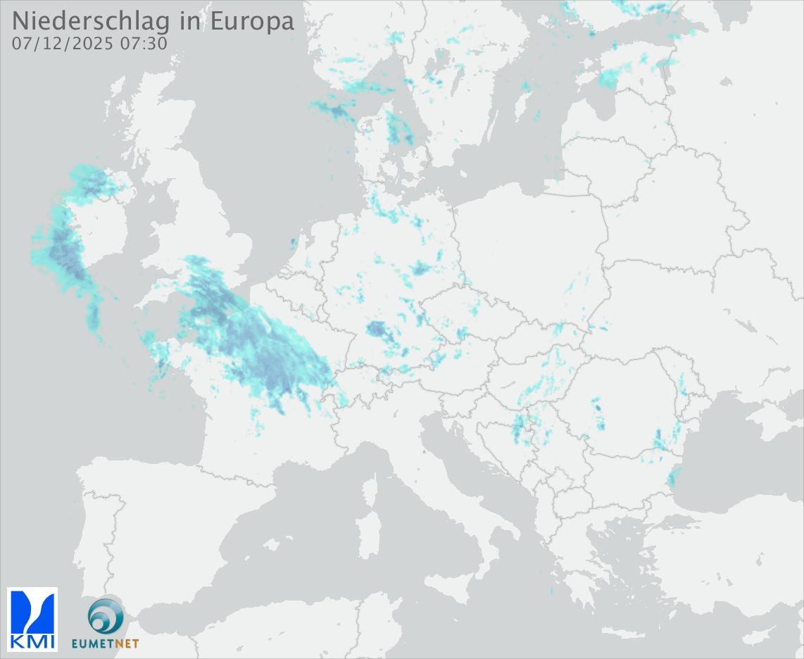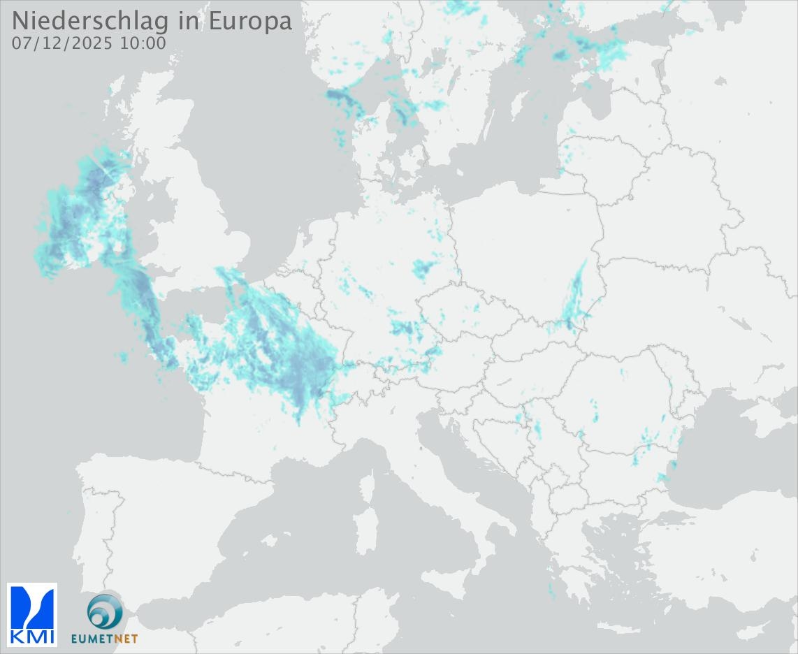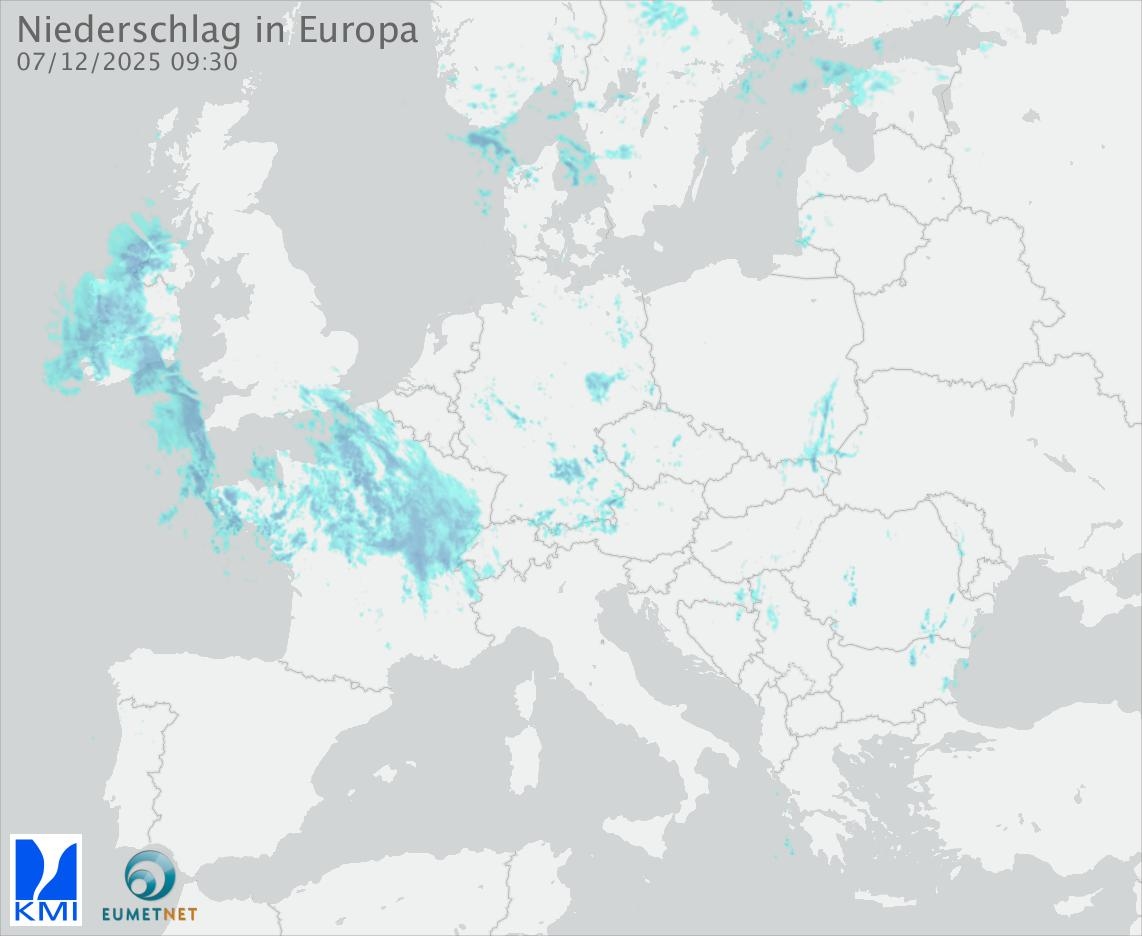 Diese Animation zeigt den gefallenen Niederschlag, gemessen durch die Regenradargeräte der europäischen Teilnehmer des Eumetnet-Programms OPERA (in 15-Minuten-Intervallen).