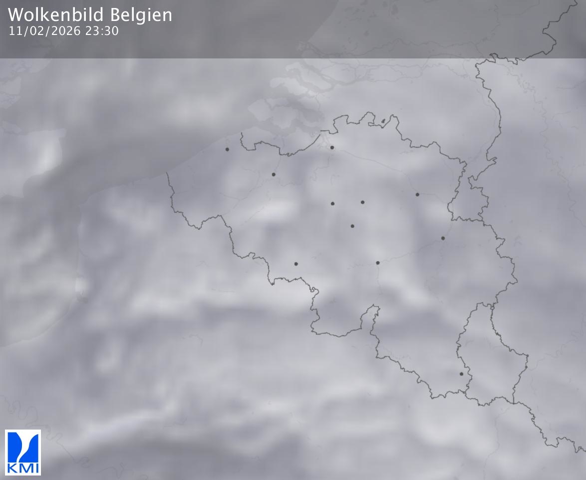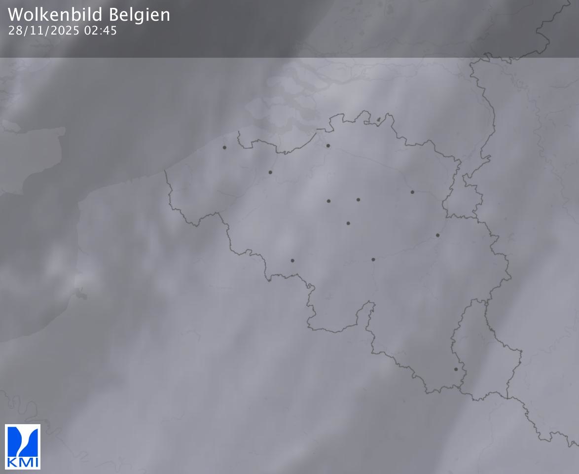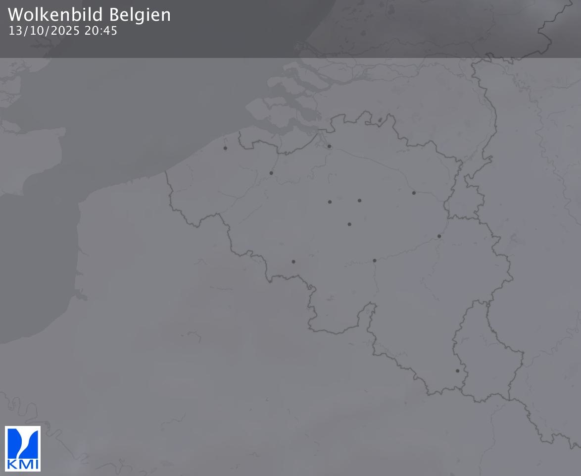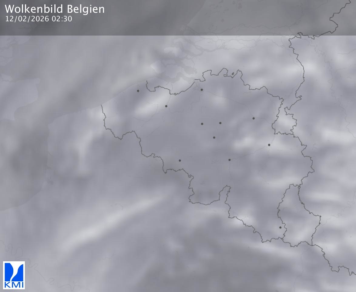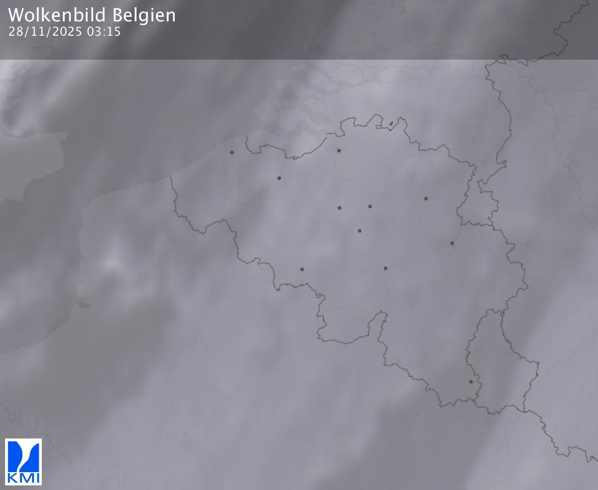 Das Wolkenbild Belgiens ist eine Kombination der sichtbaren und Infrarotkanäle des Satelliten.