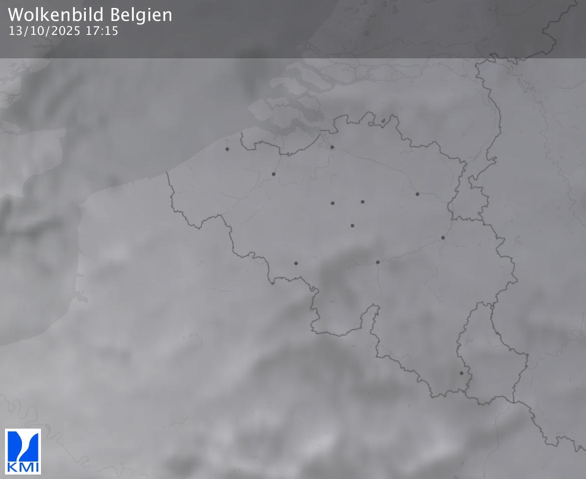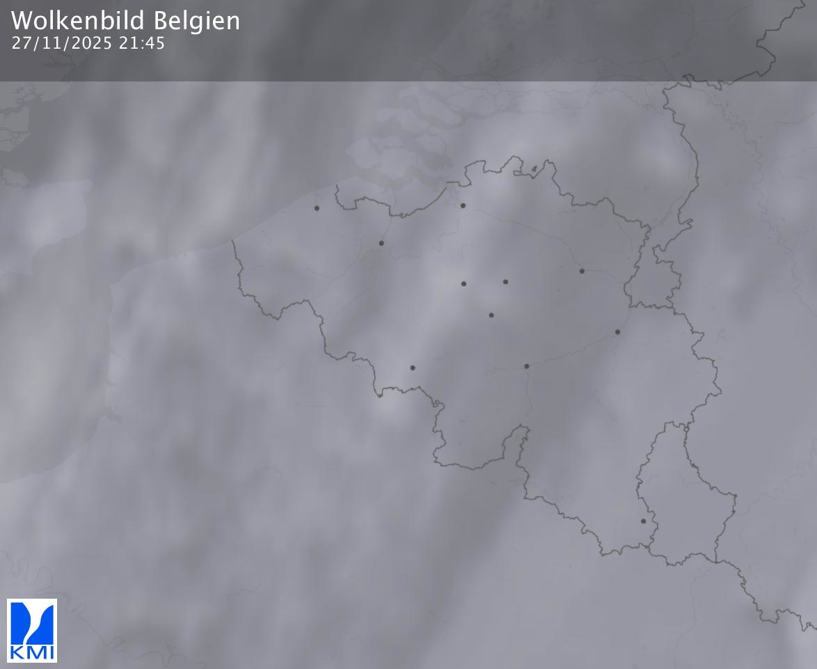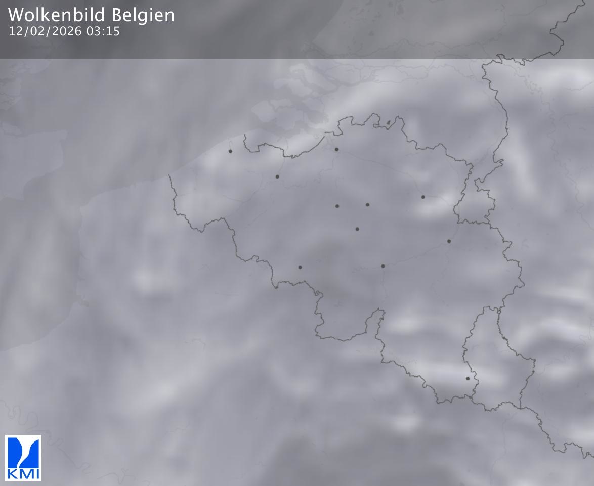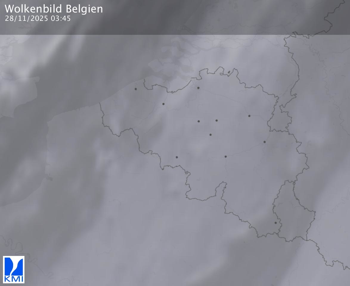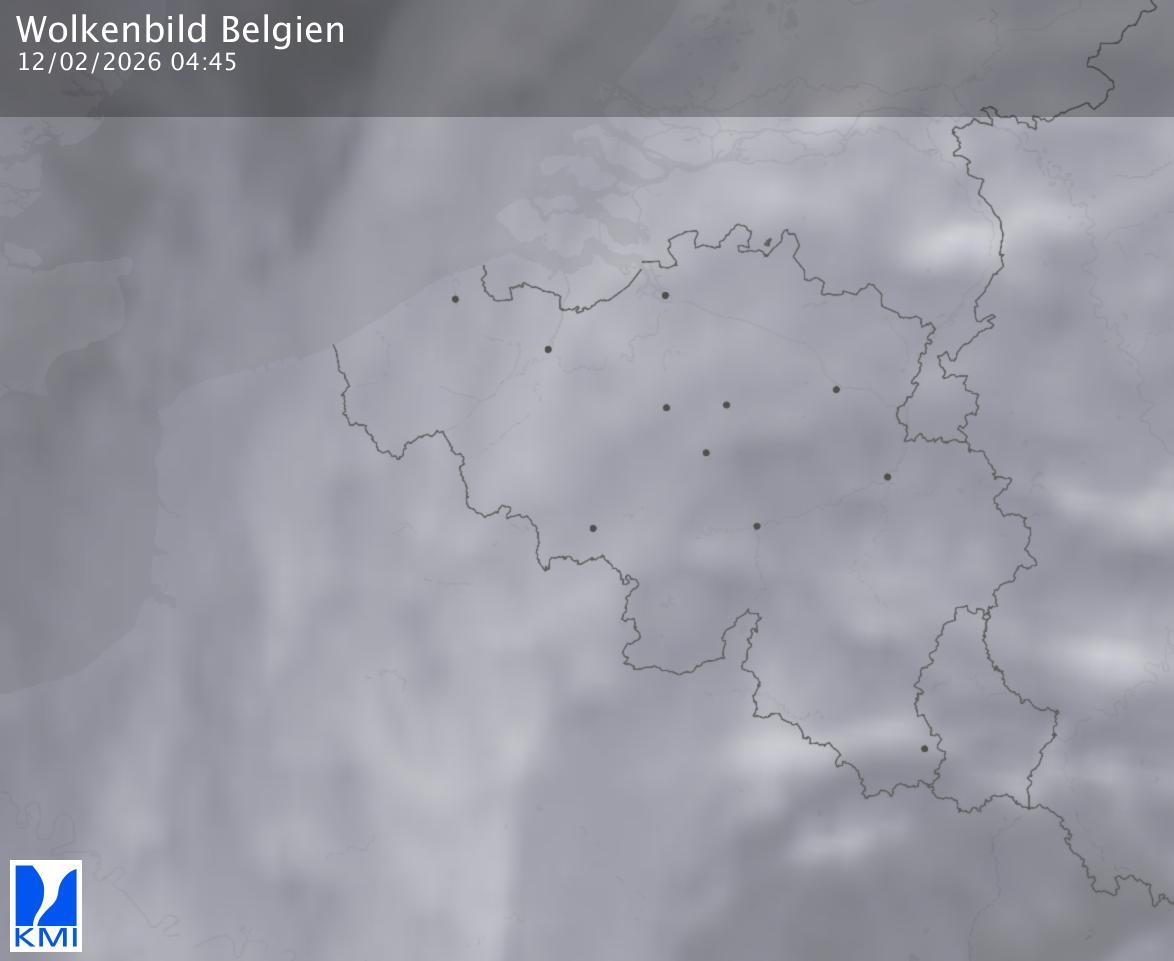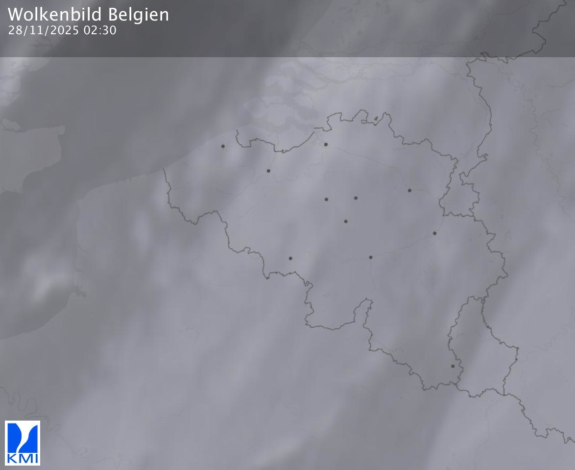 Das Wolkenbild Belgiens ist eine Kombination der sichtbaren und Infrarotkanäle des Satelliten.