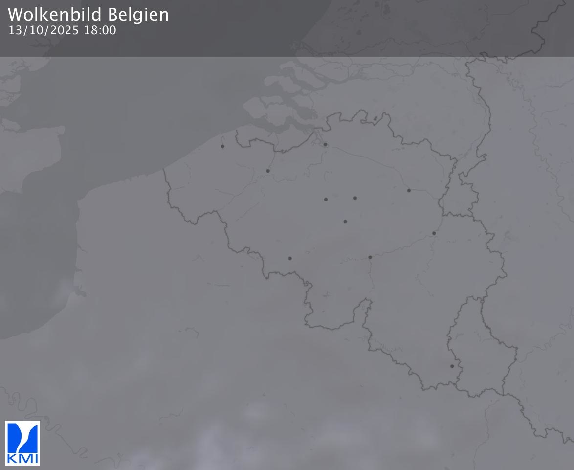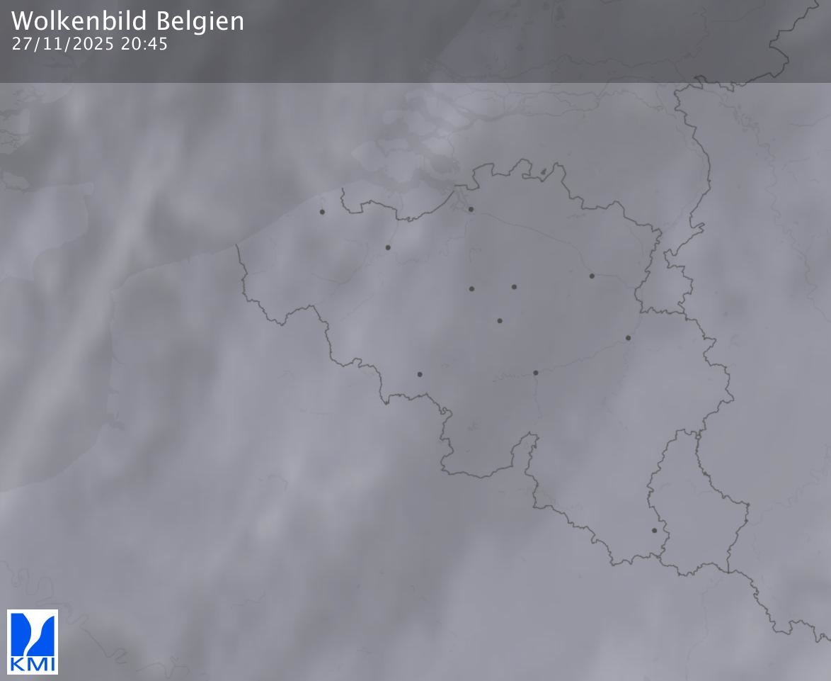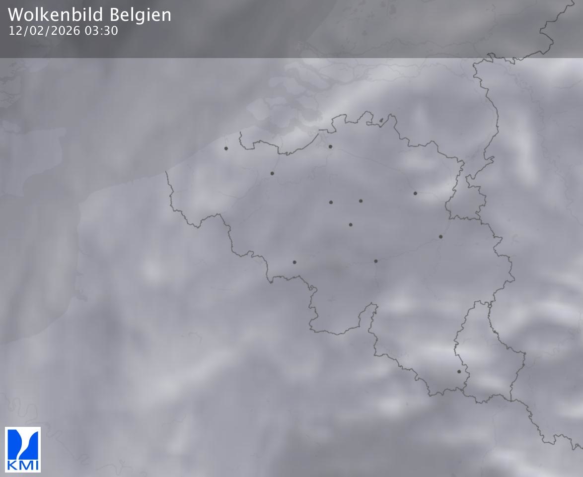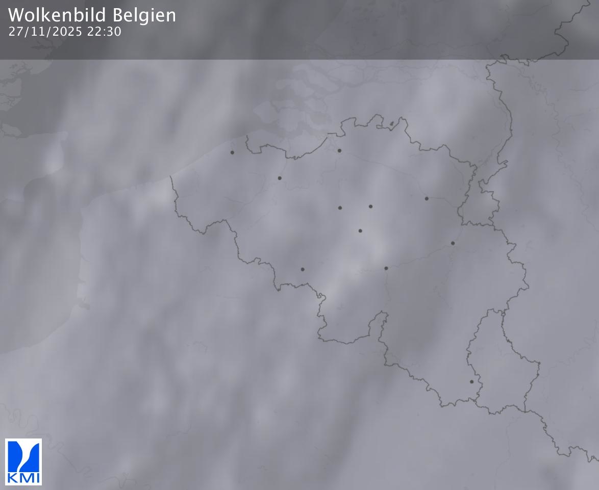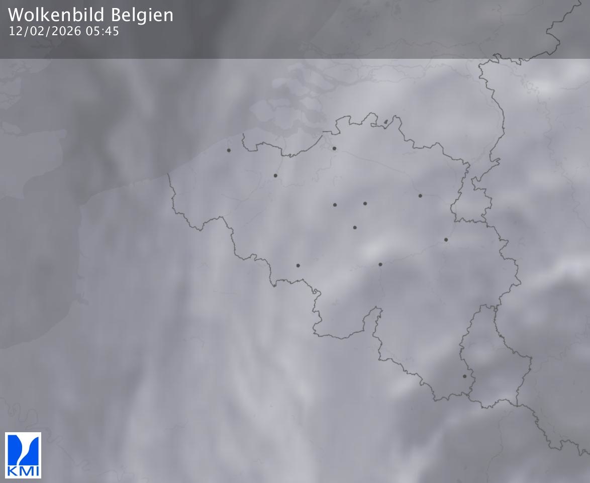 Das Wolkenbild Belgiens ist eine Kombination der sichtbaren und Infrarotkanäle des Satelliten.