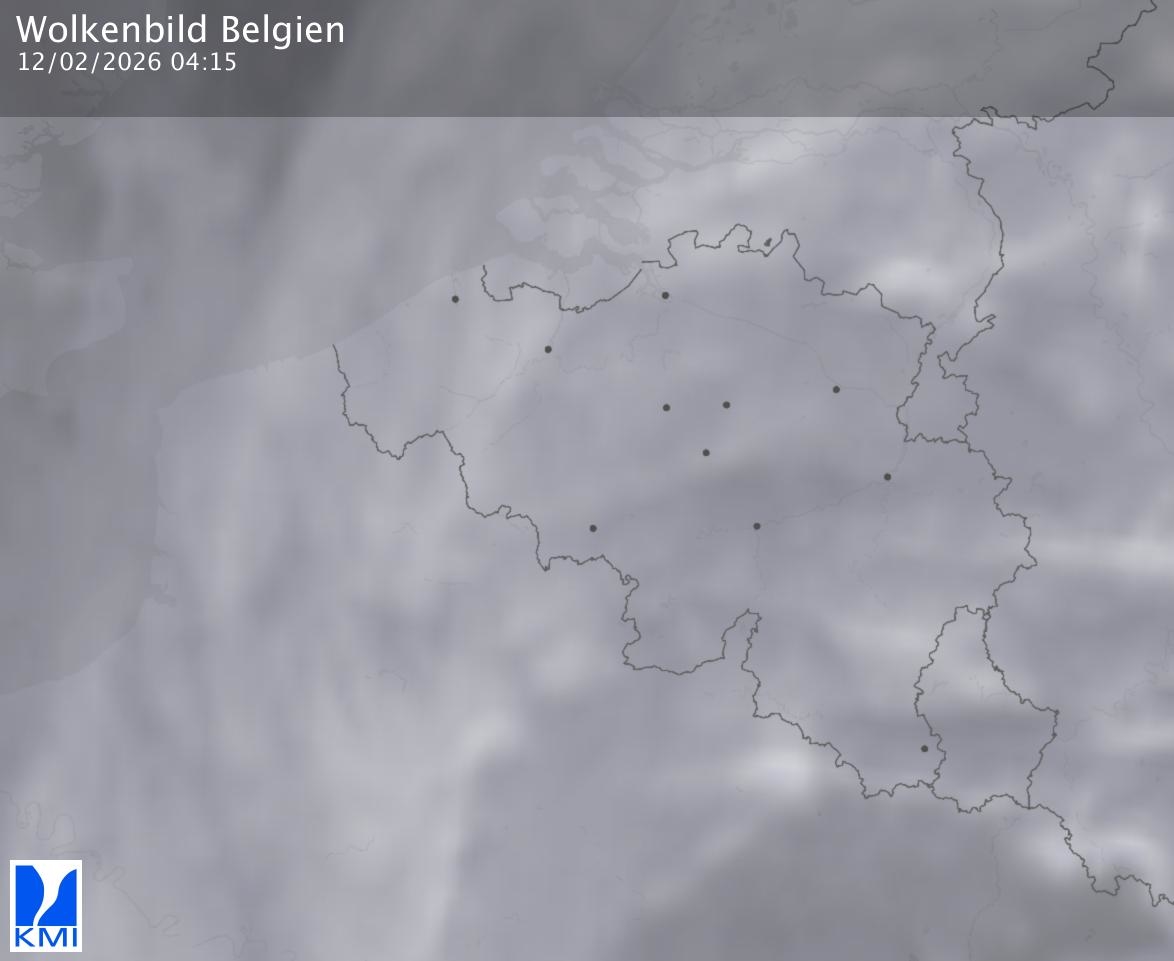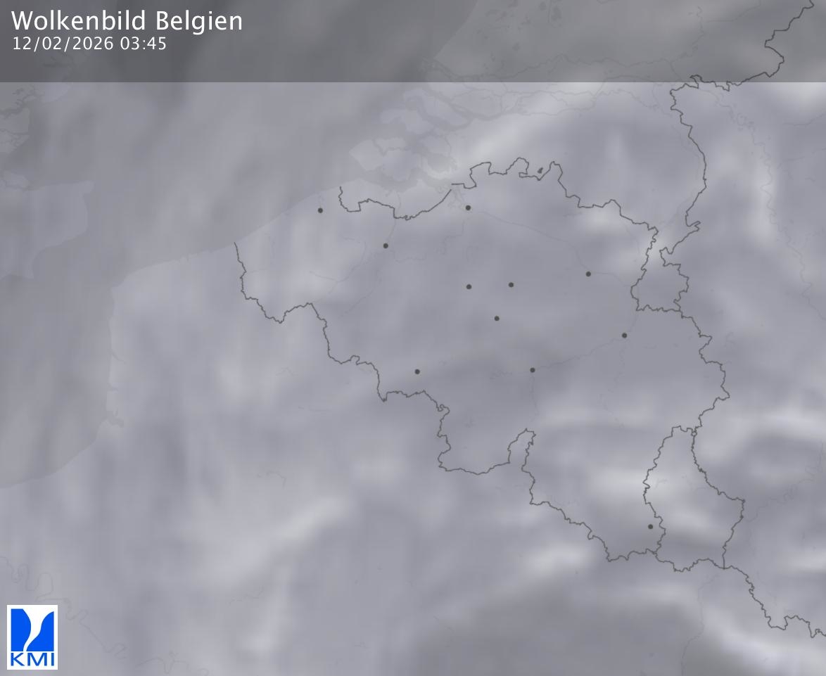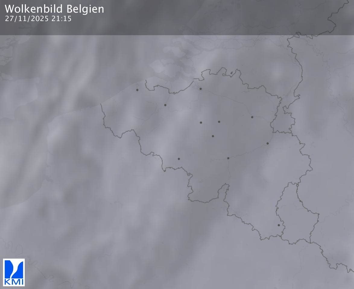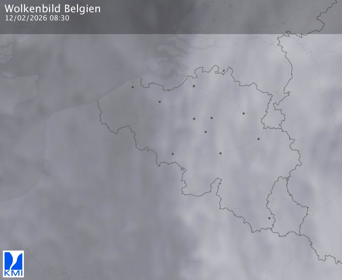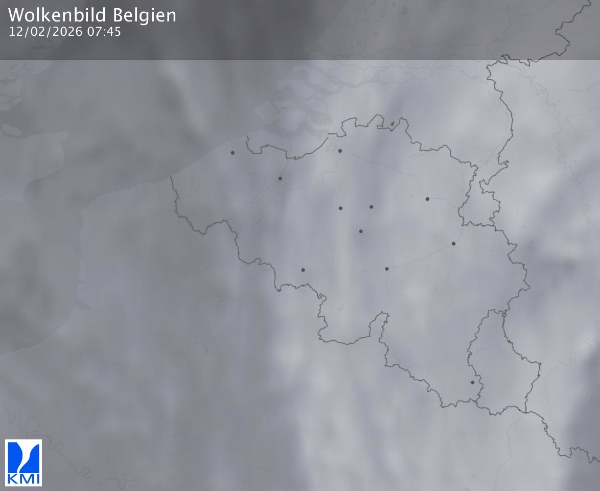 Das Wolkenbild Belgiens ist eine Kombination der sichtbaren und Infrarotkanäle des Satelliten.