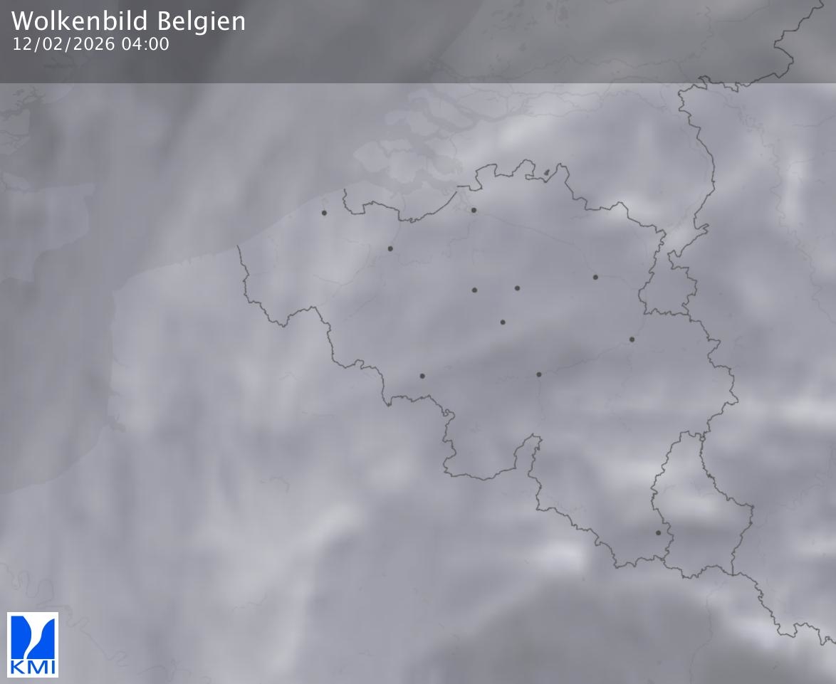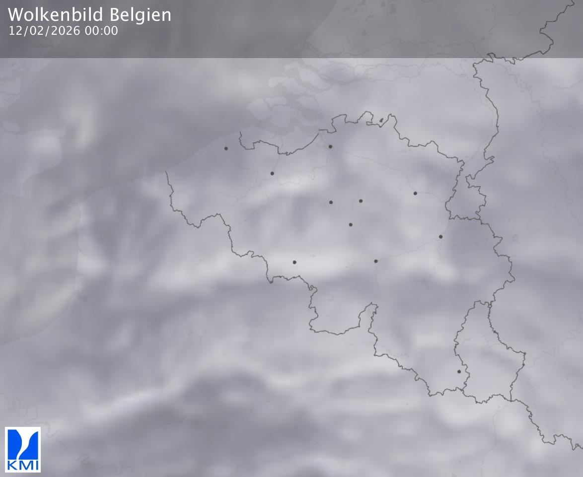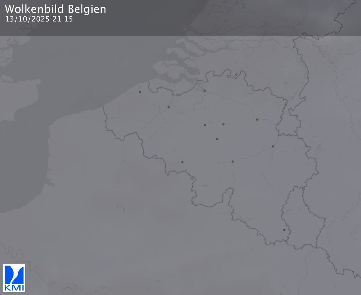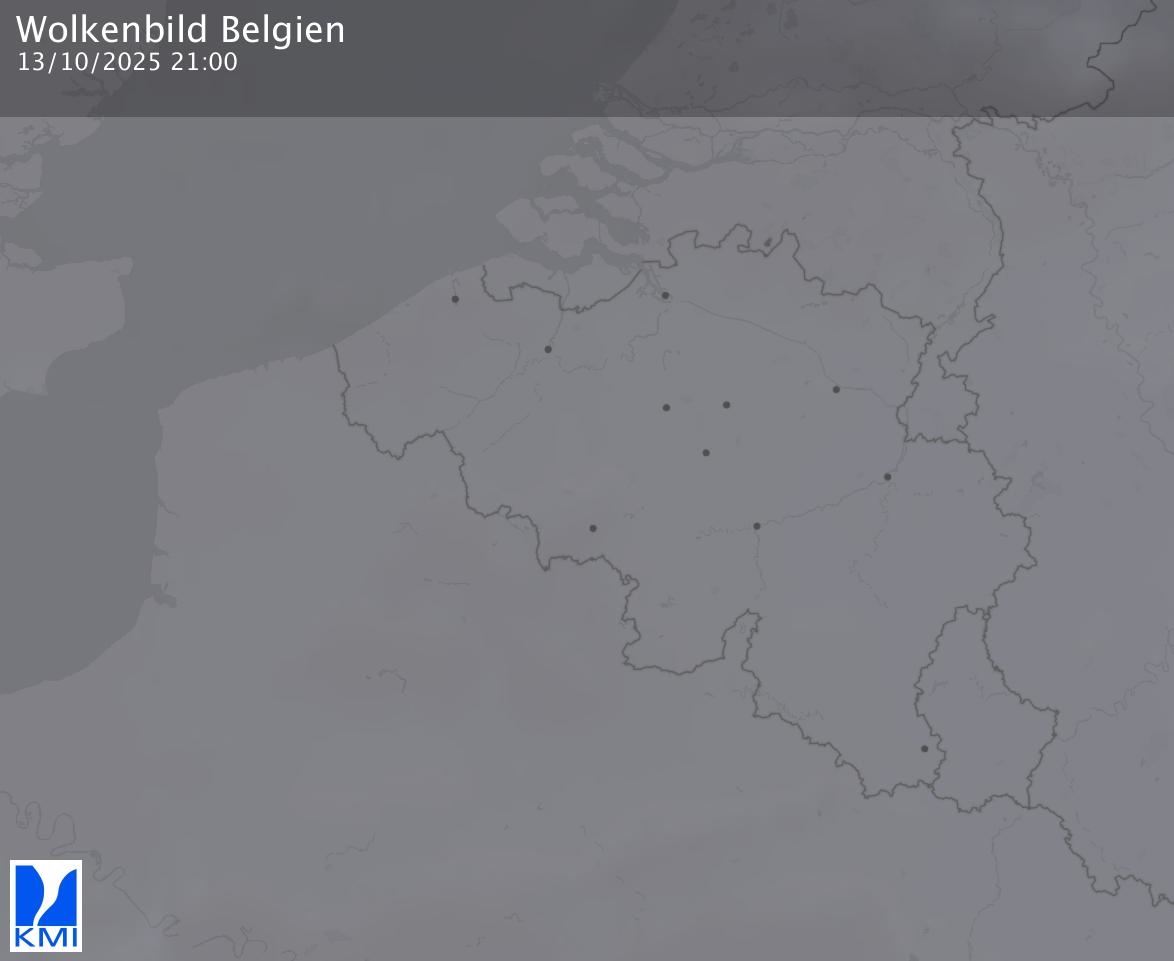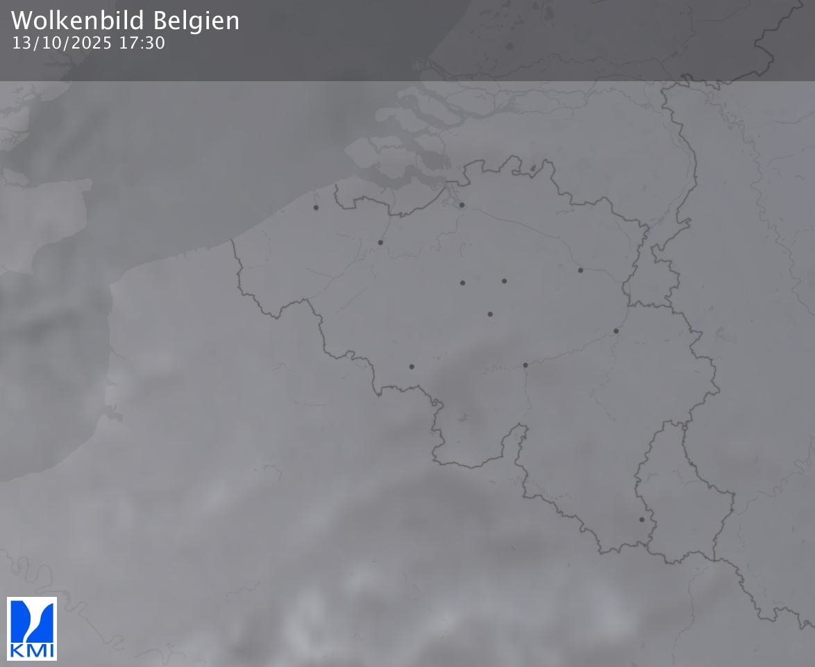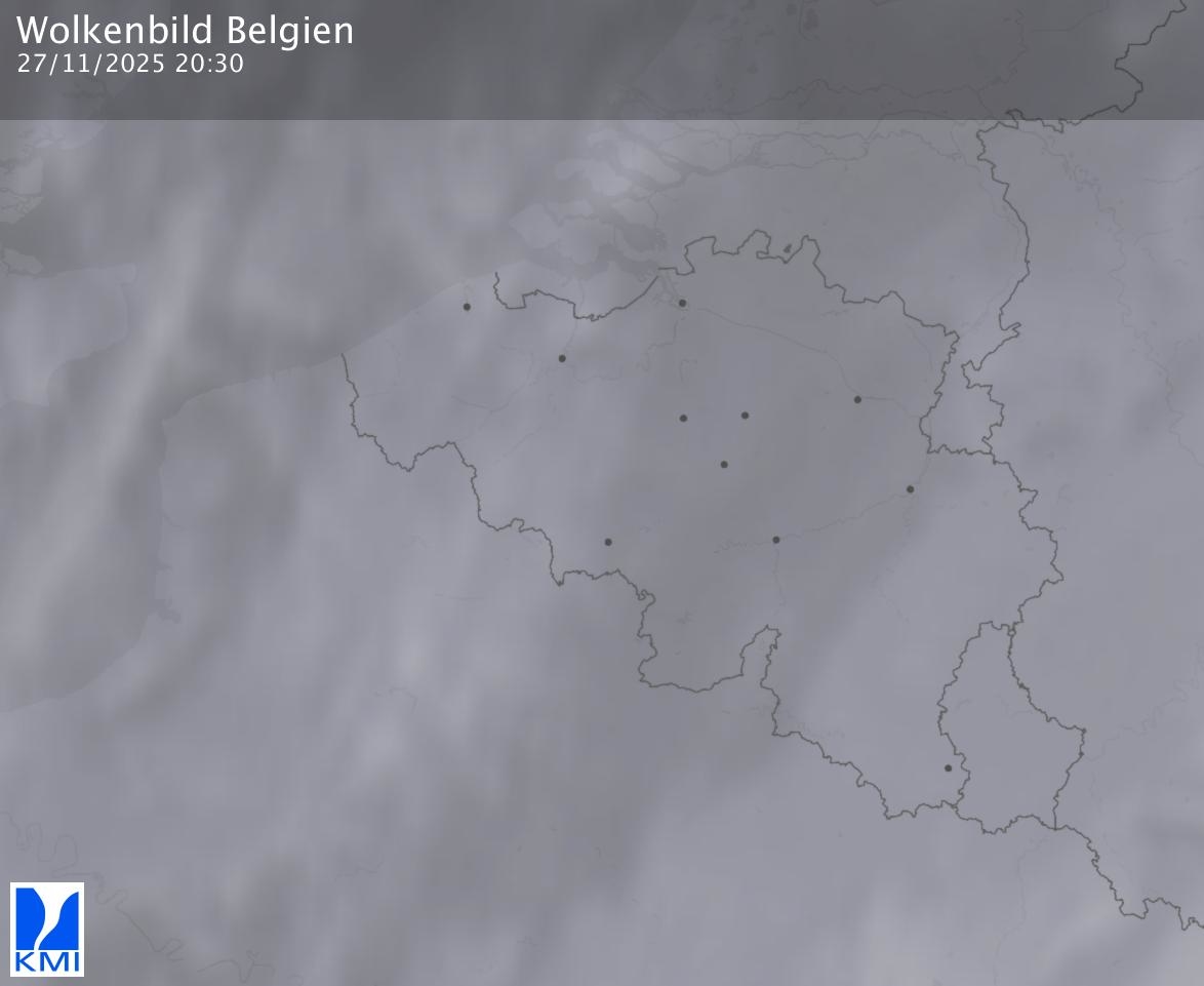 Das Wolkenbild Belgiens ist eine Kombination der sichtbaren und Infrarotkanäle des Satelliten.