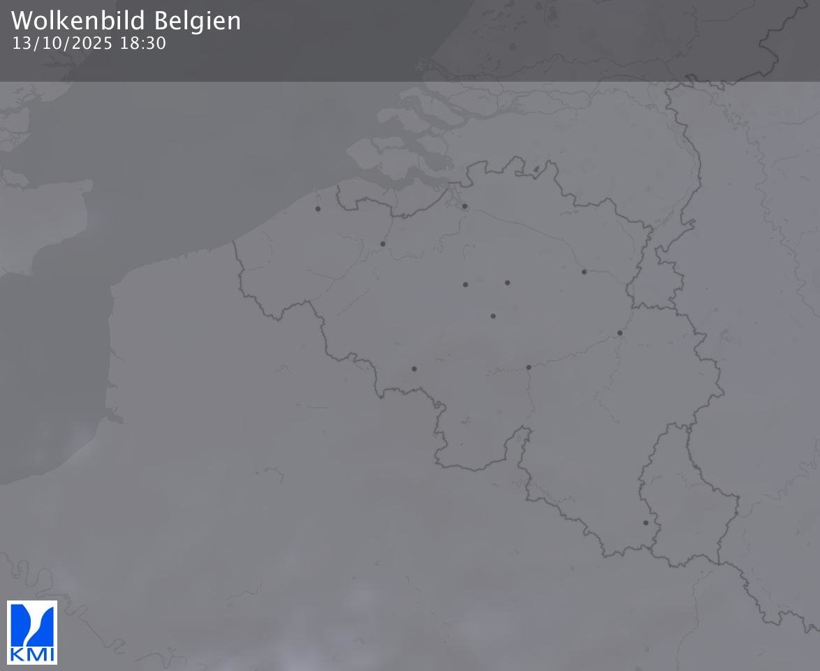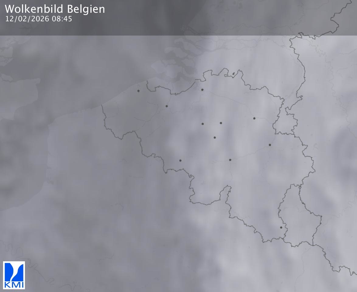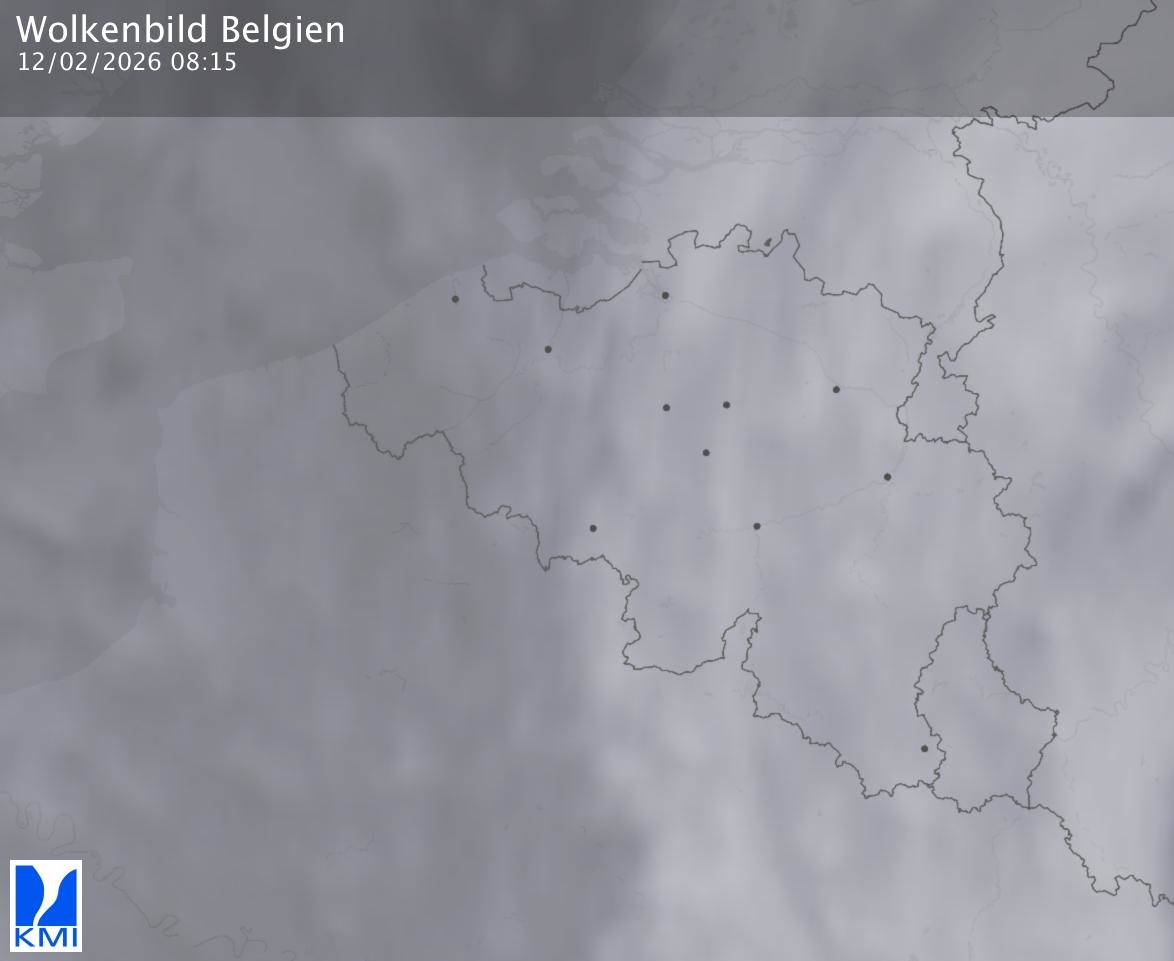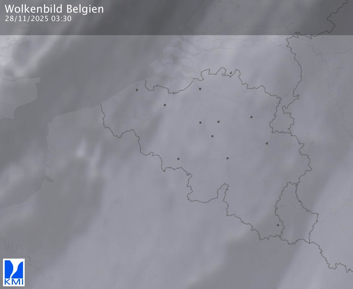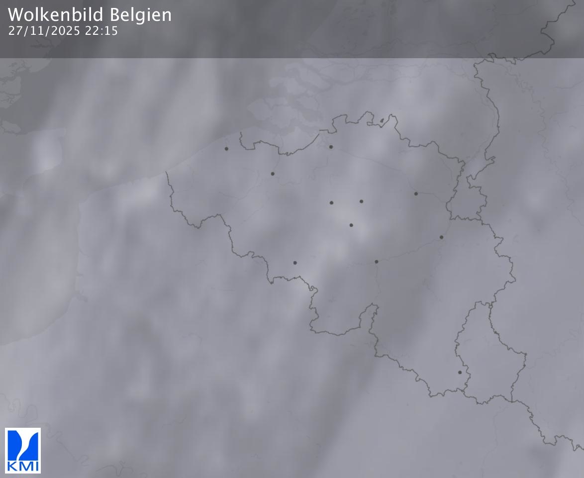 Das Wolkenbild Belgiens ist eine Kombination der sichtbaren und Infrarotkanäle des Satelliten.