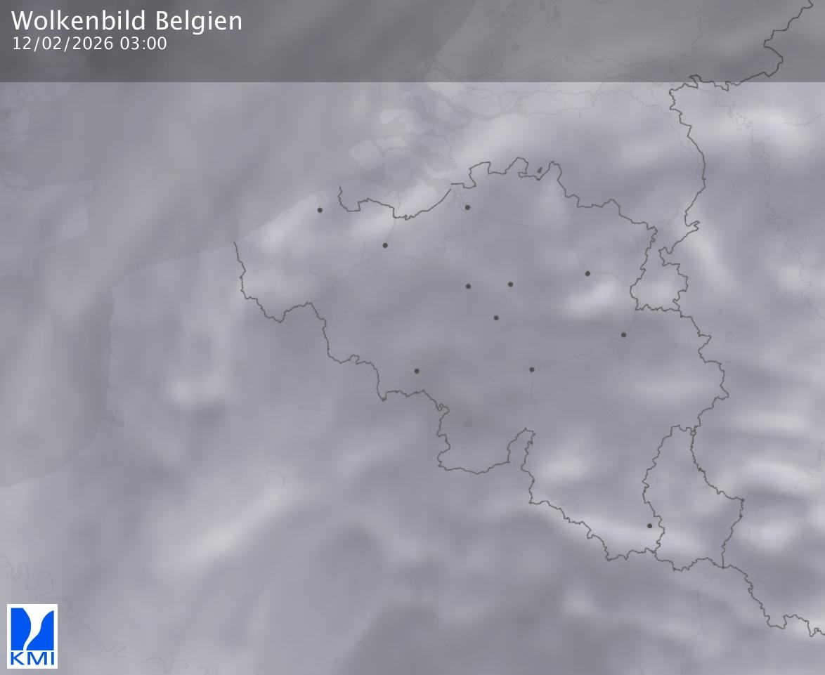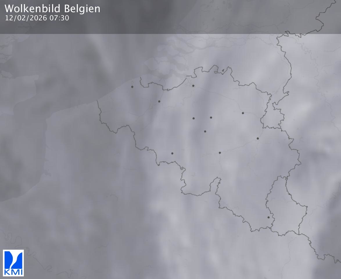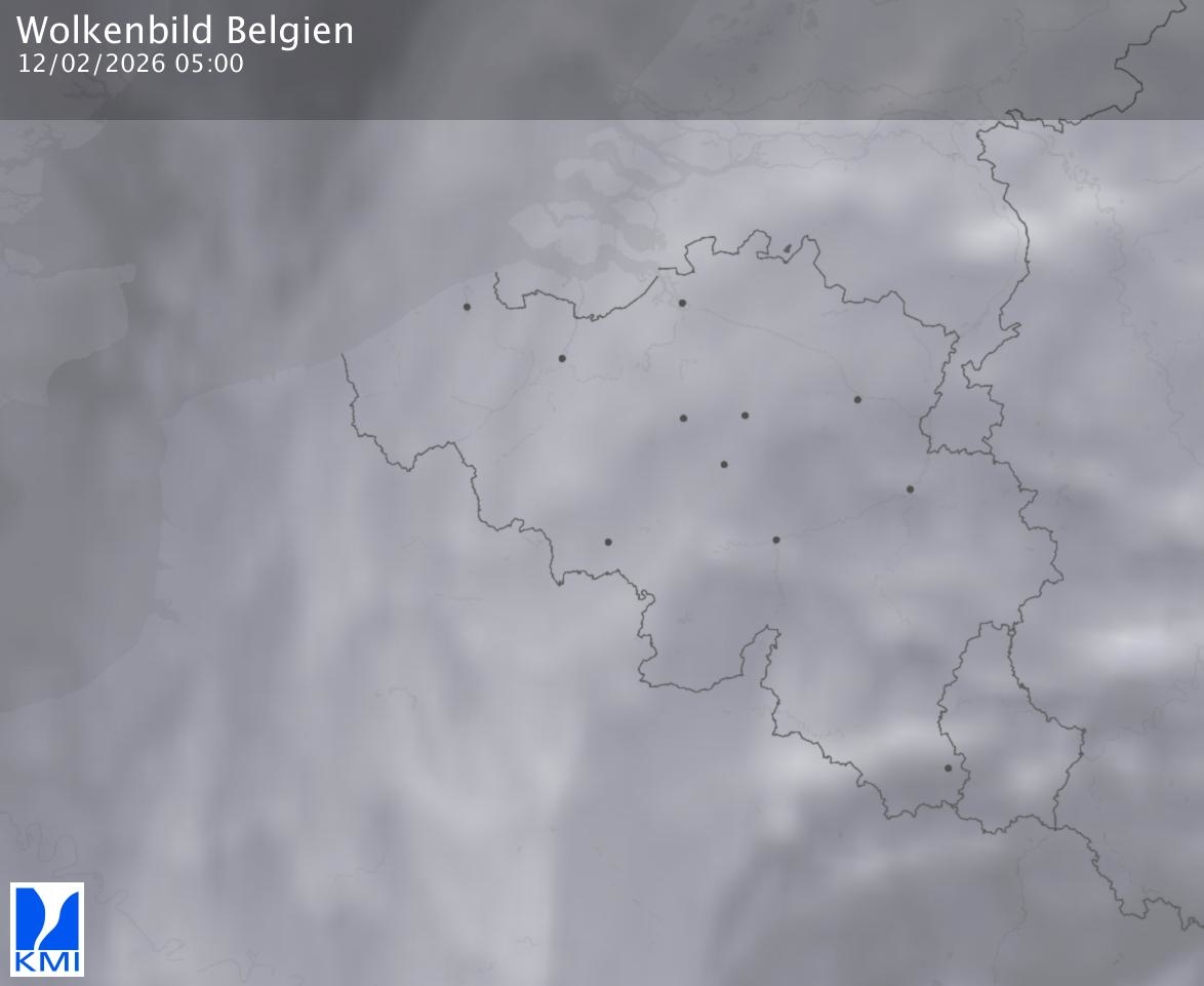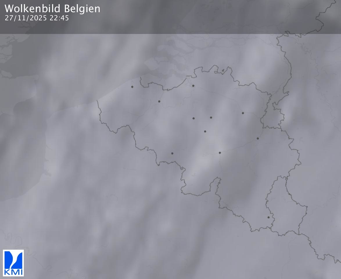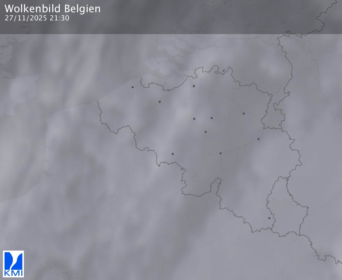 Das Wolkenbild Belgiens ist eine Kombination der sichtbaren und Infrarotkanäle des Satelliten.