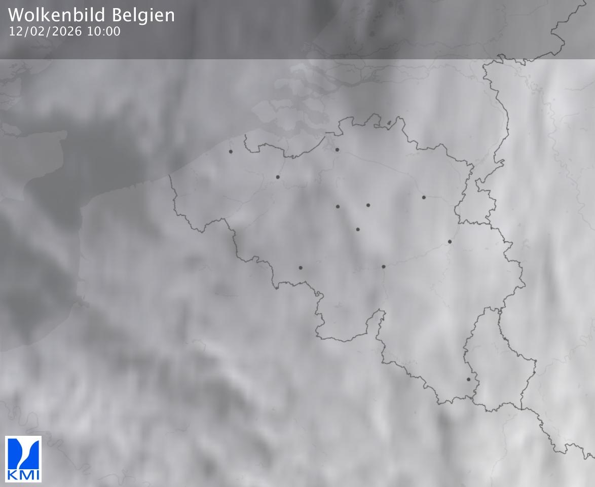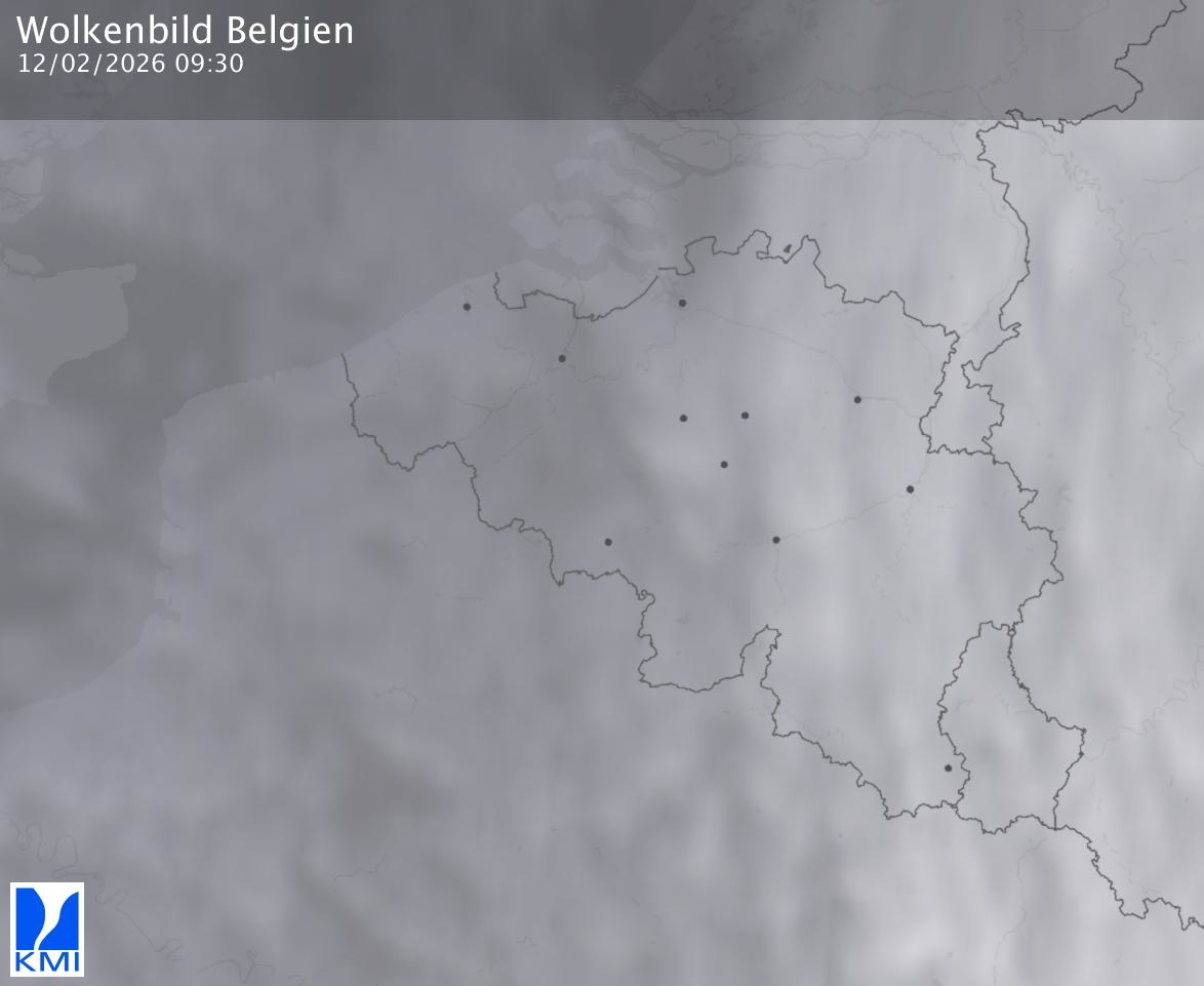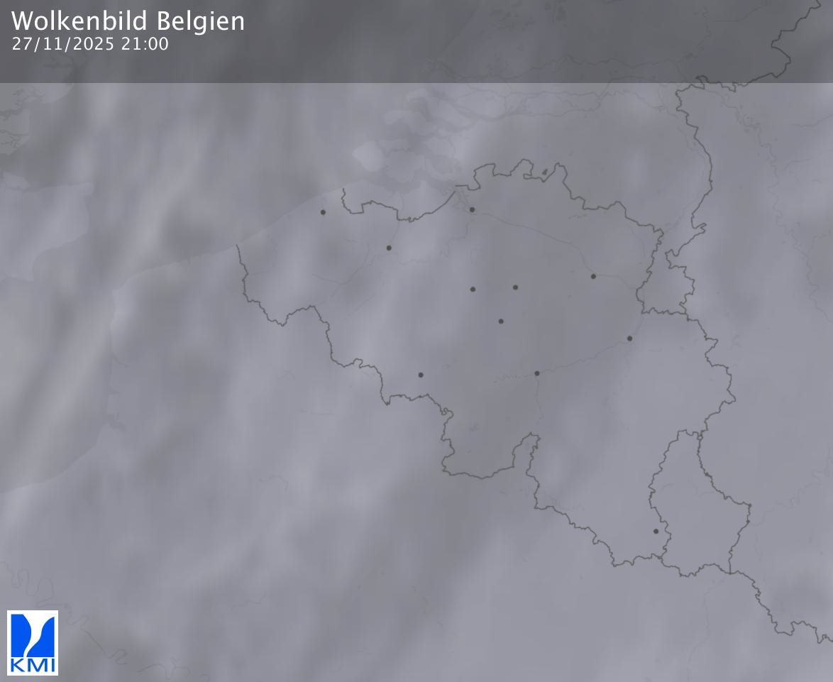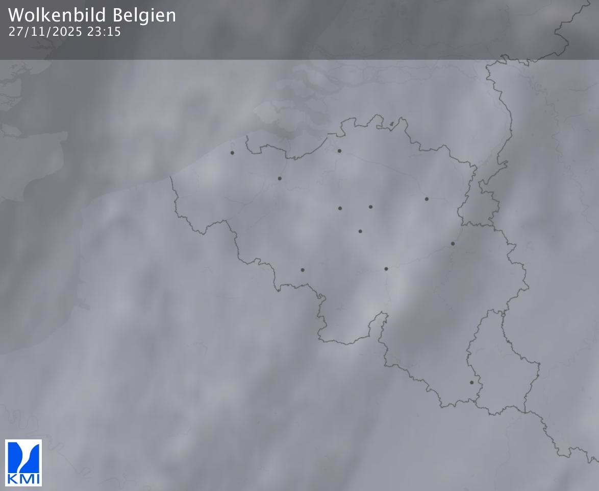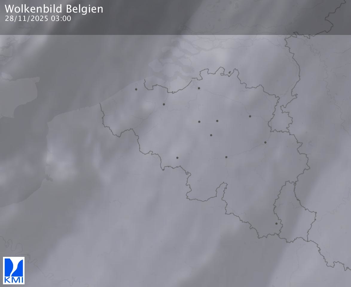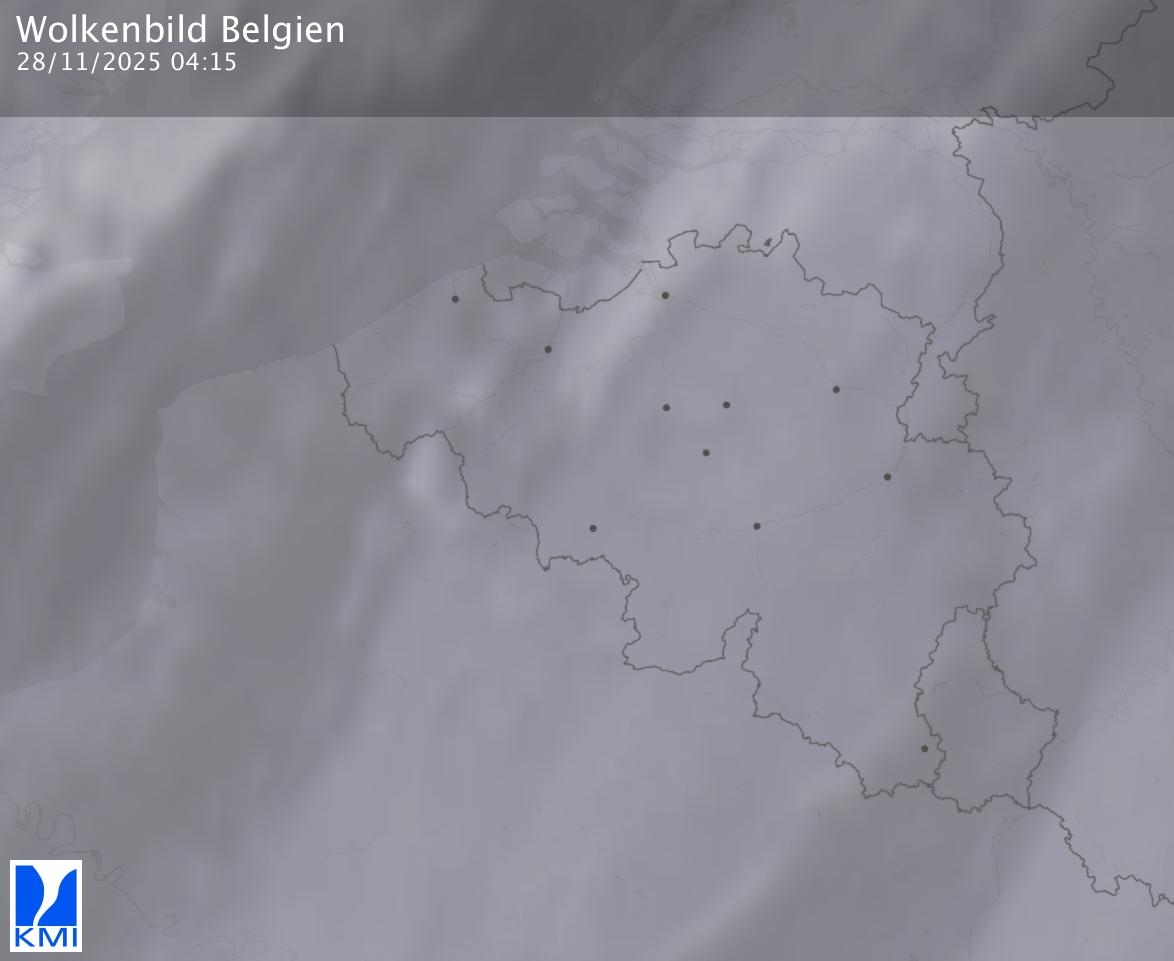 Das Wolkenbild Belgiens ist eine Kombination der sichtbaren und Infrarotkanäle des Satelliten.