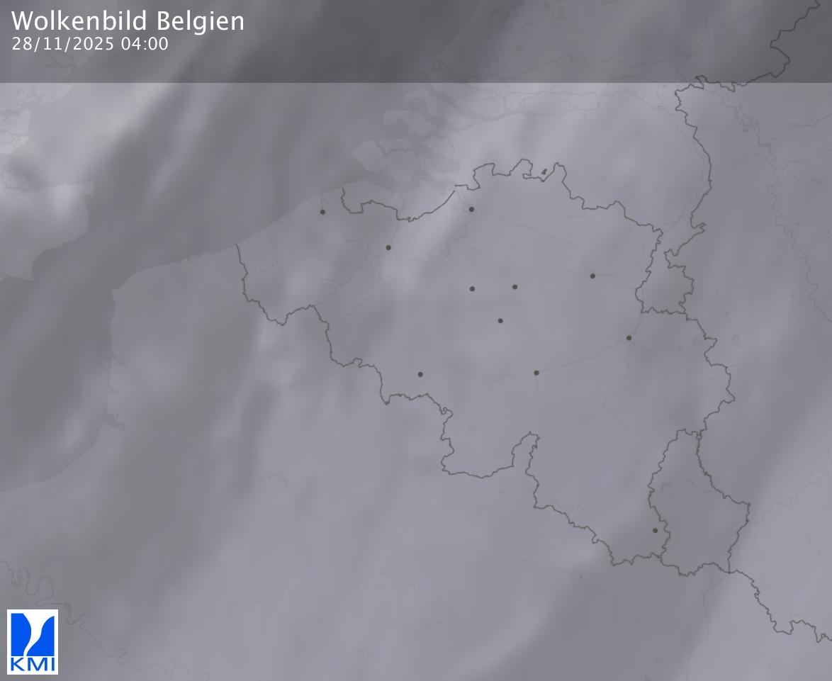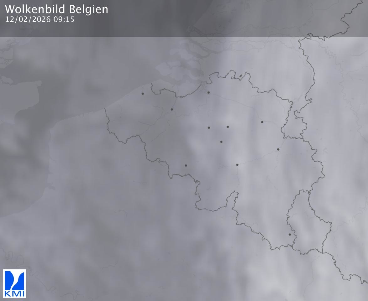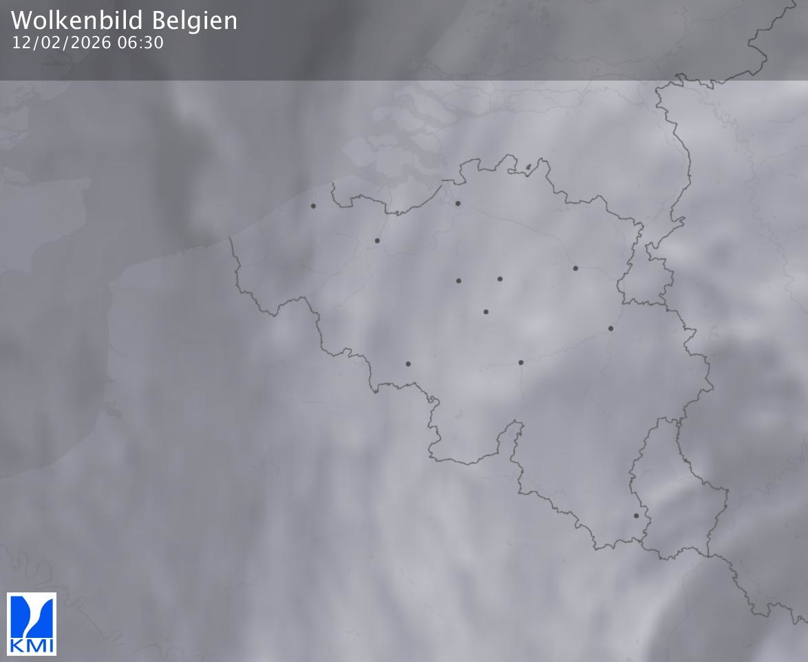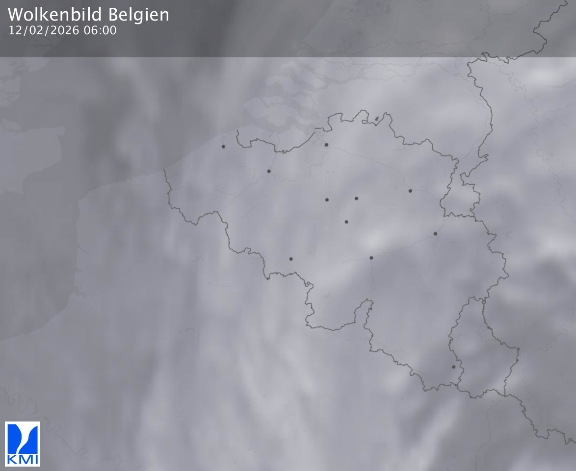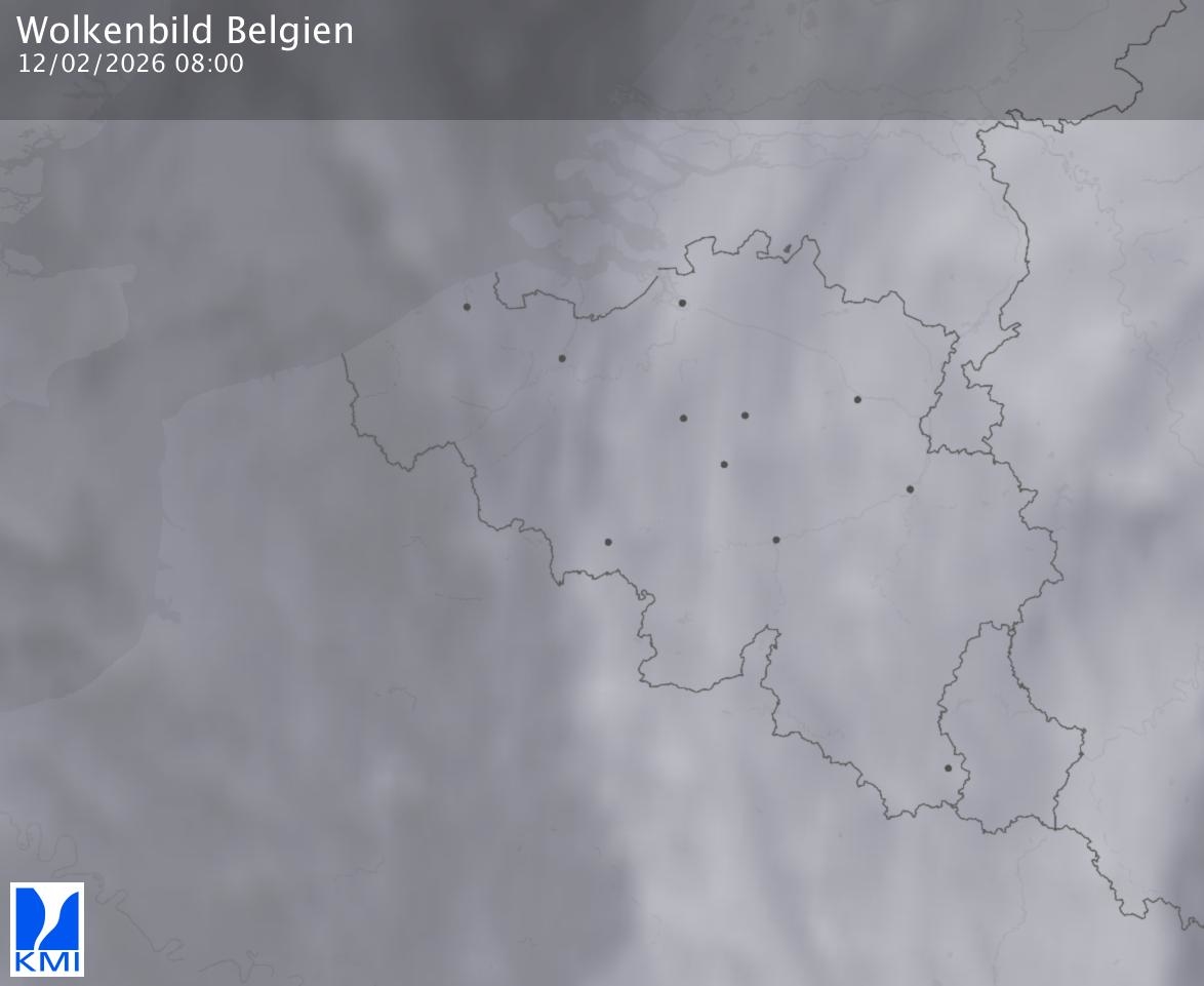 Das Wolkenbild Belgiens ist eine Kombination der sichtbaren und Infrarotkanäle des Satelliten.