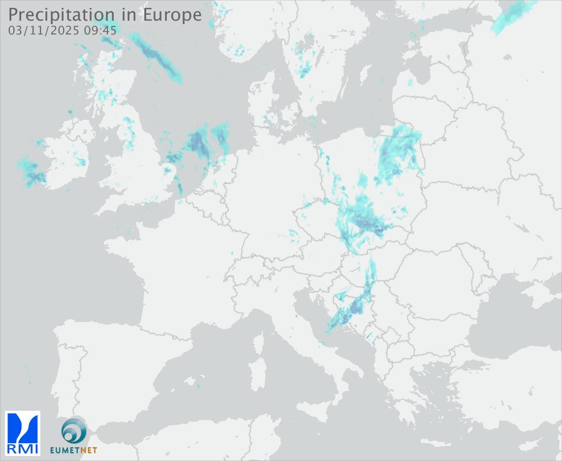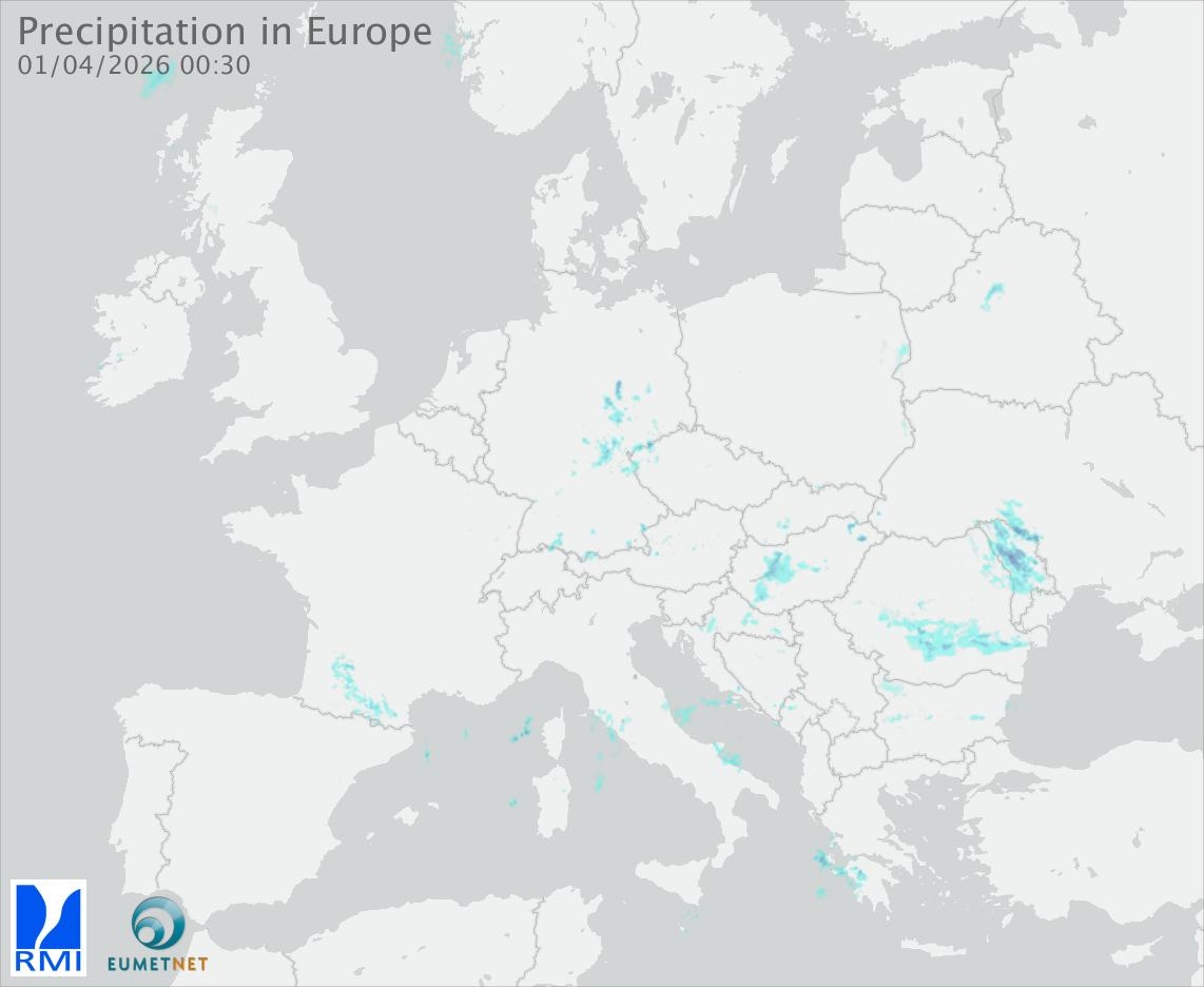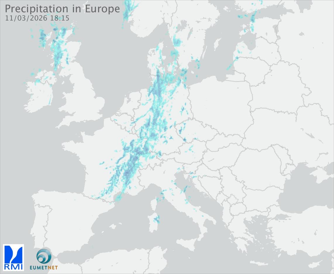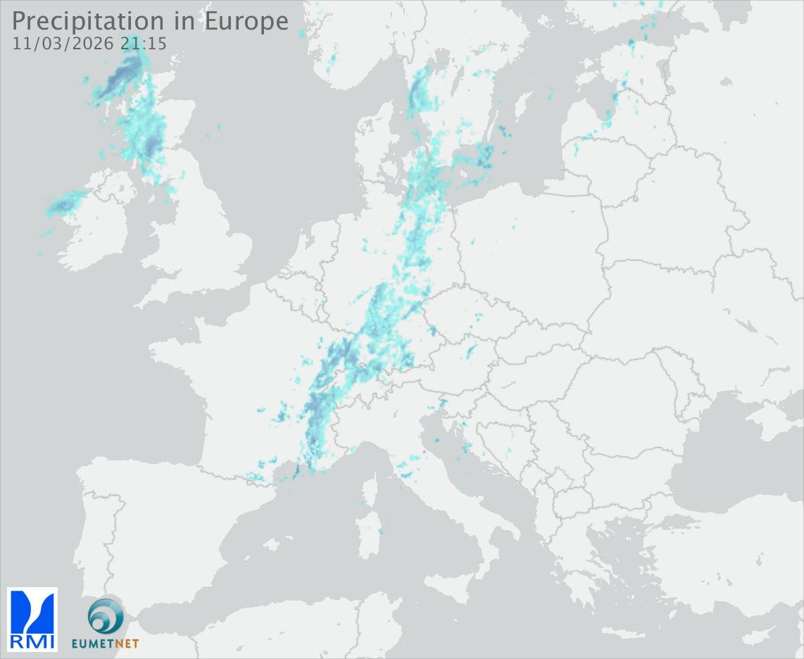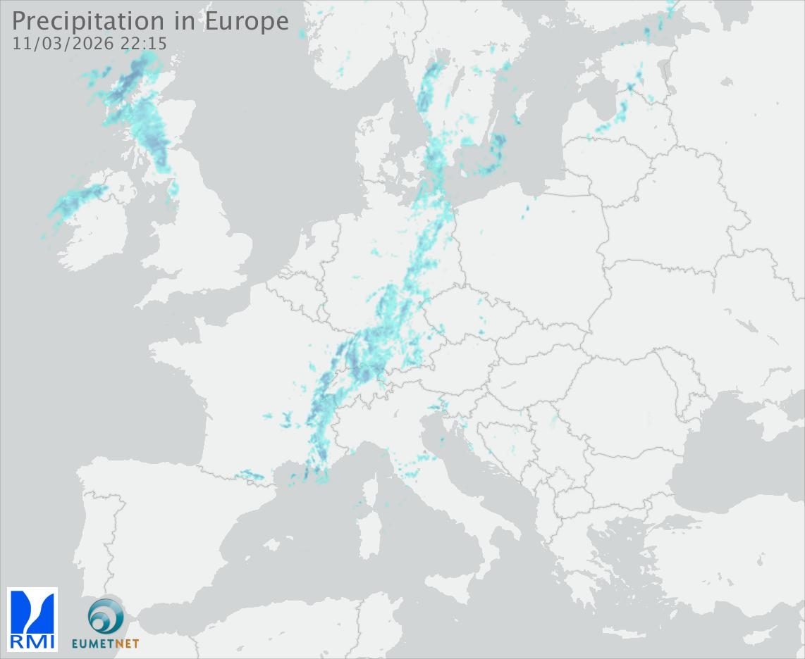 This animation shows the fallen precipitation observed by the radars of the European members of the OPERA program of Eumetnet.