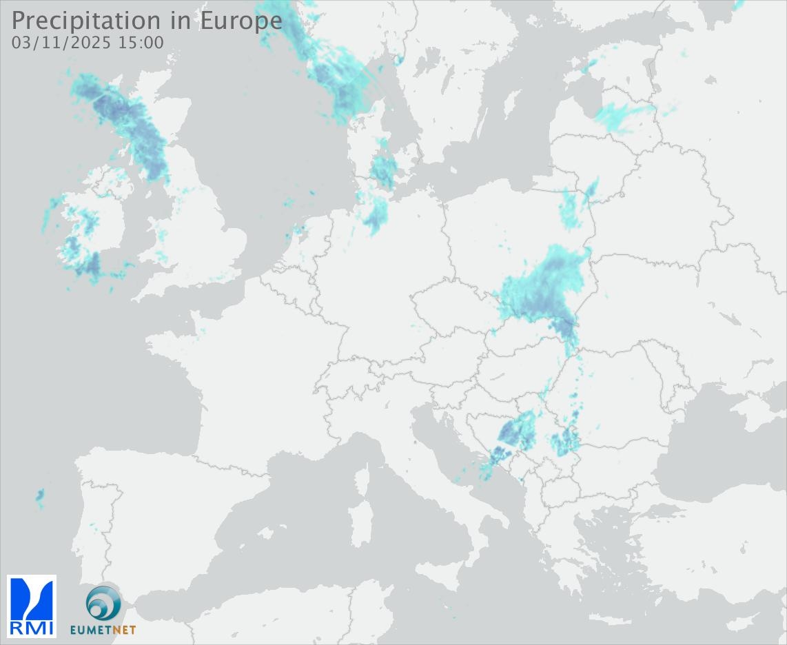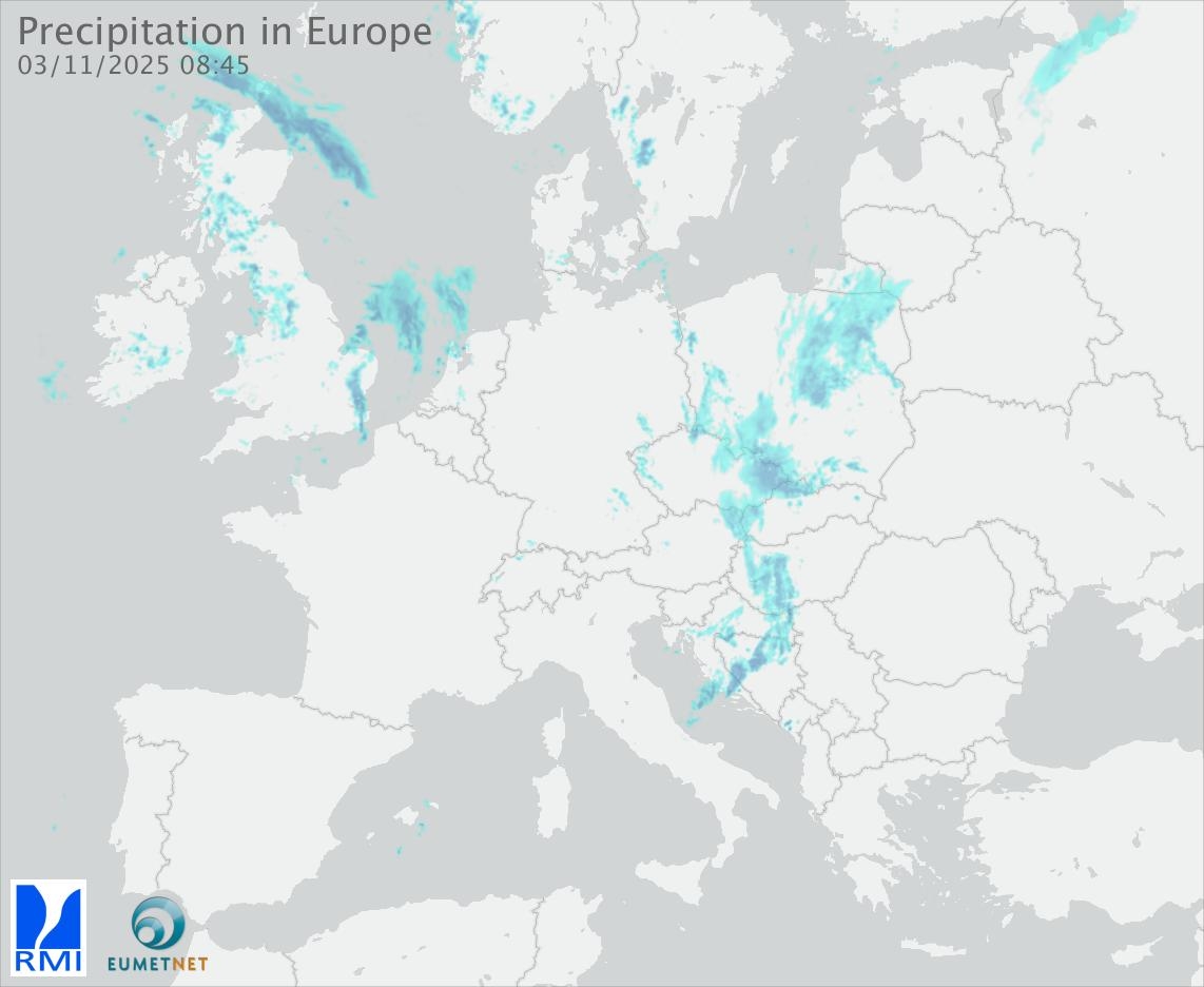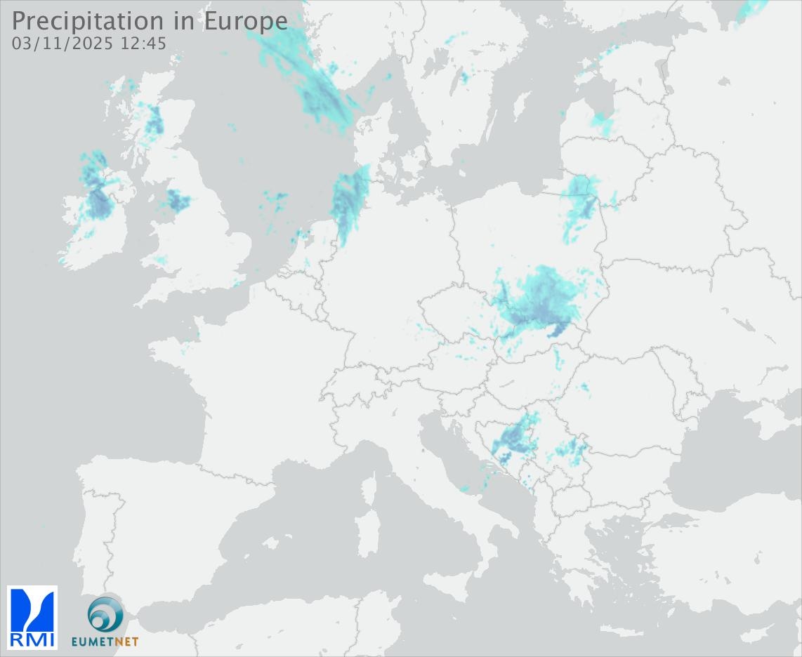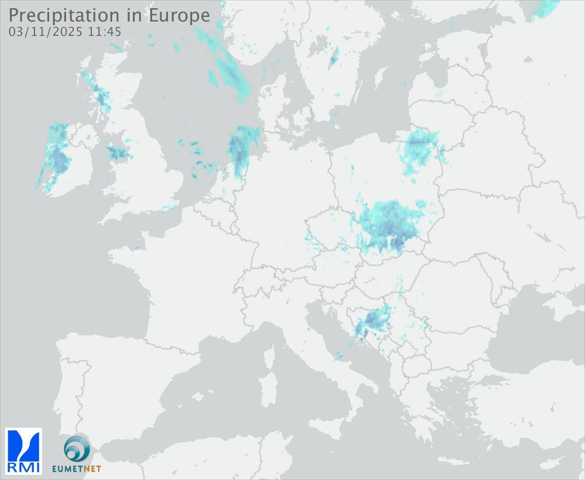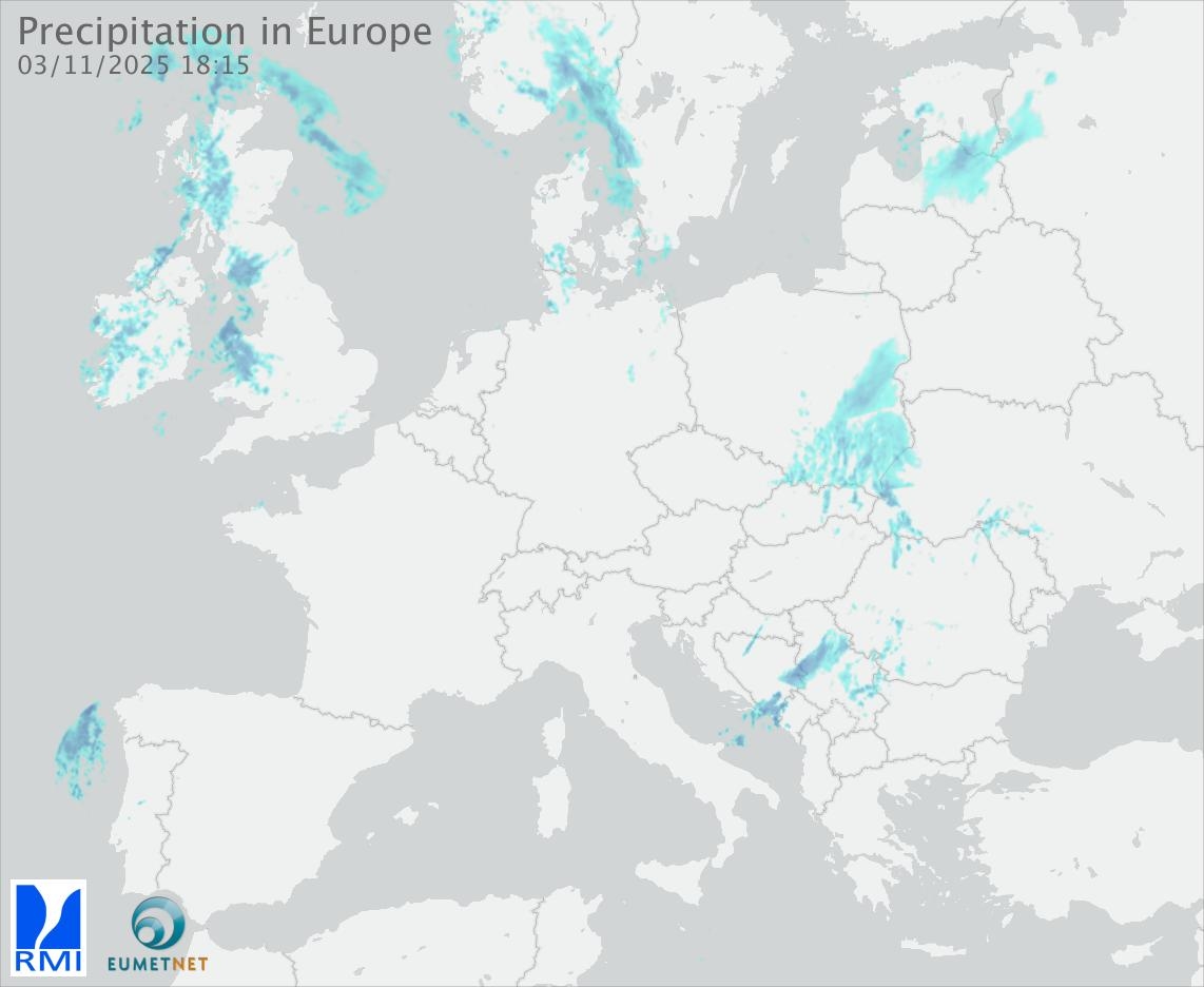 This animation shows the fallen precipitation observed by the radars of the European members of the OPERA program of Eumetnet.