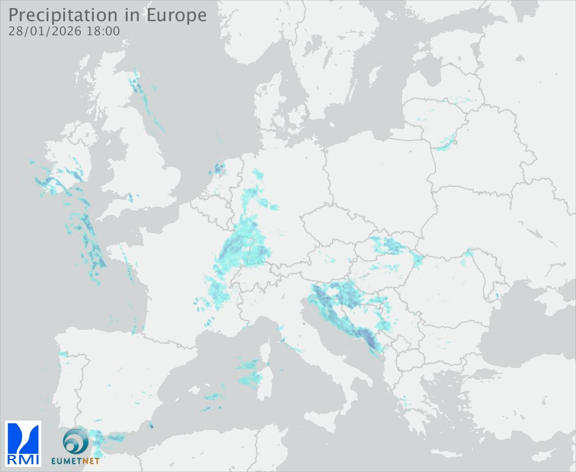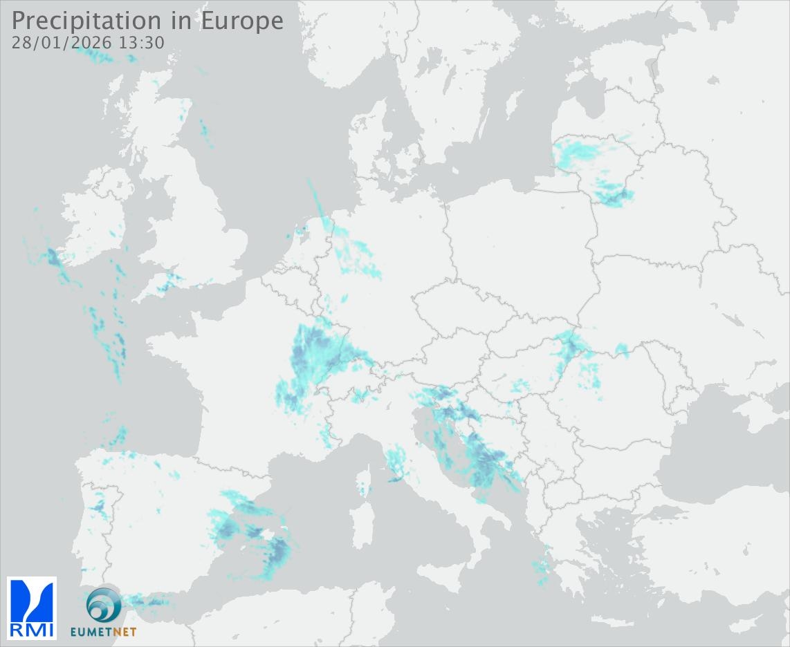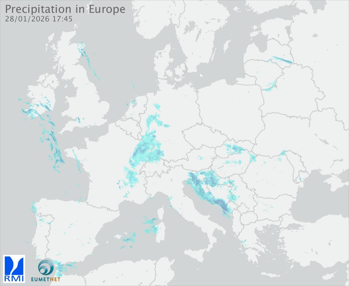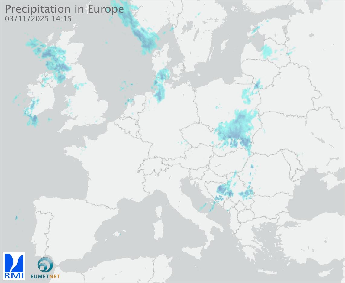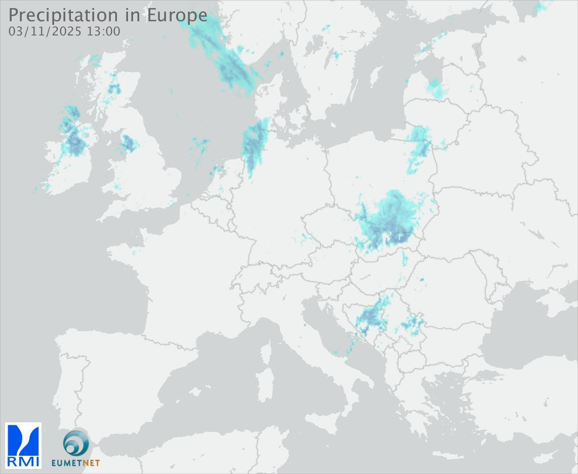 This animation shows the fallen precipitation observed by the radars of the European members of the OPERA program of Eumetnet.