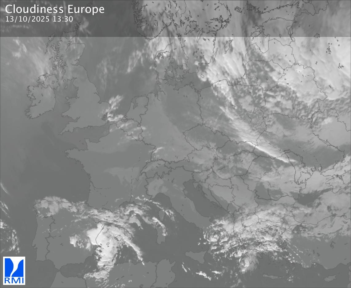 The infrared channels of Meteosat are sensitive to the temperature of the objects and allow to detect clouds day and night. The clouds are indeed colder than the cloud free surface. In the infrared imagery the clouds appear as bright as they are cold and are then located higher in the atmosphere.