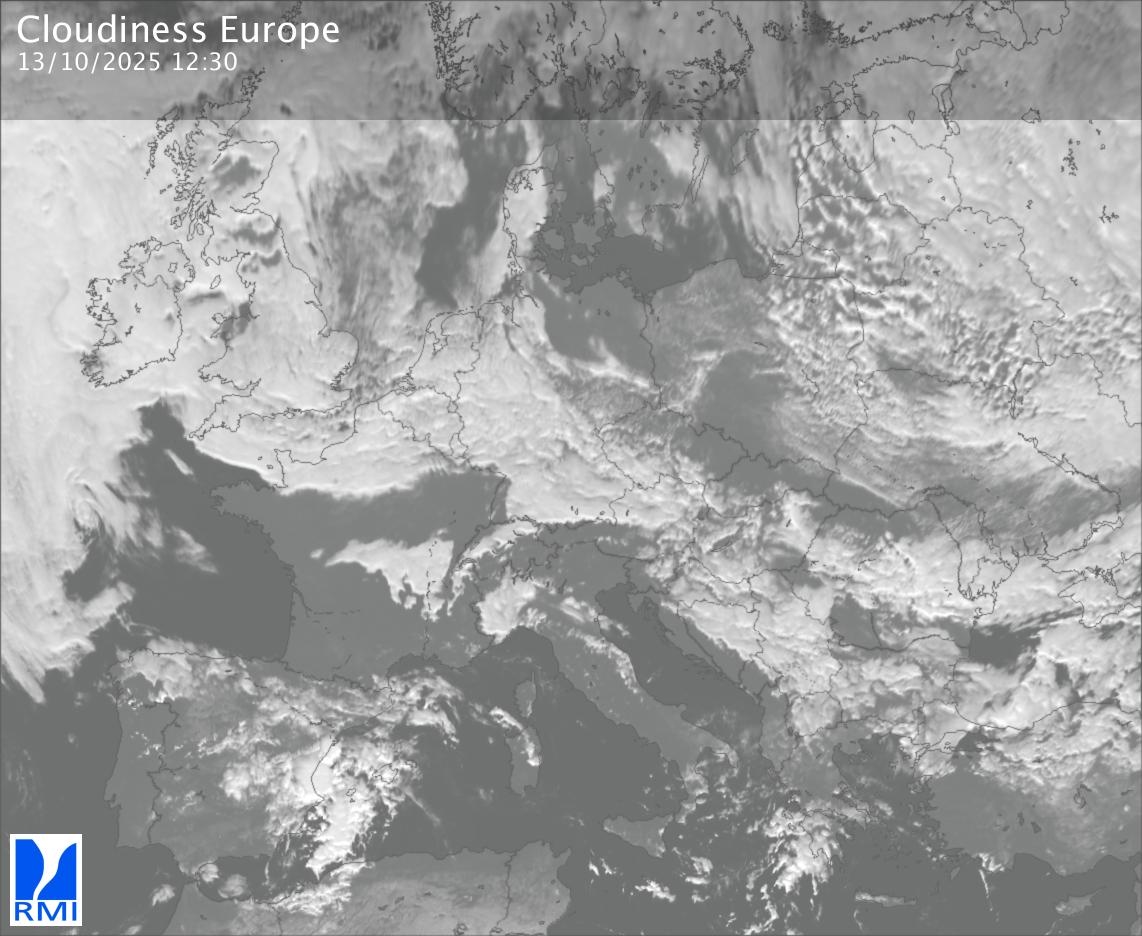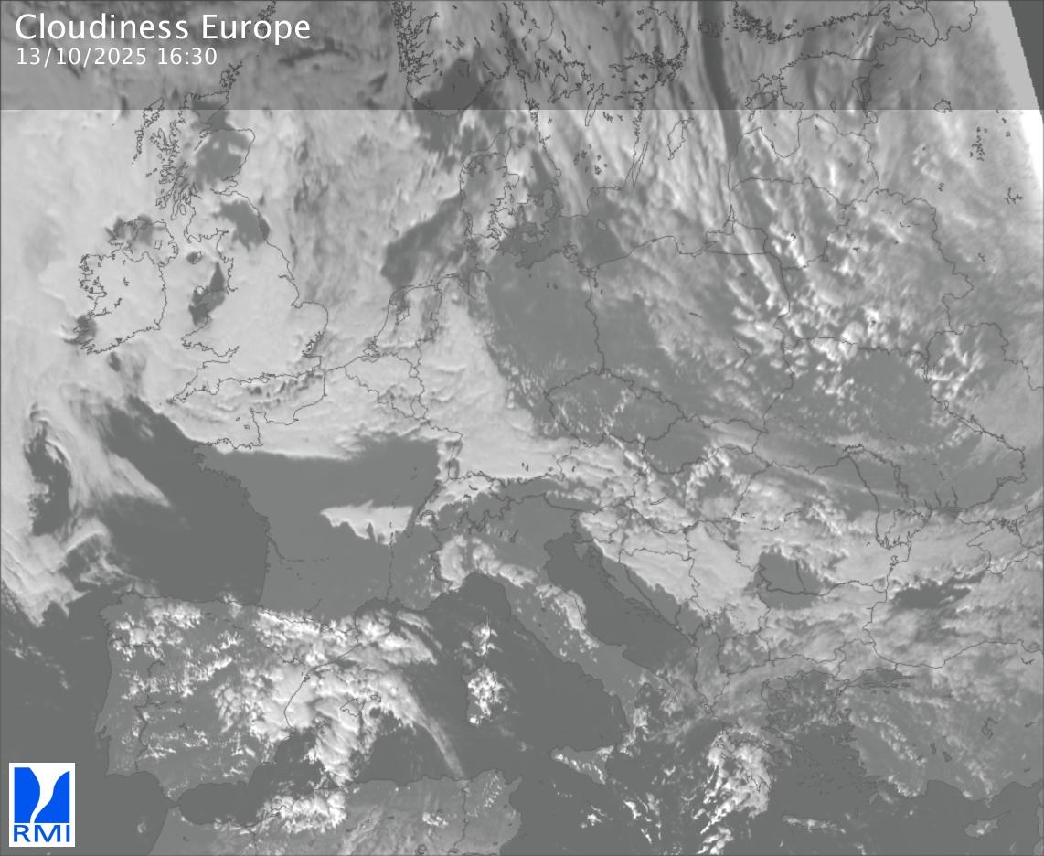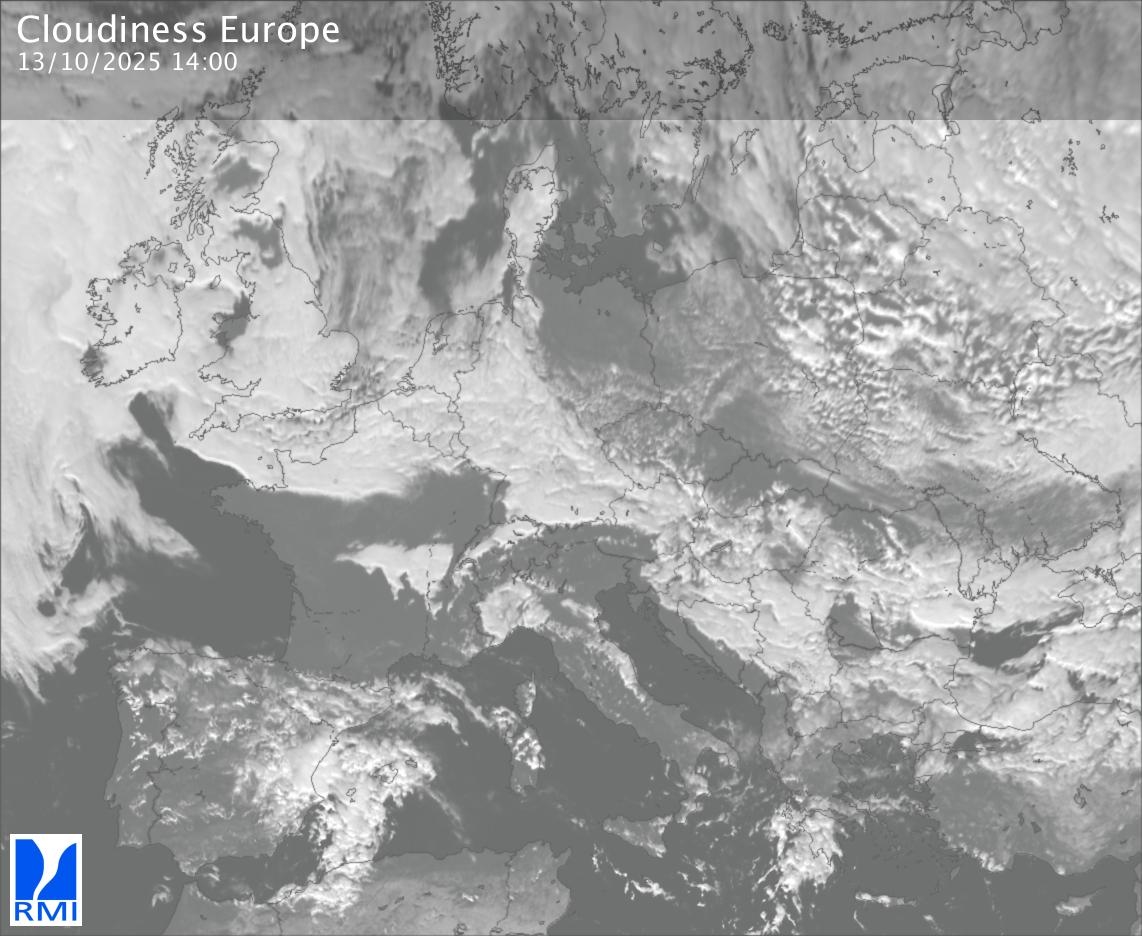 The visible channels of Meteosat are sensitive to the reflection of the solar radiation on the objects and allow to detect clouds during daytime. In the visible imagery the clouds appear as bright as they reflect the light and are then thicker.