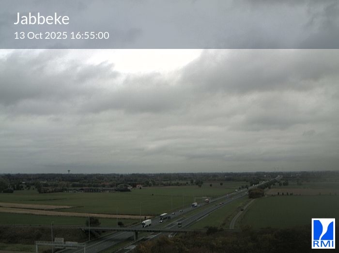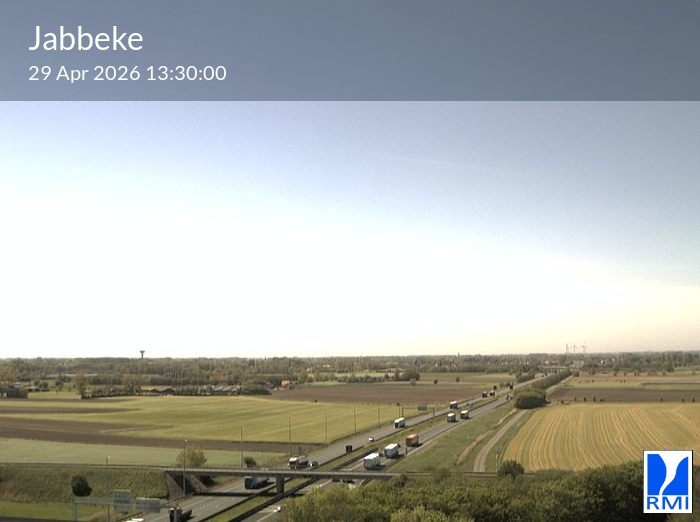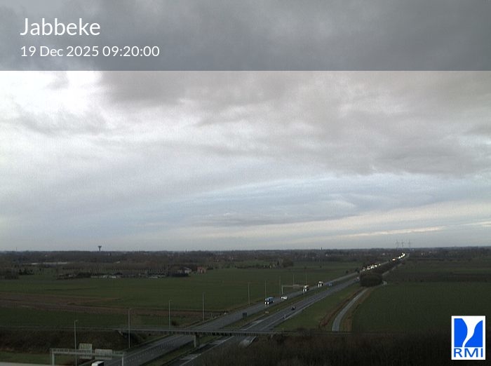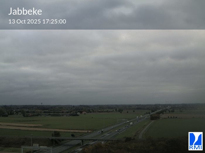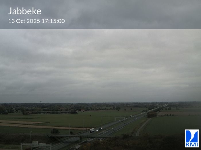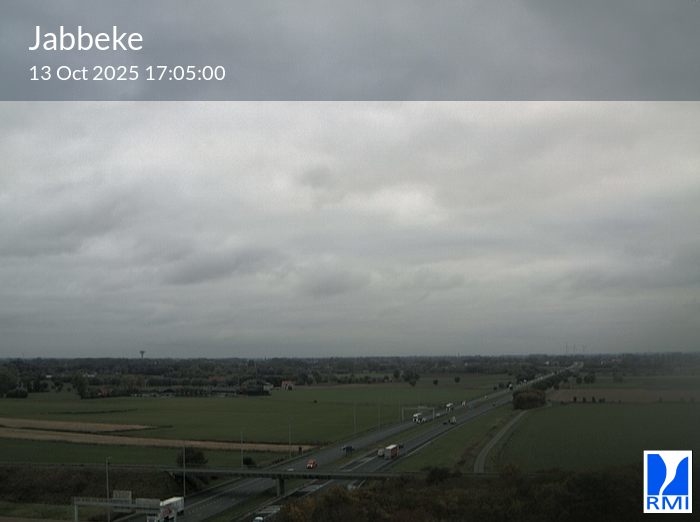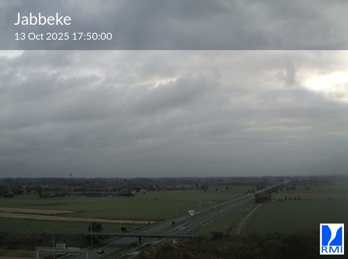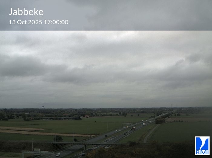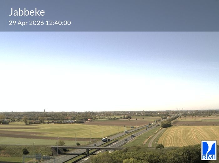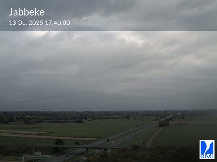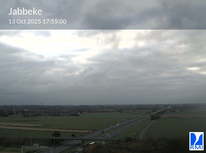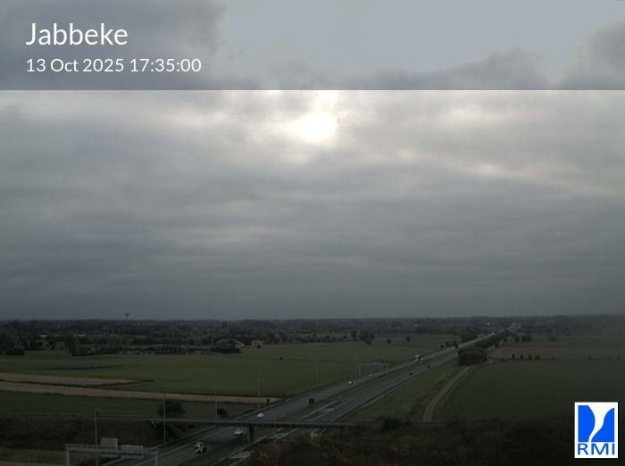 The webcam is located on the tower of the RMI weather radar in Jabbeke at the junction of the E40 highway towards France and the A10 to the coast (Ostend).