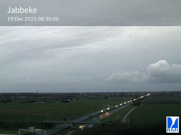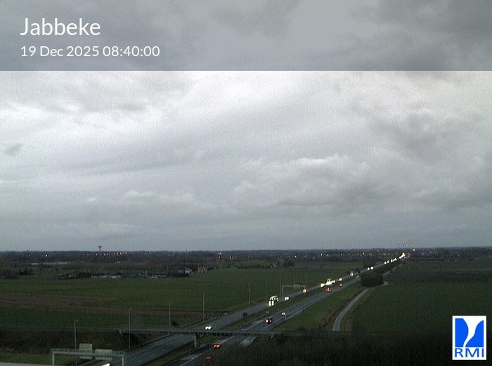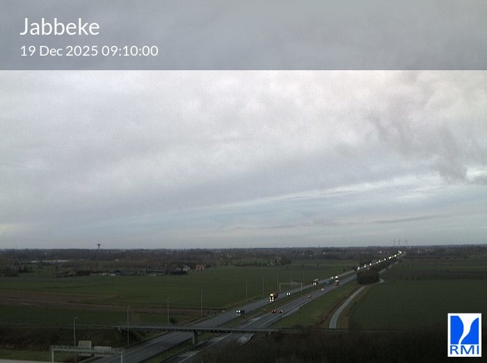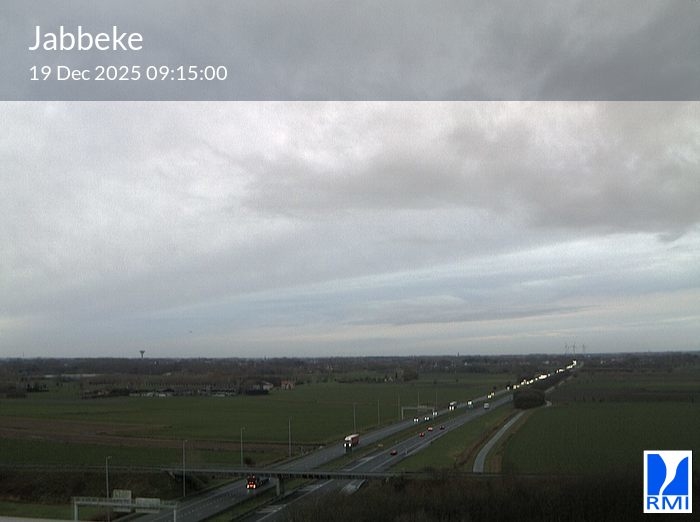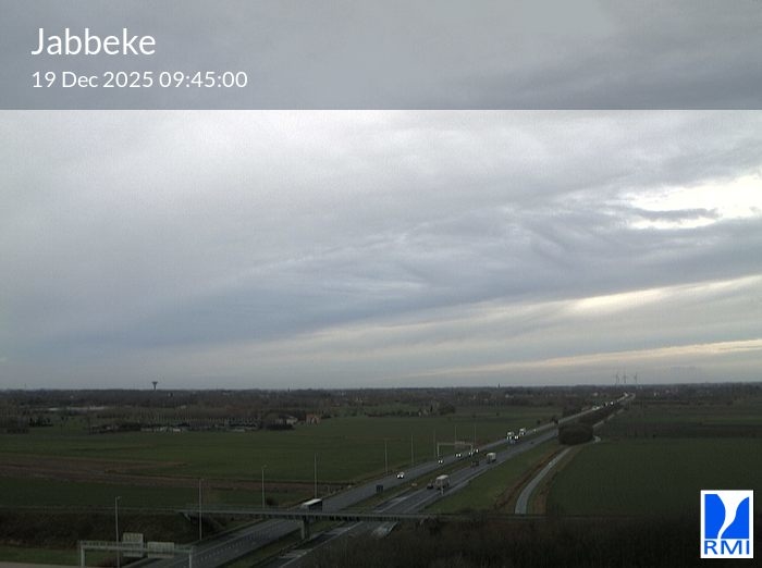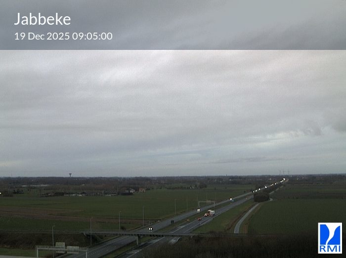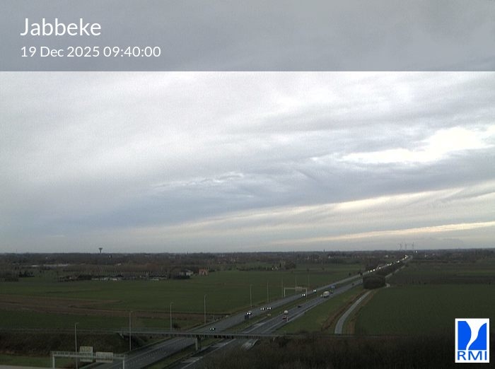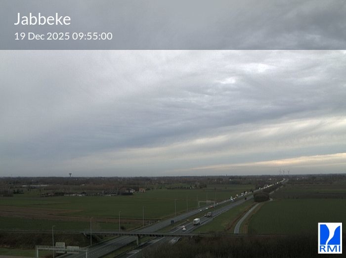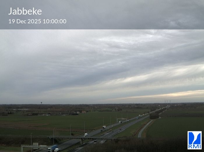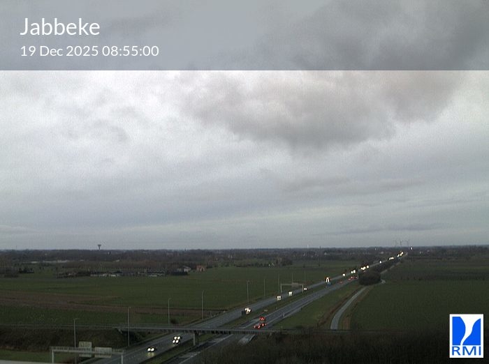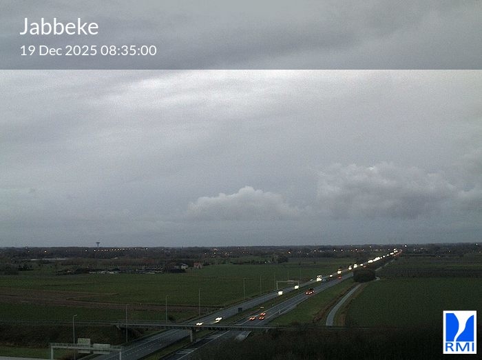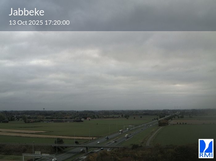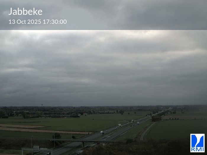 The webcam is located on the tower of the RMI weather radar in Jabbeke at the junction of the E40 highway towards France and the A10 to the coast (Ostend).
