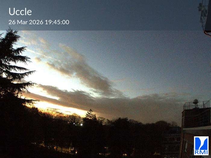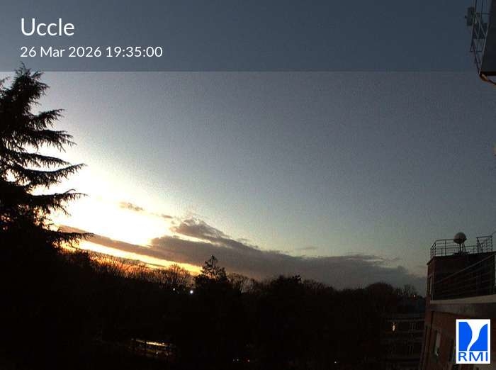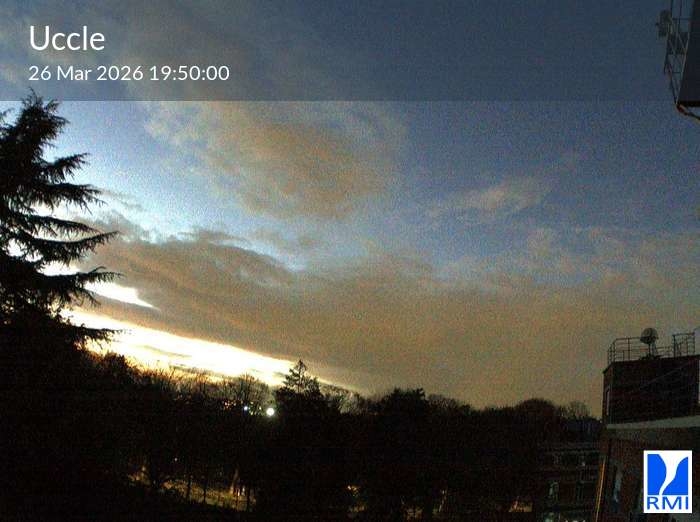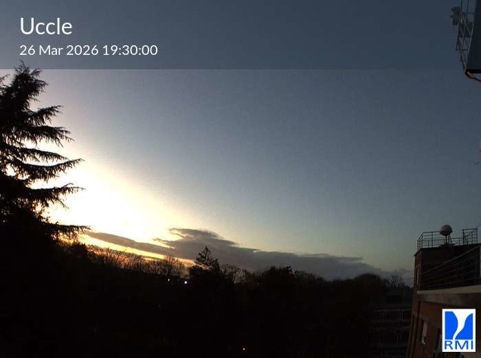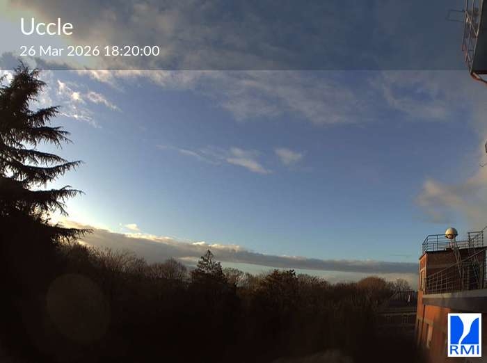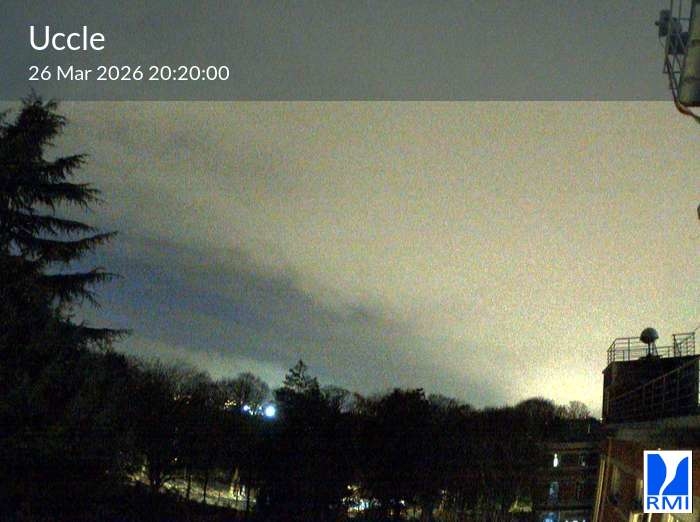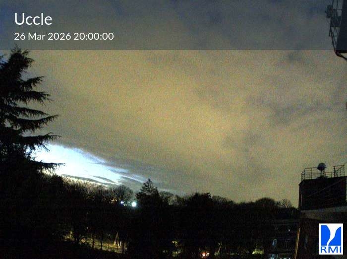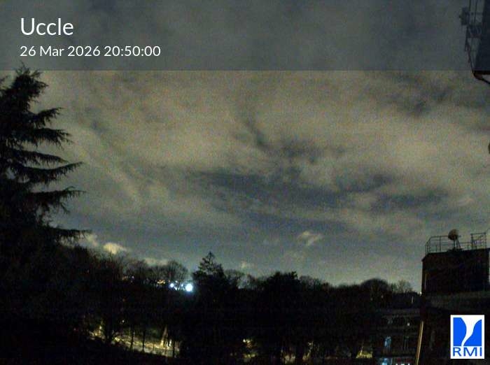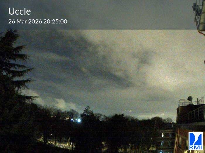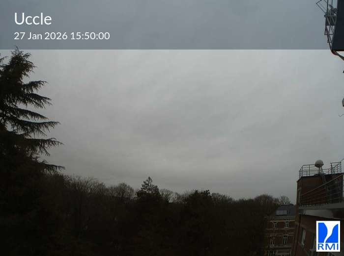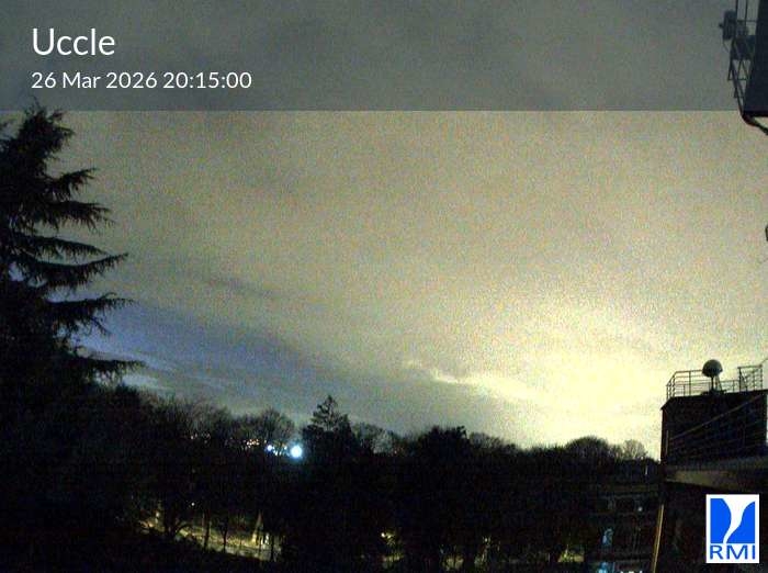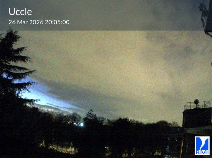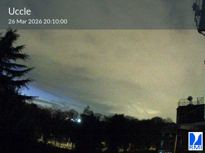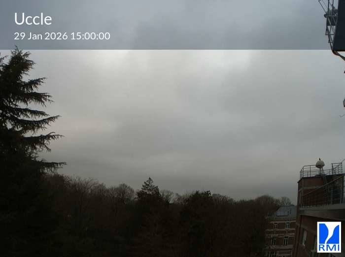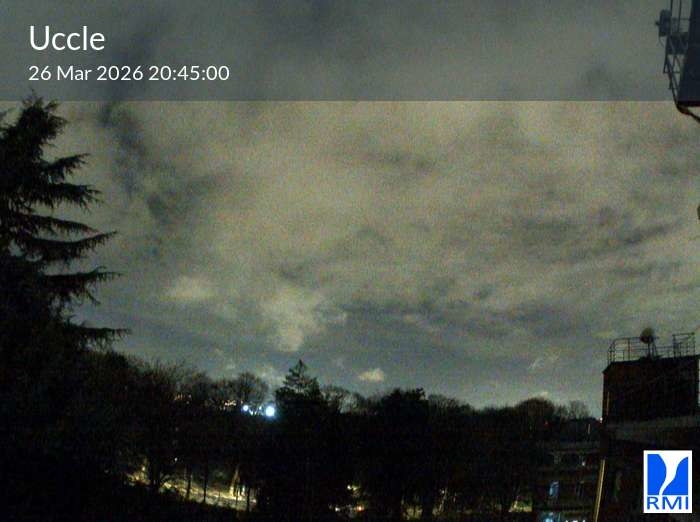 This webcam is situated on top of the observation tower in the RMI park in Uccle and is oriented to the North to avoid direct sunlight at noon.