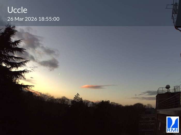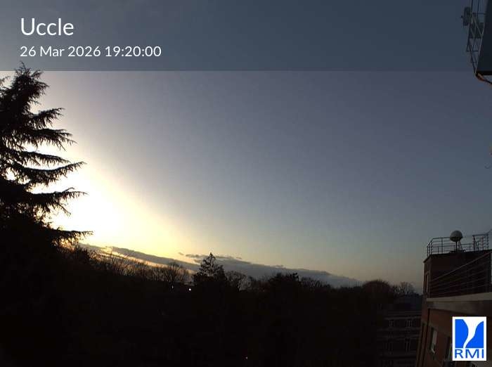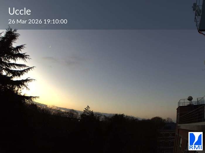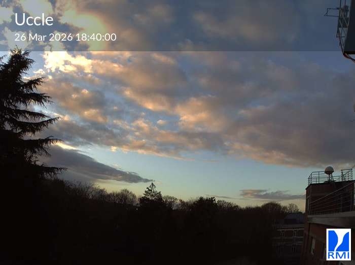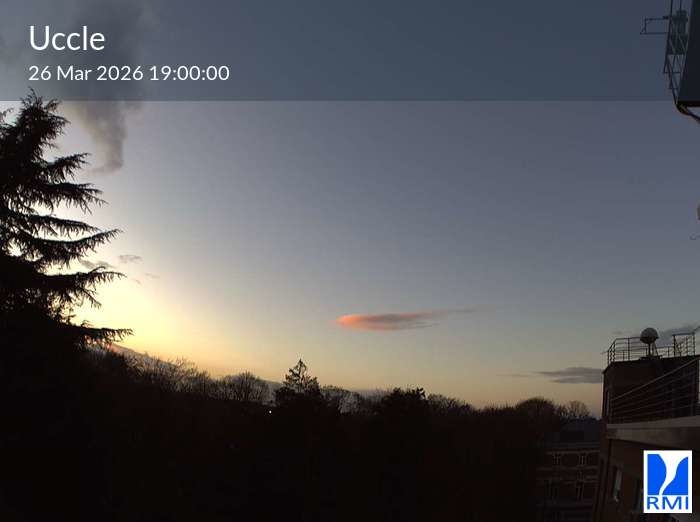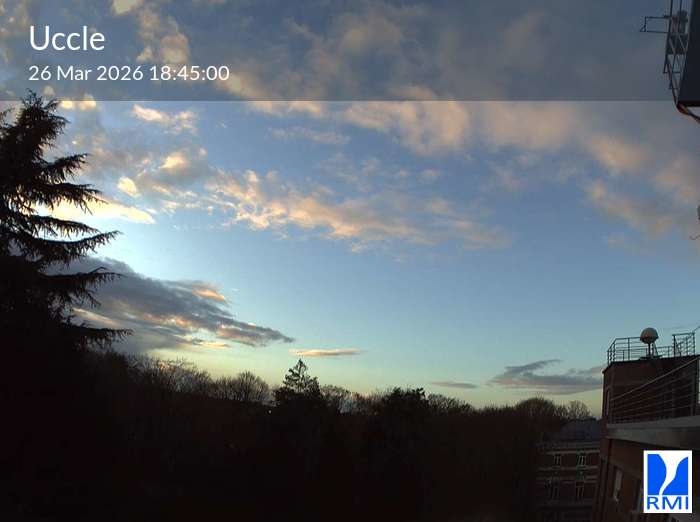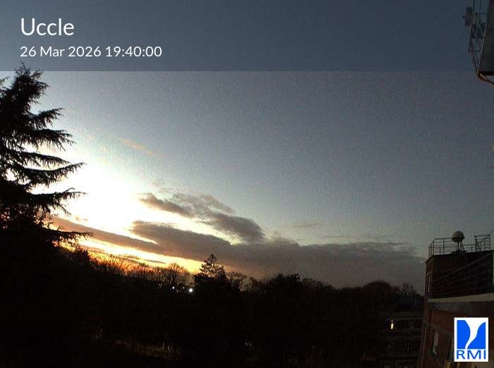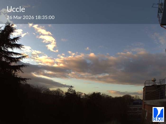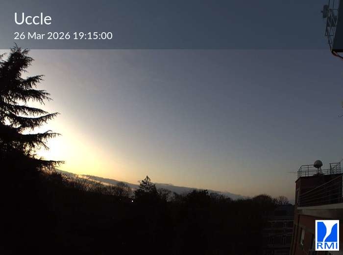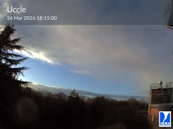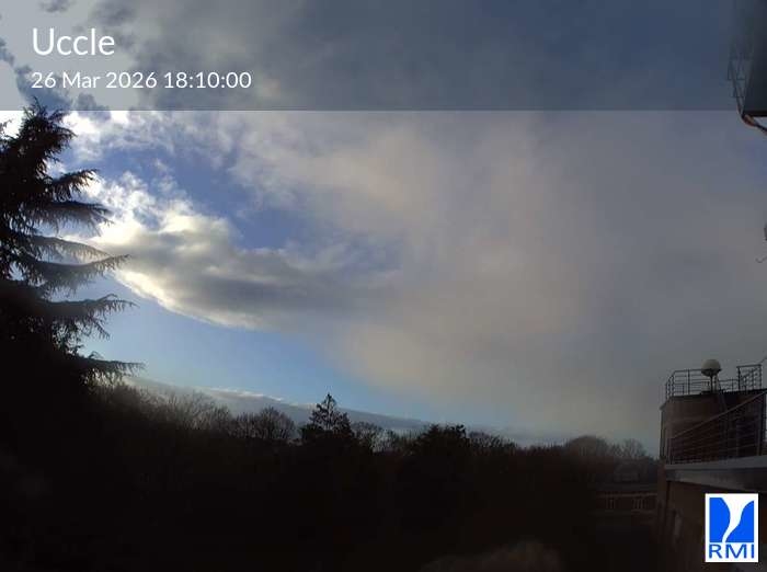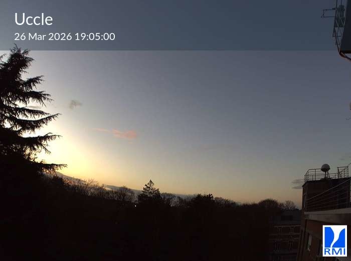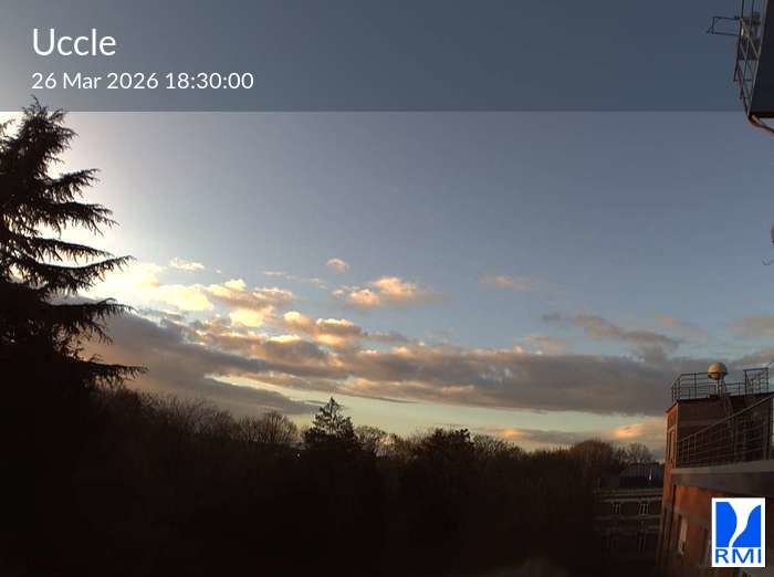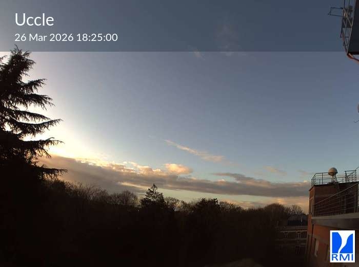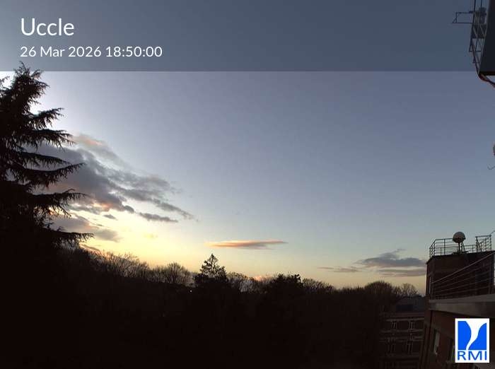 This webcam is situated on top of the observation tower in the RMI park in Uccle and is oriented to the North to avoid direct sunlight at noon.