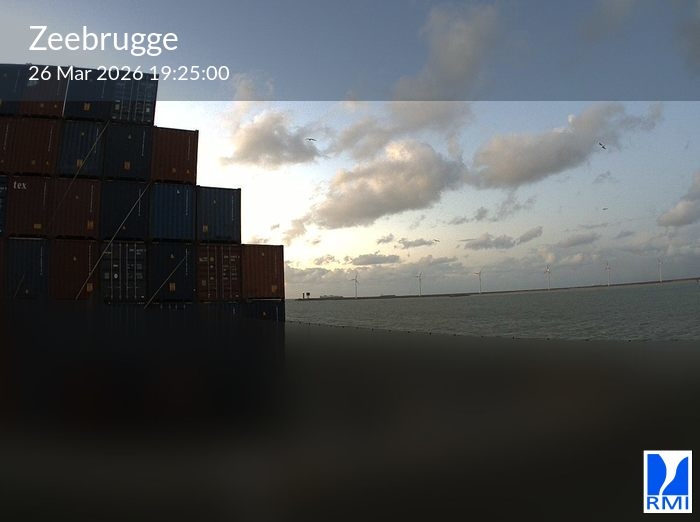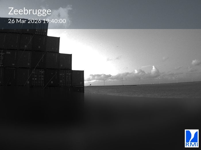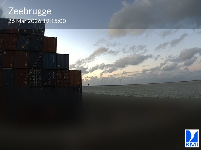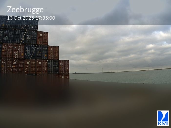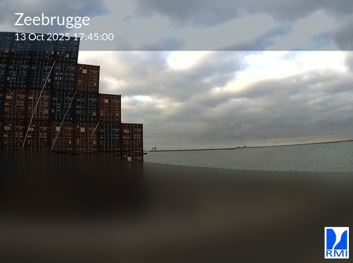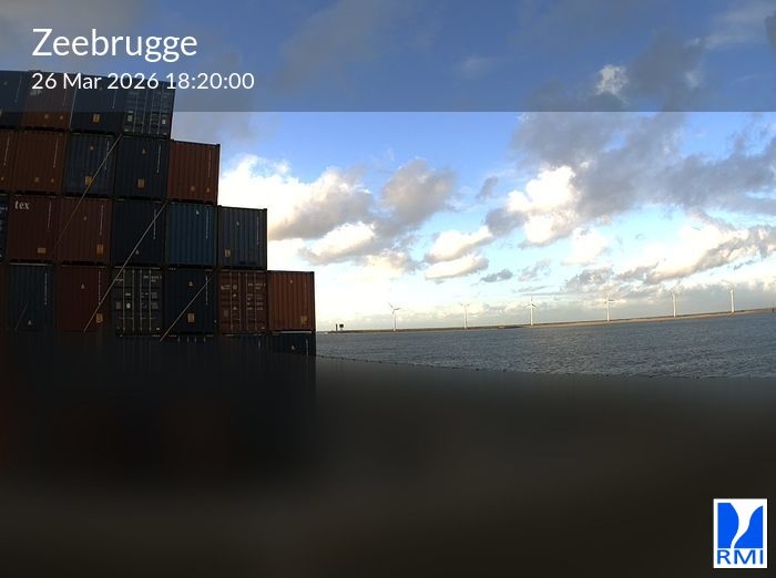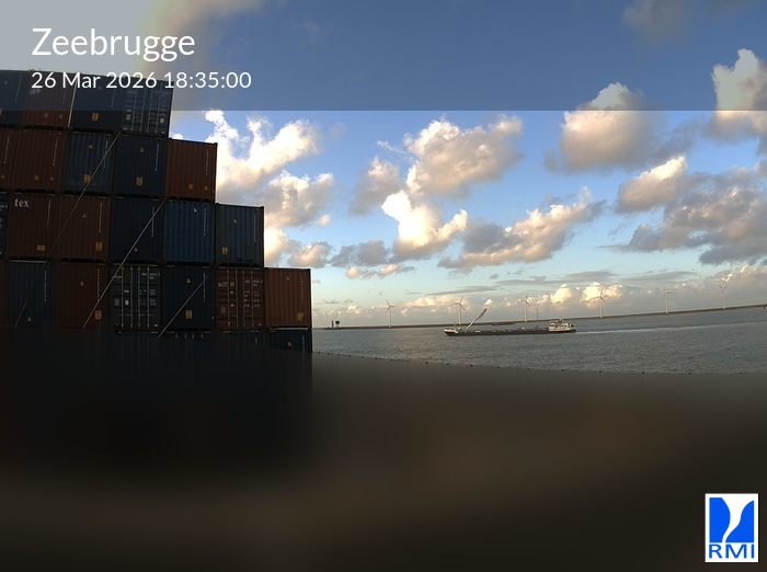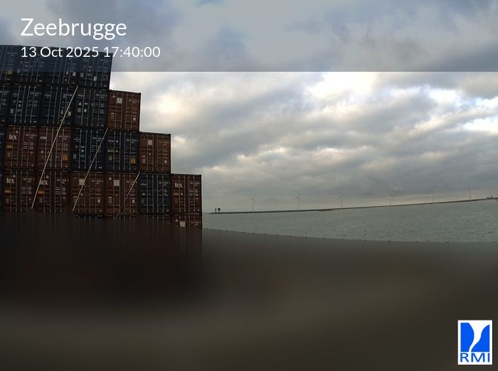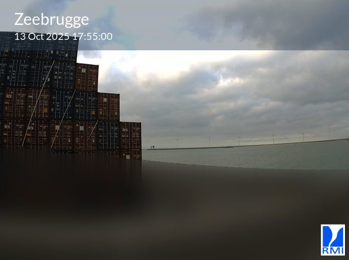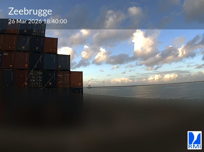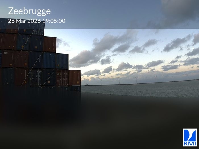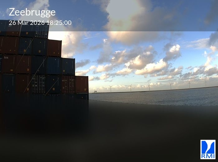 The webcam is situated on the Leopold II dam in the port of Zeebrugge and it is oriented to the North to avoid direct sunlight at noon.