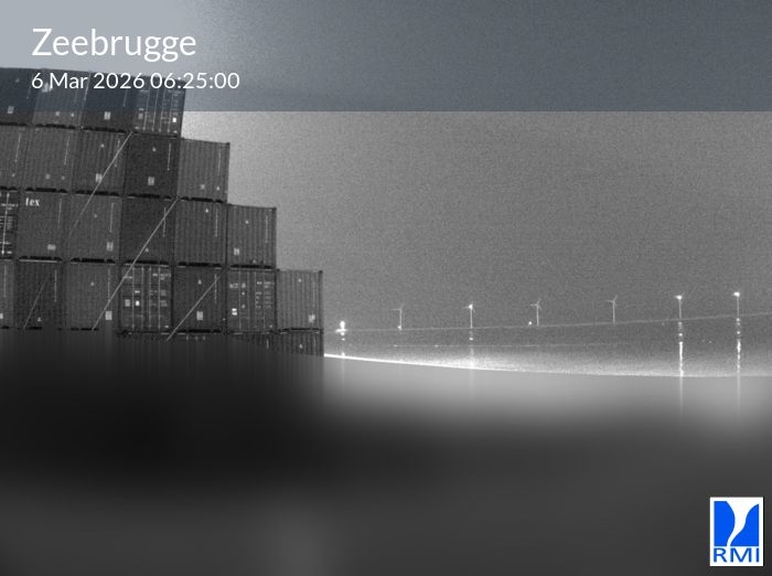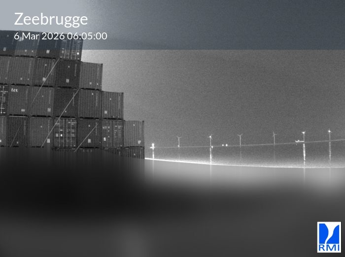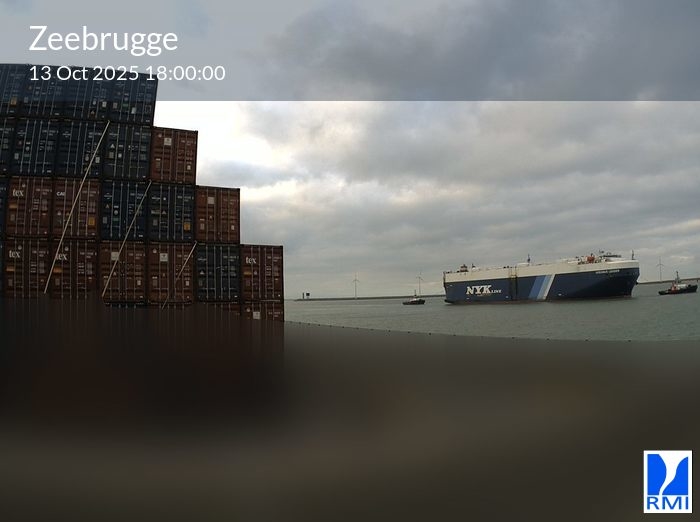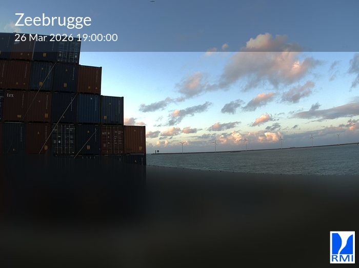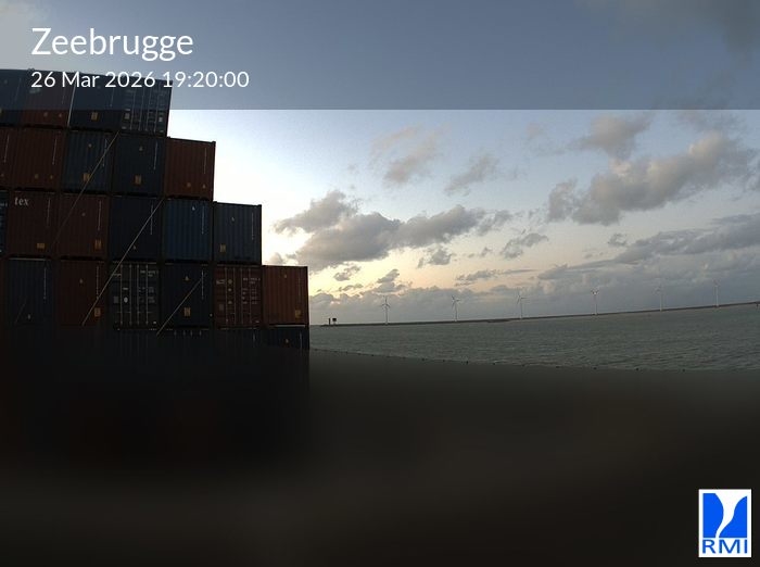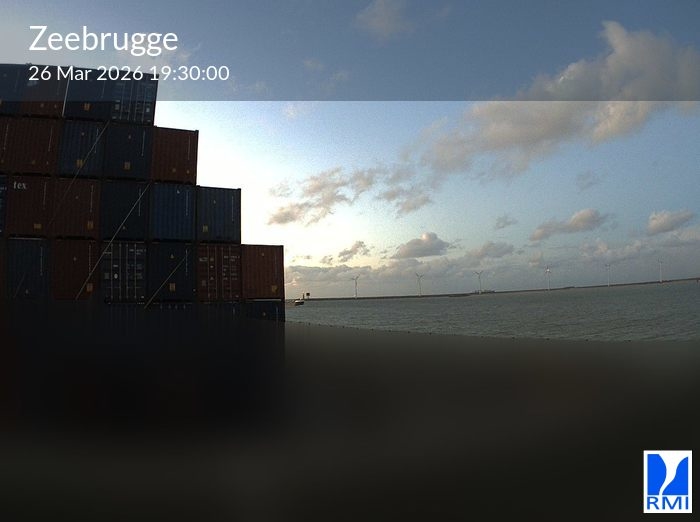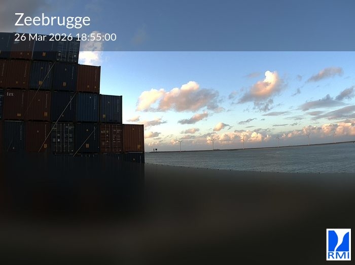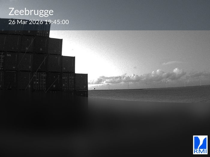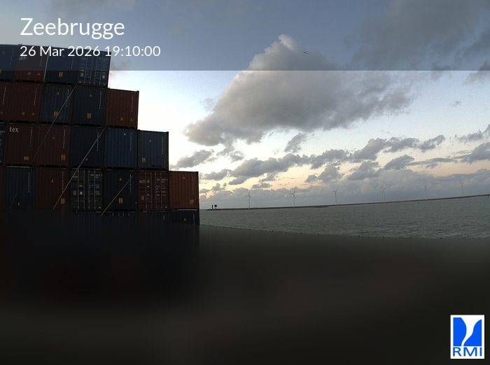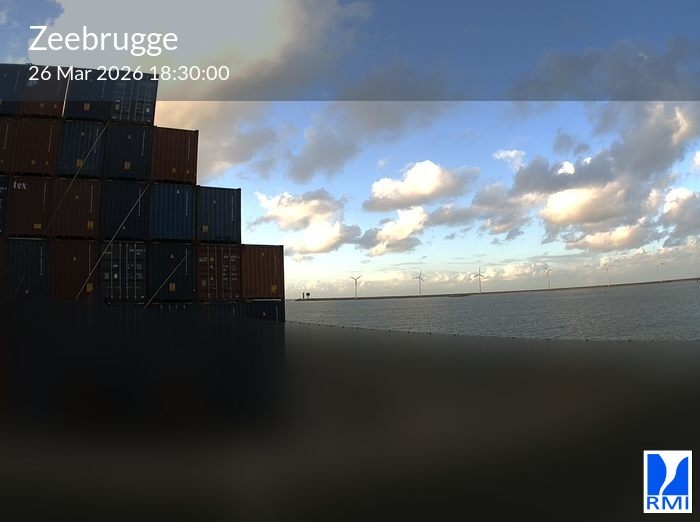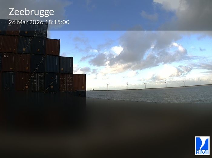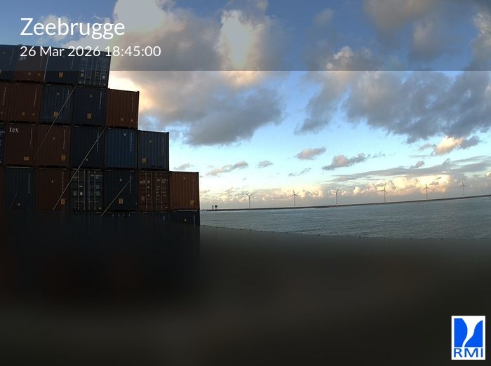 The webcam is situated on the Leopold II dam in the port of Zeebrugge and it is oriented to the North to avoid direct sunlight at noon.