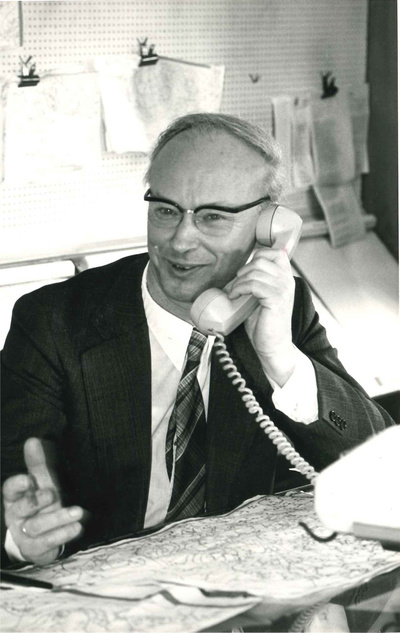 Jean-Louis Vanhamme en compagnie d'André Vandenplas au centre, directeur de l'IRM de 1971 à 1979, et d'Armand Pien à droite, aussi prévisionniste de l'IRM et célèbre présentateur météo sur les médias publics néerlandophones.