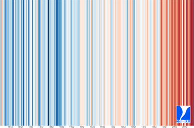 Les lignes de réchauffement sont un moyen simple et efficace de mettre en évidence et de rendre visible le réchauffement de la planète (et ses conséquences) au cours du siècle dernier et de lancer une conversation sur la question du climat. Le site https://showyourstripes.info/ vous permet de visualiser ces lignes pour de nombreuses régions et pays du monde, dont la Belgique.