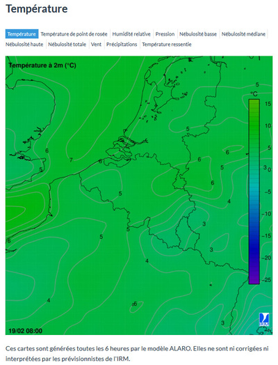 Notre modèle de prévisions numériques ALARO effectue 4 mises à jour quotidiennes, sur base horaire et pour les 48 prochaines heures. Les résultats fournis par ce modèle, entre autres, sont utilisés par les prévisionnistes de l’IRM afin d’établir leurs prévisions pour le pays. Les cartes de prévisions d’ALARO sont maintenant disponibles sous forme d’animations sur le nouveau site web.