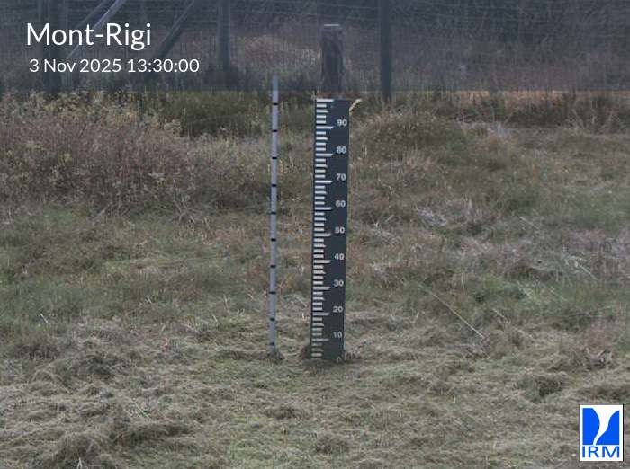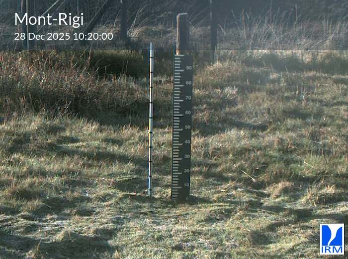 La latte de mesure sur l'image permet d'estimer la hauteur de neige actuelle (en cm).
