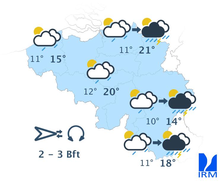 Le temps deviendra plus variable avec des éclaircies mais aussi quelques périodes d'averses. Les maxima dans le centre, proches des normales de saison, oscilleront entre 18 et 20 degrés.