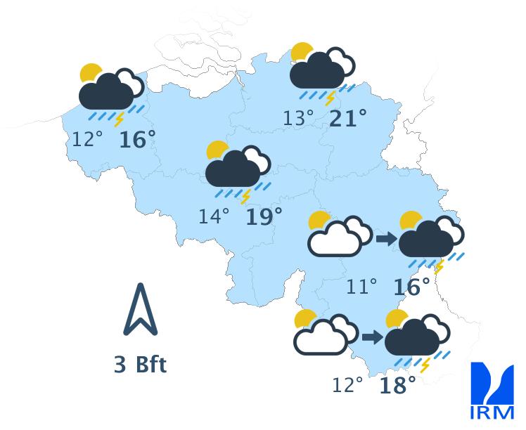 Ce soir et cette nuit, le ciel deviendra plus nuageux à partir du nord-ouest. Dans le nord-ouest du pays, l'une ou l'autre averse pourrait même se produire. Les minima seront compris entre 5 et 10 degrés, mais dans certaines vallées ardennaises, le mercure pourrait descendre autour de 2 degrés. Le vent sera souvent modéré de nord à nord-est.