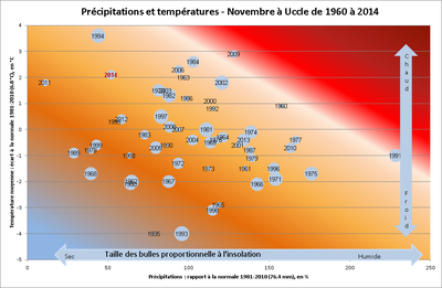 Le dernier mois de l’automne météorologique fut caractérisé à Uccle par un déficit très anormal des précipitations, par un excès anormal de la température moyenne et de la durée d’ensoleillement et par une valeur normale de la vitesse moyenne du vent.