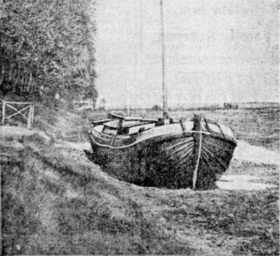 In Friesland kwamen sommige schepen volledig op de grond te liggen door de lage waterstanden. Bron: De Telegraaf (1 september 1921).