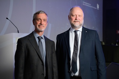 Directeur-Generaal, Daniel Gellens, van het KMI (links) samen met Directeur-Generaal, Phil Evans, van EUMETSAT (rechts) (credits: EUMETSAT).