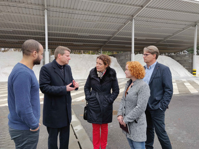 Minister Lydia Peeters krijgt uitleg over deze nieuwe samenwerking op de terrein van de Winterdienst Paal te Beringen.