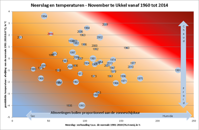 De laatste maand van de meteorologische herfst werd te Ukkel gekenmerkt door een zeer abnormaal laag neerslagtotaal, door een abnormaal hoge gemiddelde temperatuur en zonneschijnduur en door een normale waarde van de gemiddelde windsnelheid.