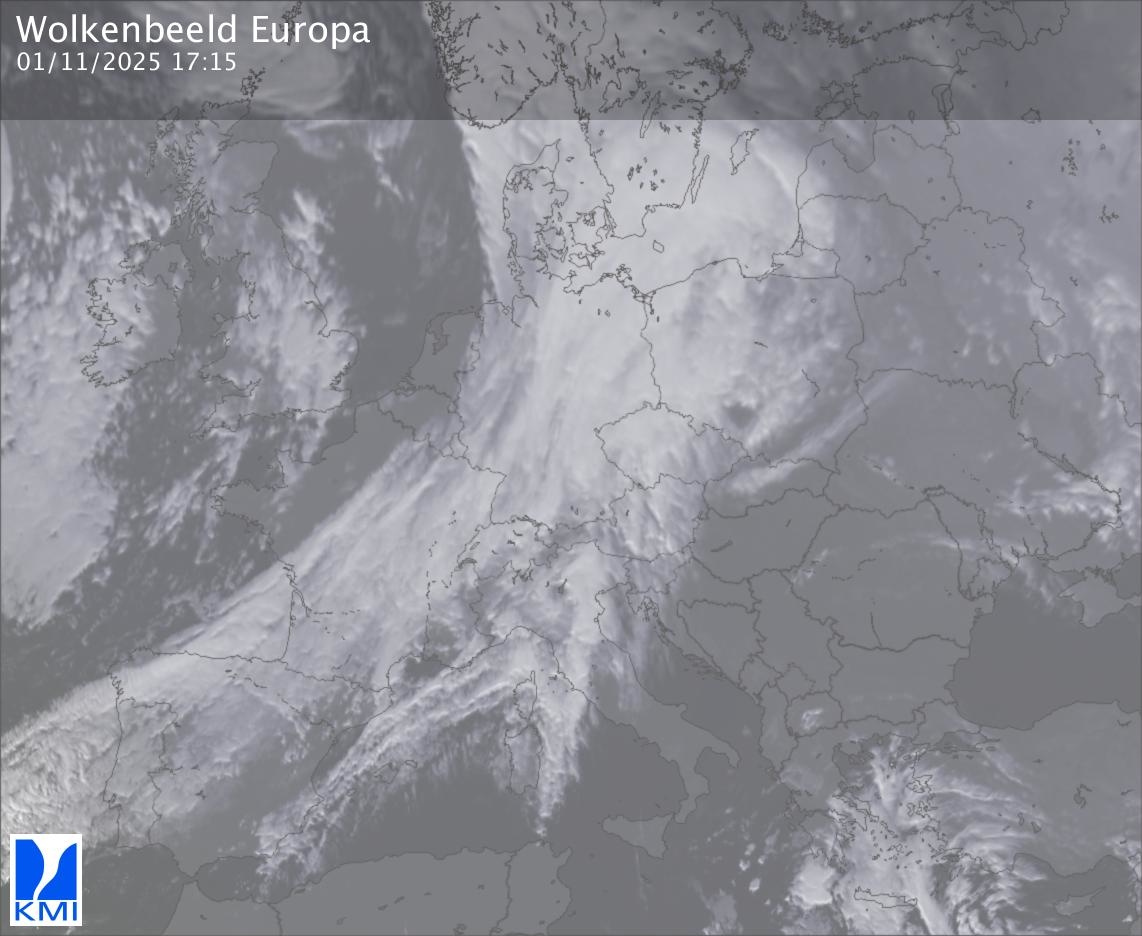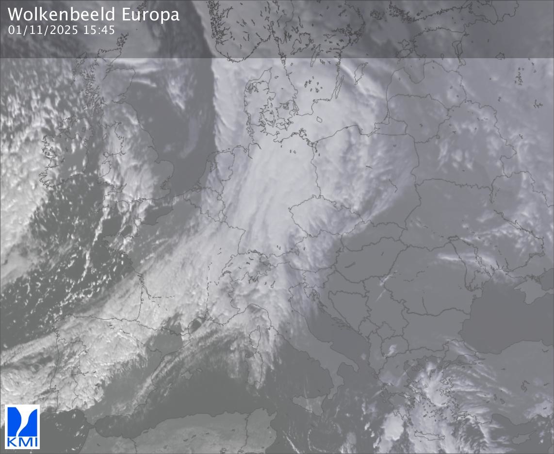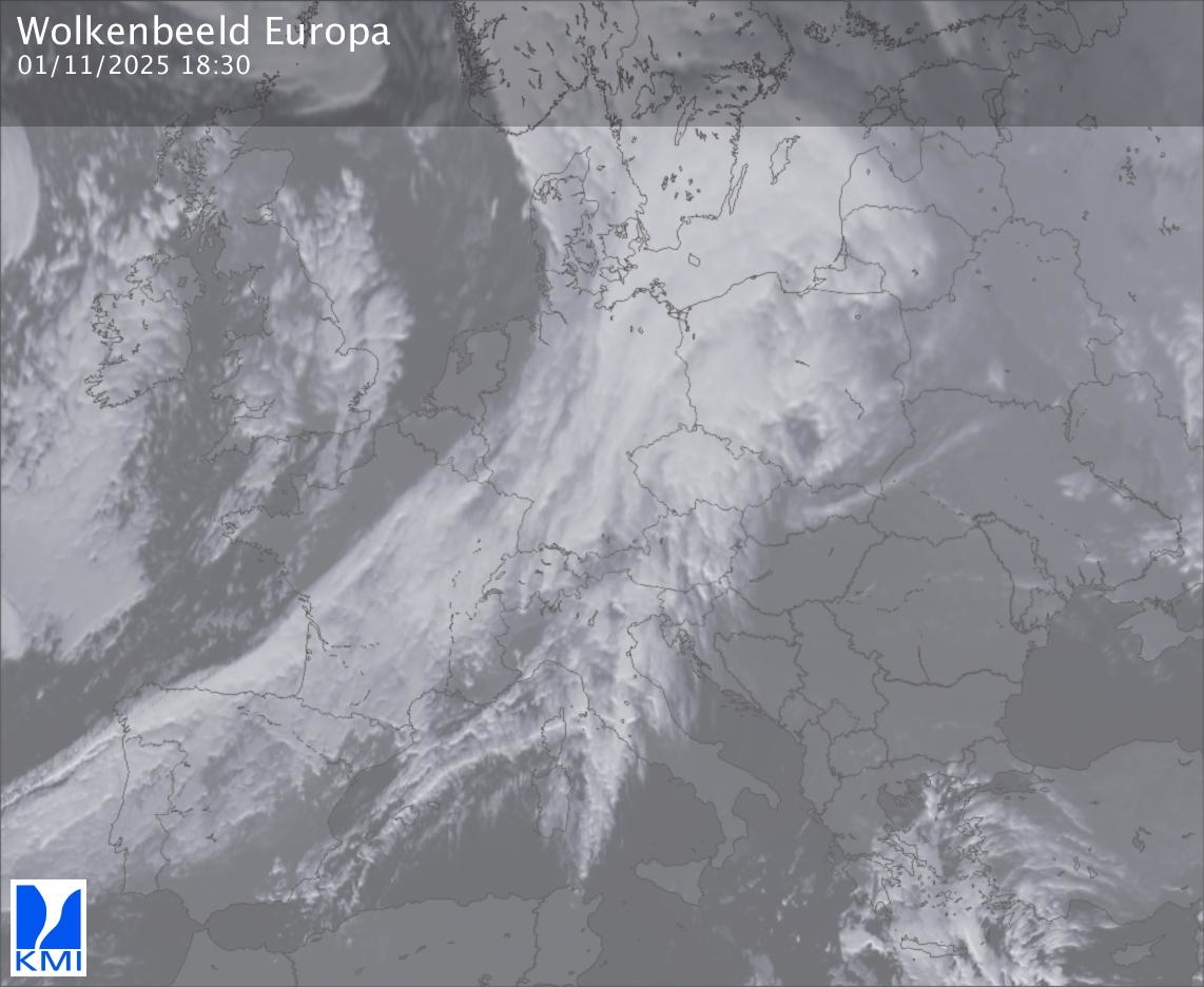Wolkenbeelden van Europa: een combinatie uit het zichtbare (dag) en infrarode (nacht) spectrum.