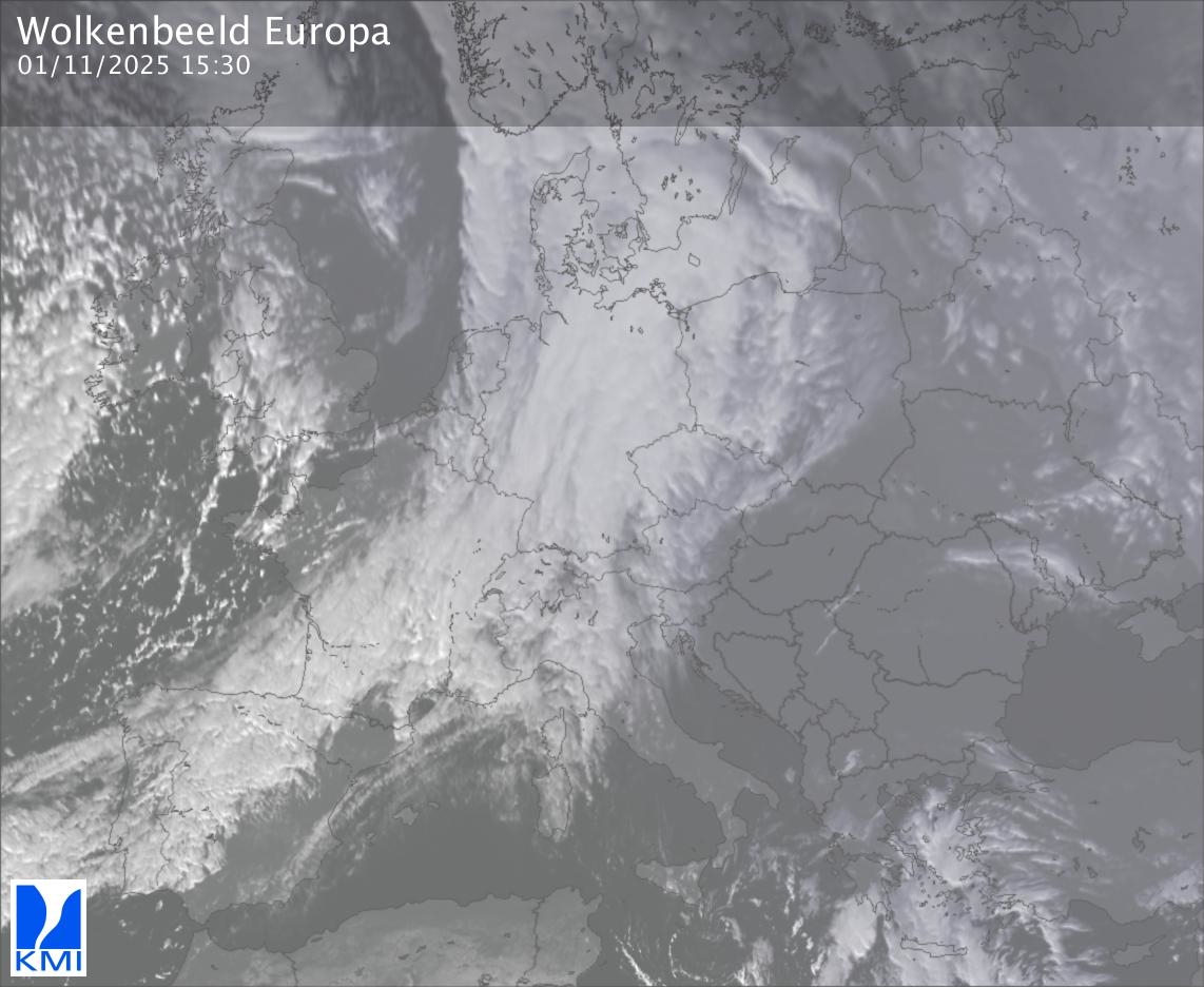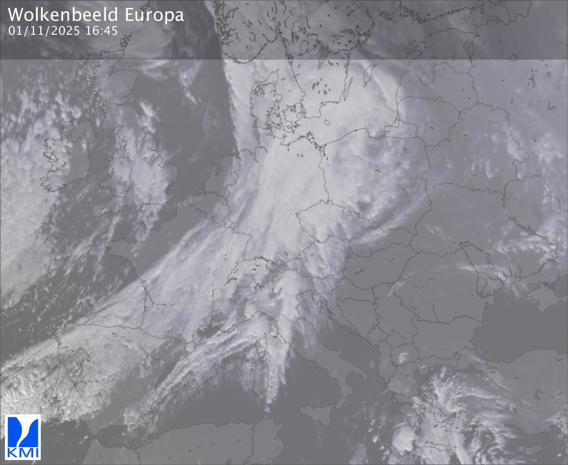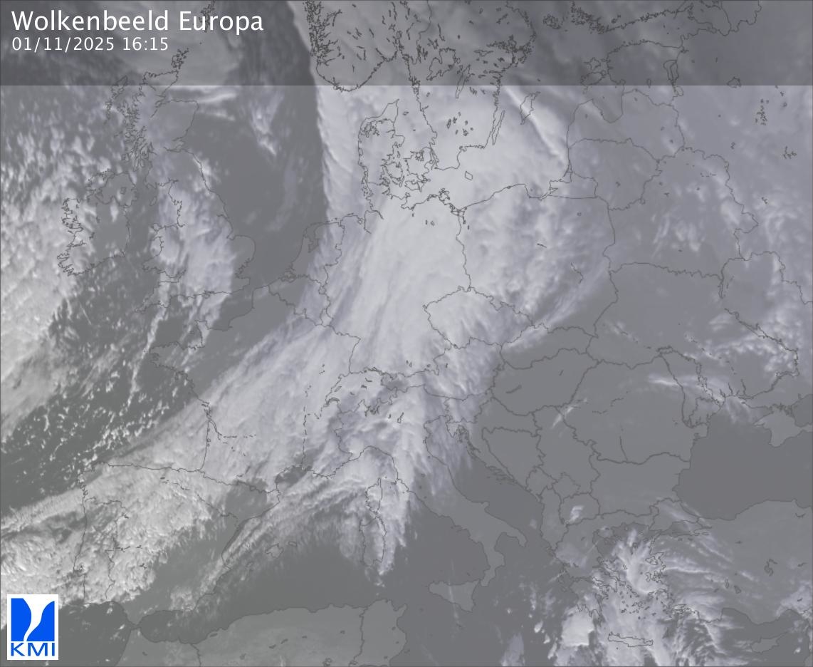 Wolkenbeelden van Europa: een combinatie uit het zichtbare (dag) en infrarode (nacht) spectrum.