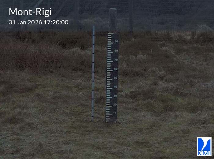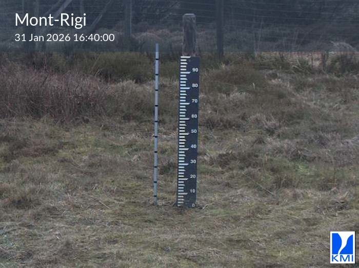 De meetlat op het beeld laat toe om de actuele sneeuwhoogte (in cm) in te schatten.