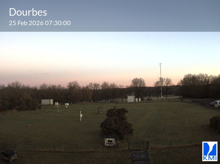 Deze webcam bevindt zich te Dourbes (provincie Namen), op het hoofdgebouw van het Geofysisch Centrum van het KMI.