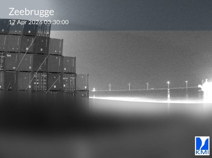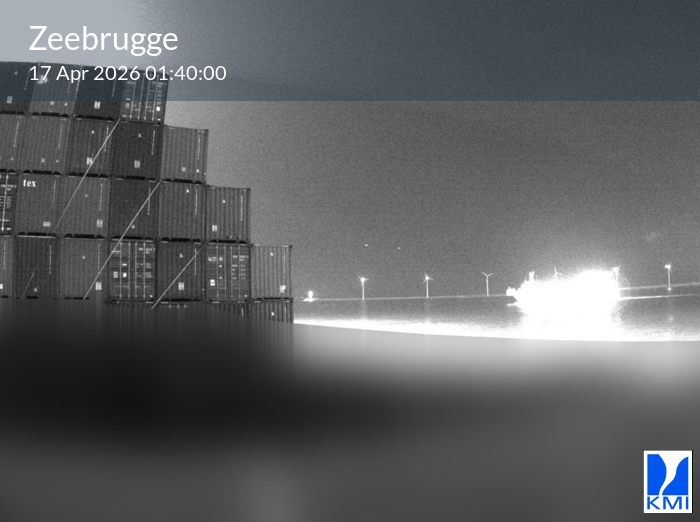 De webcam bevindt zich op de Leopold II-Dam in de haven van Zeebrugge aan de Belgische Kust en is naar het noorden gericht om het rechtstreekse zonlicht tijdens het middaguur te vermijden.