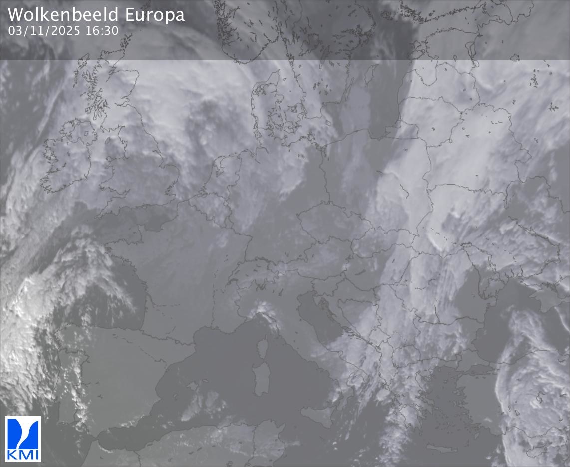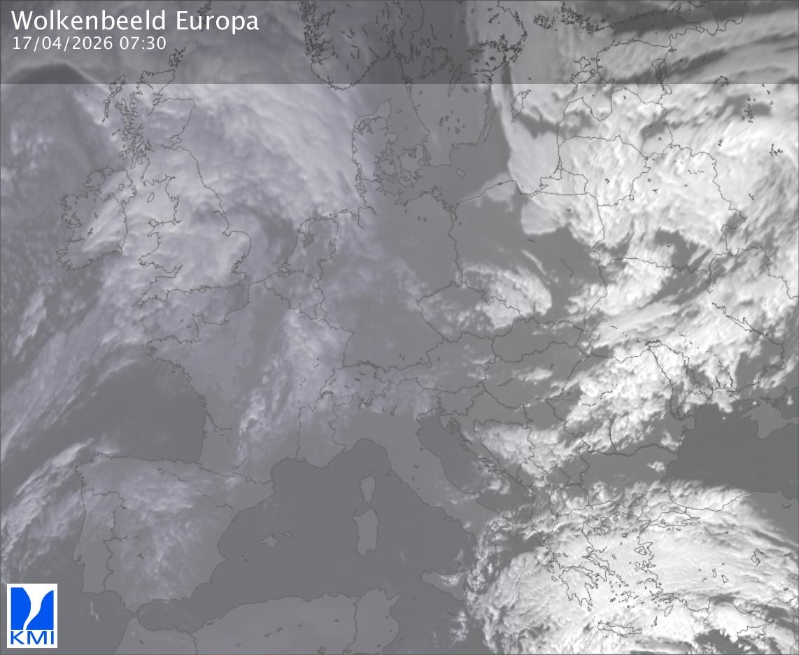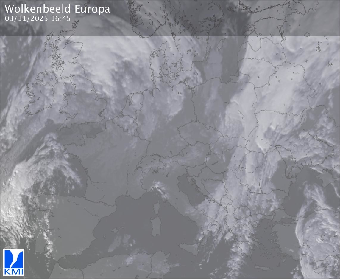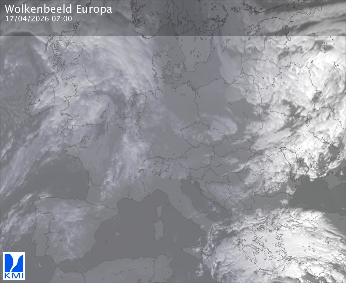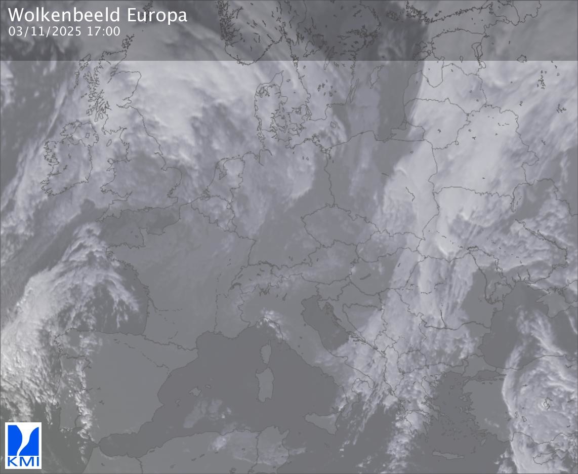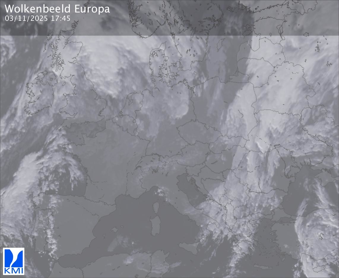 Wolkenbeelden van Europa: een combinatie uit het zichtbare (dag) en infrarode (nacht) spectrum.