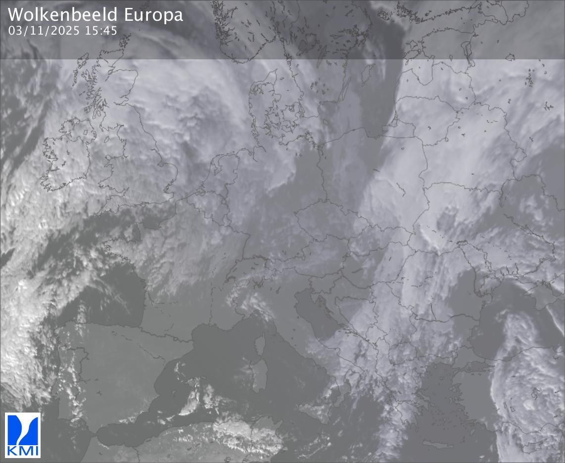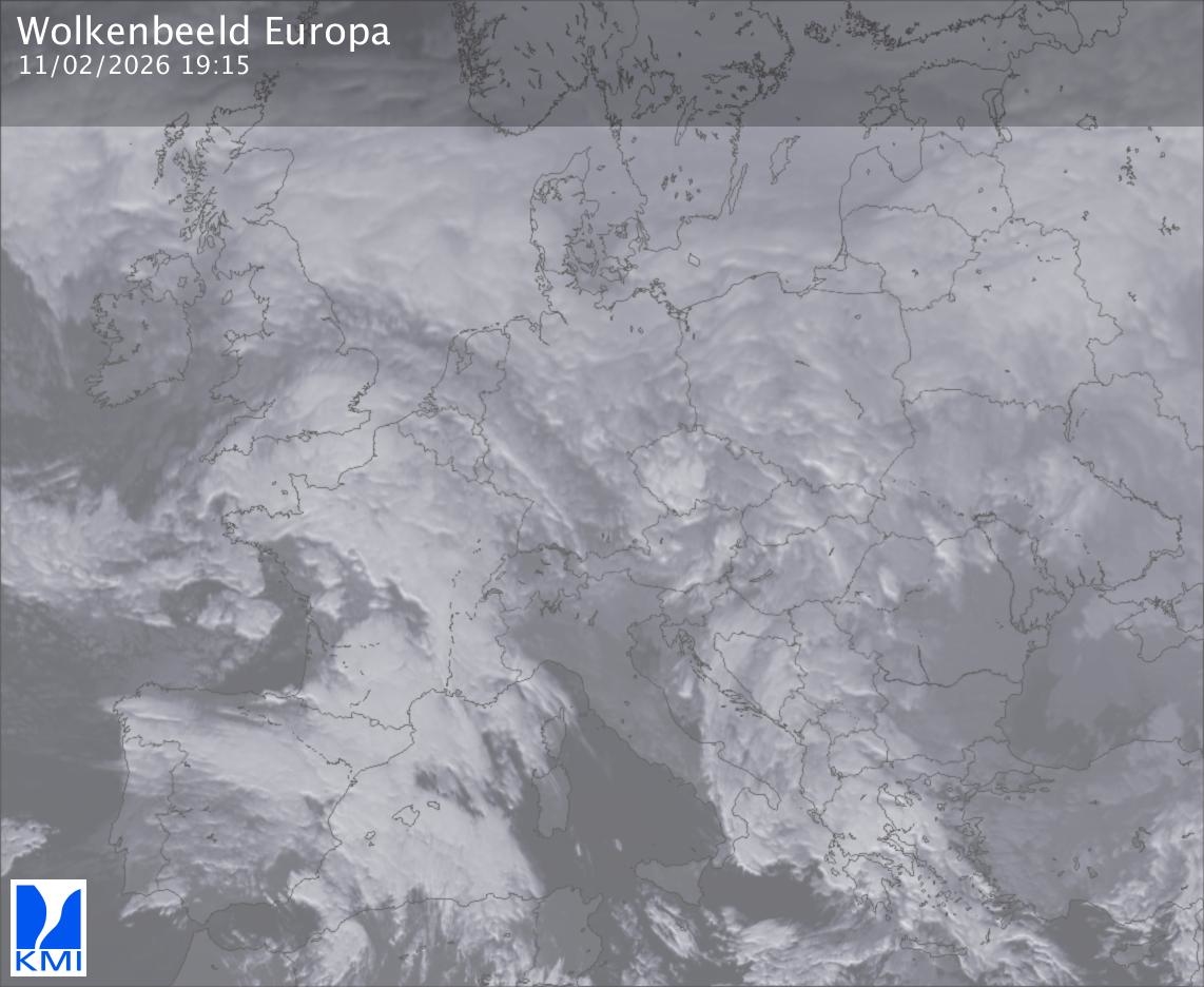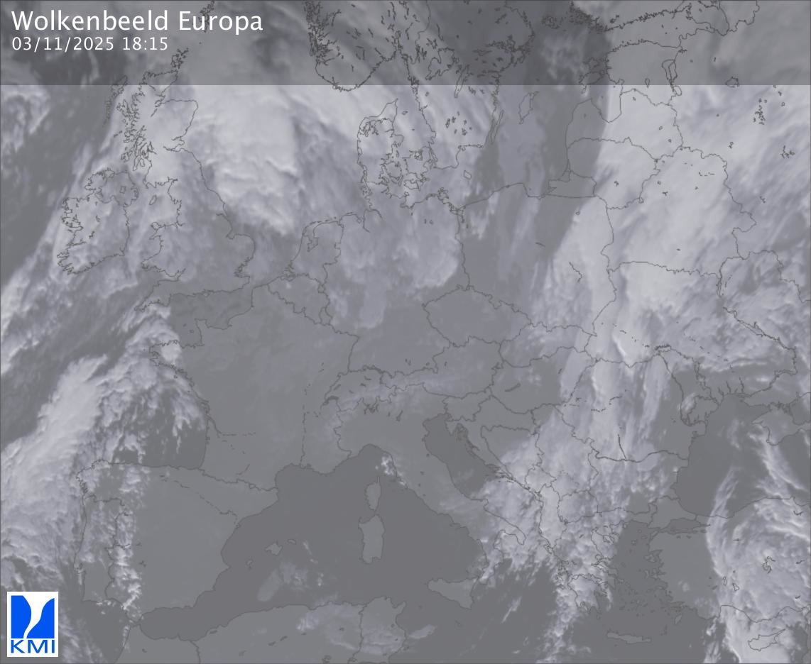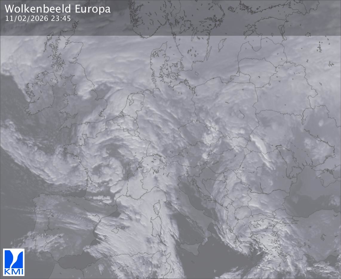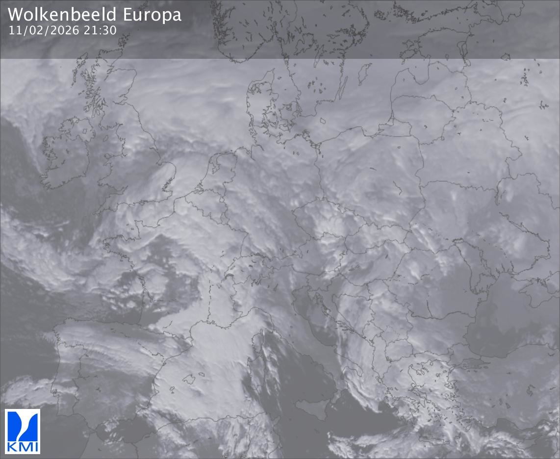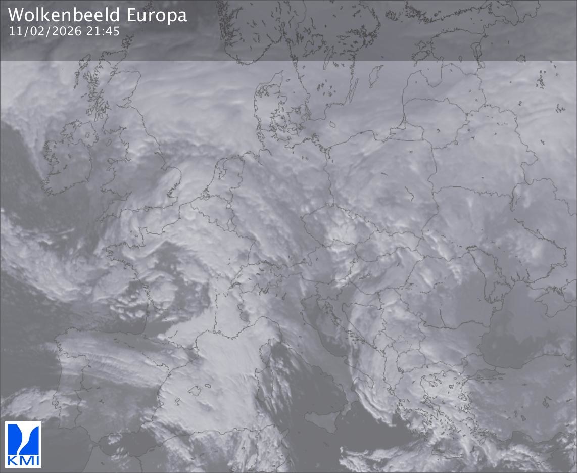 Wolkenbeelden van Europa: een combinatie uit het zichtbare (dag) en infrarode (nacht) spectrum.