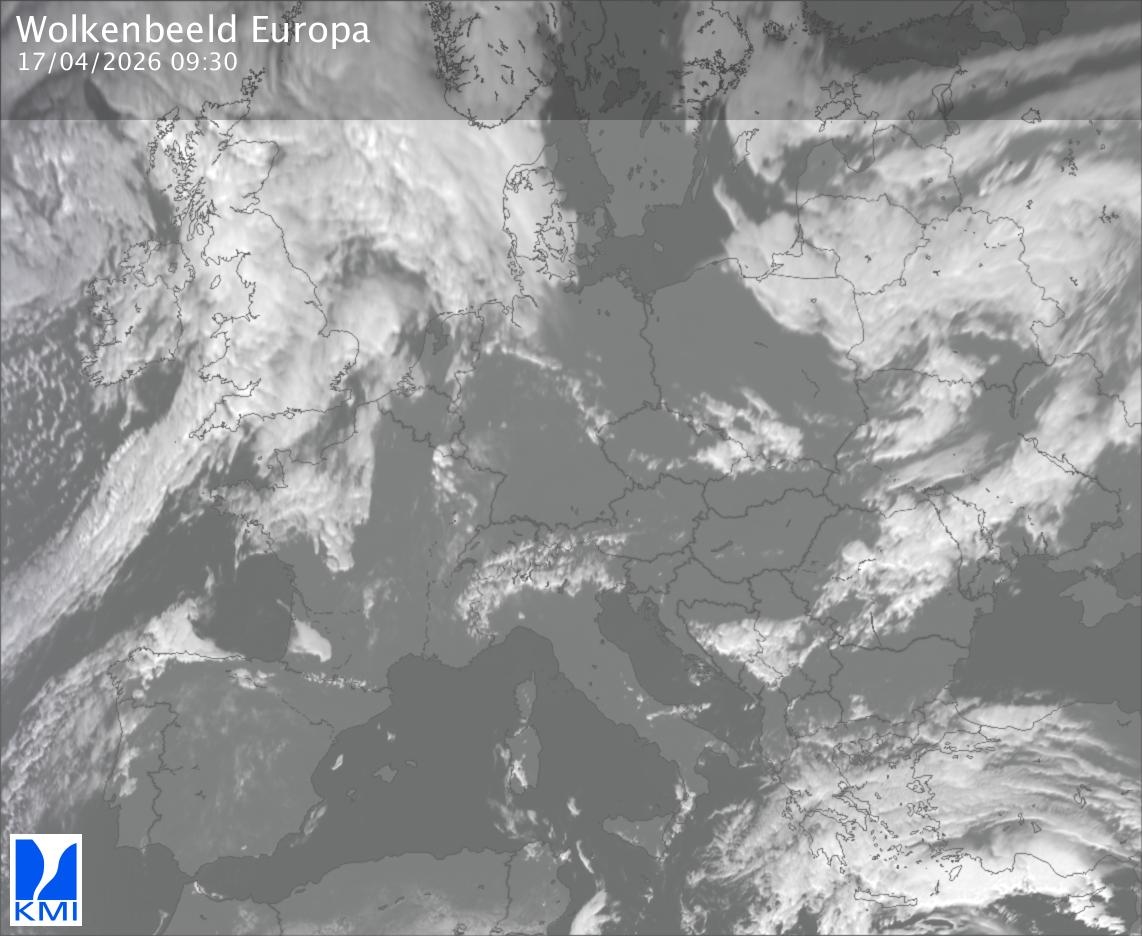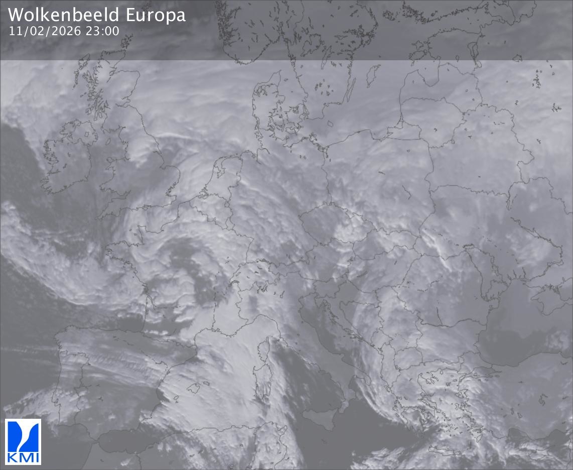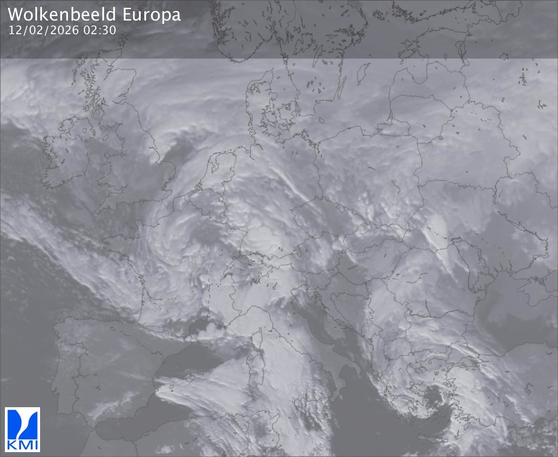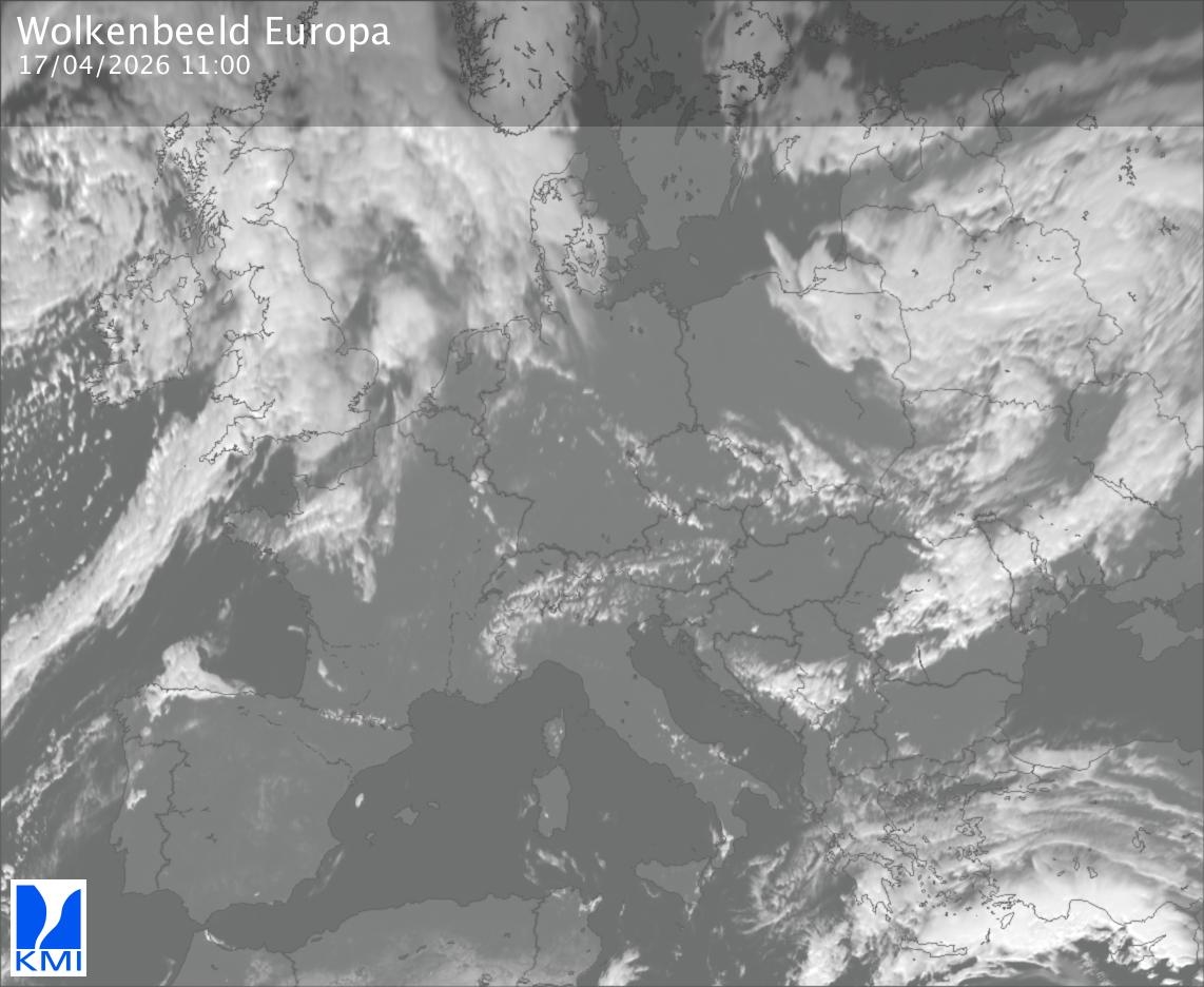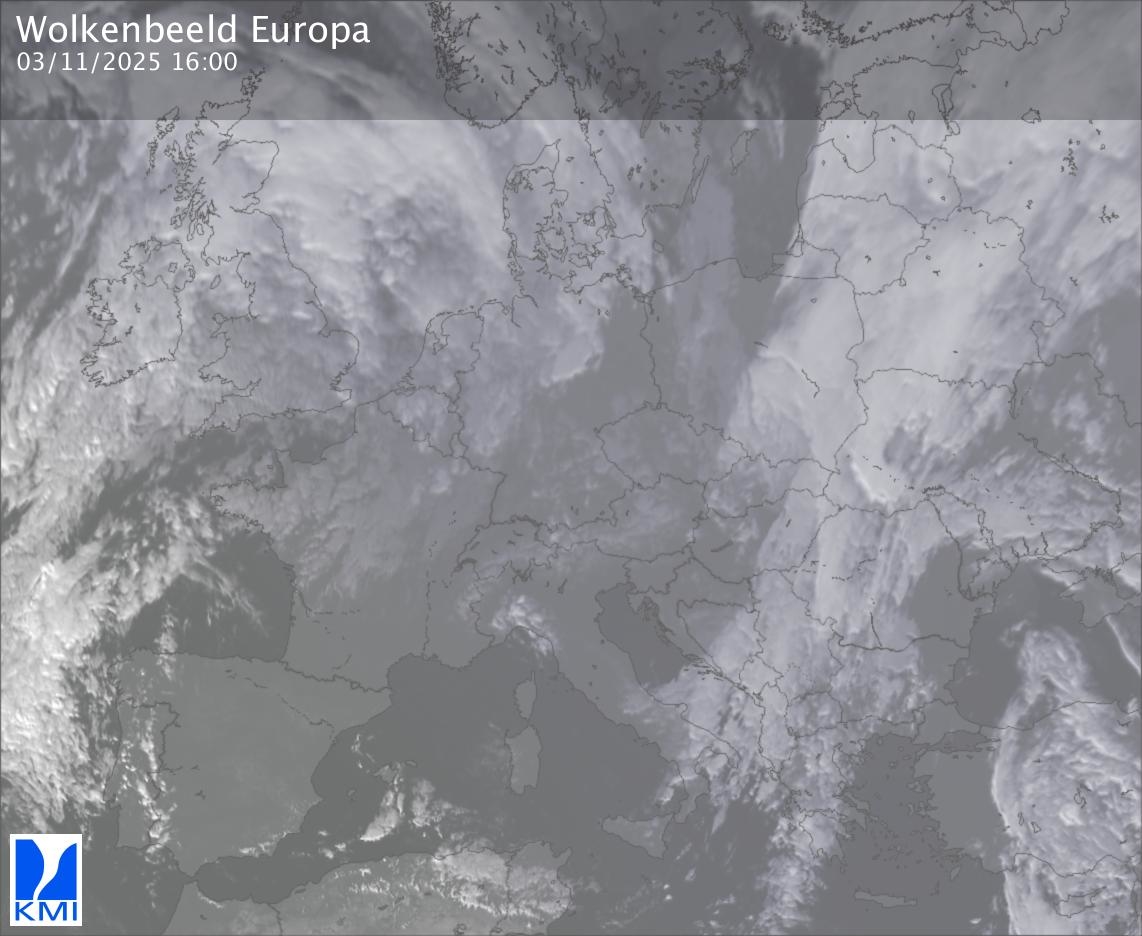 Wolkenbeelden van Europa: een combinatie uit het zichtbare (dag) en infrarode (nacht) spectrum.