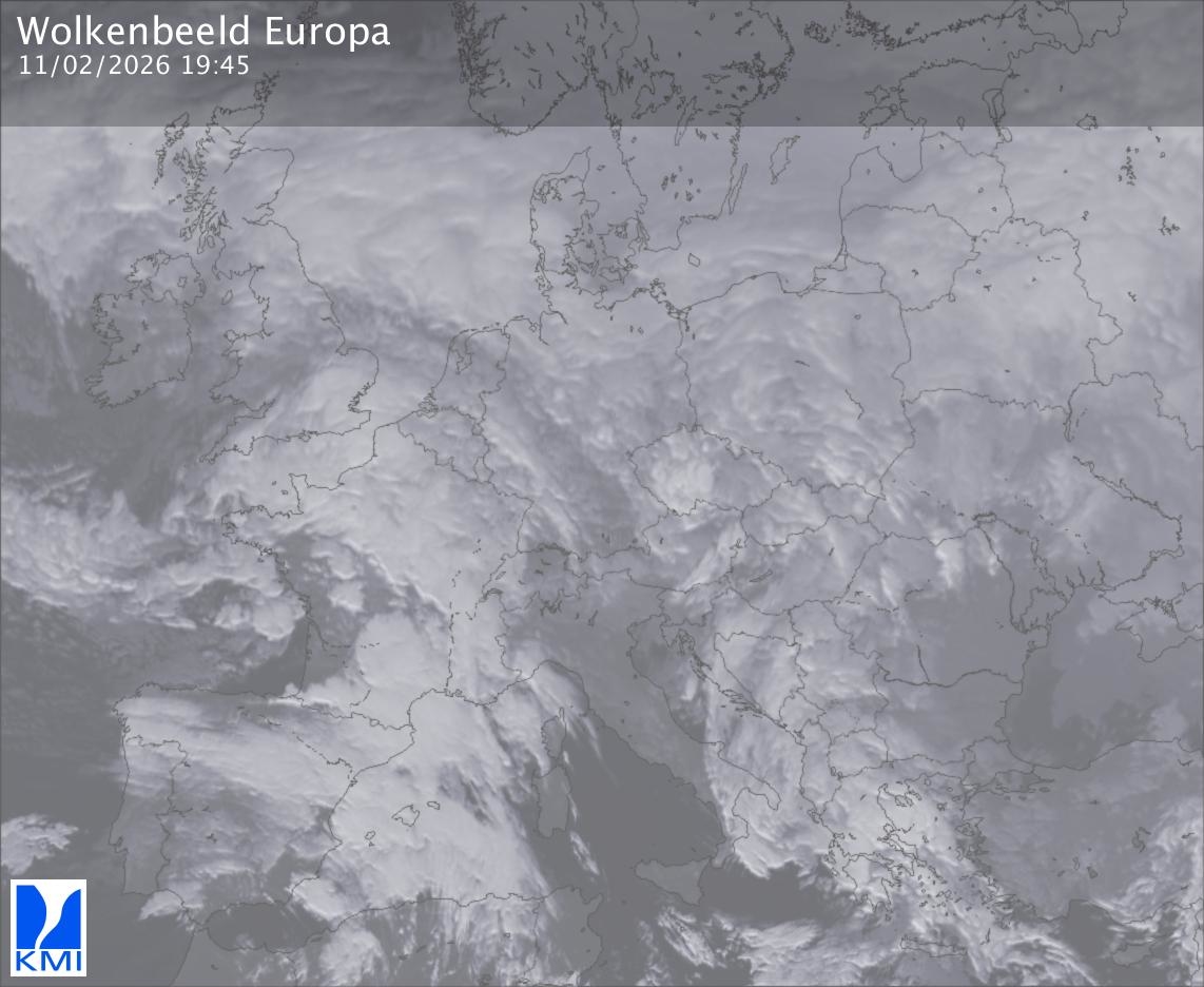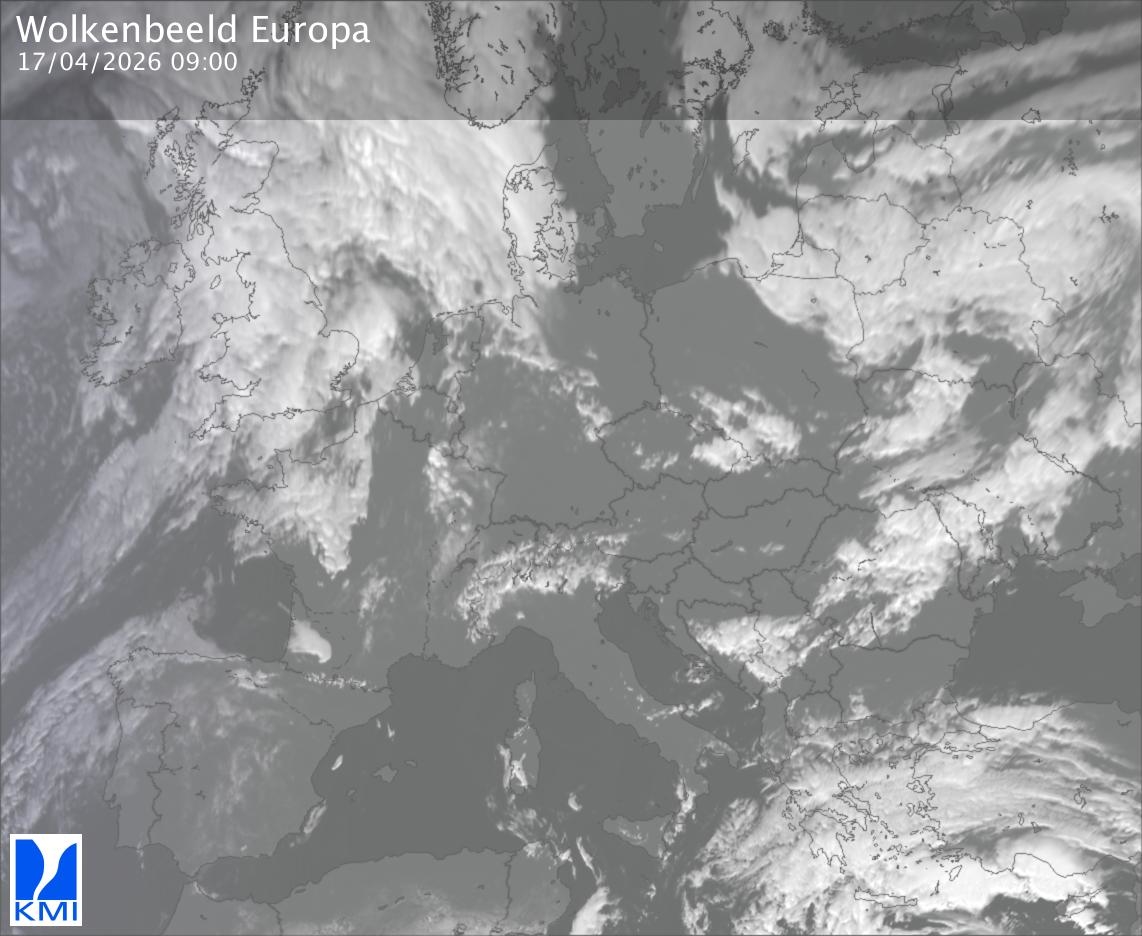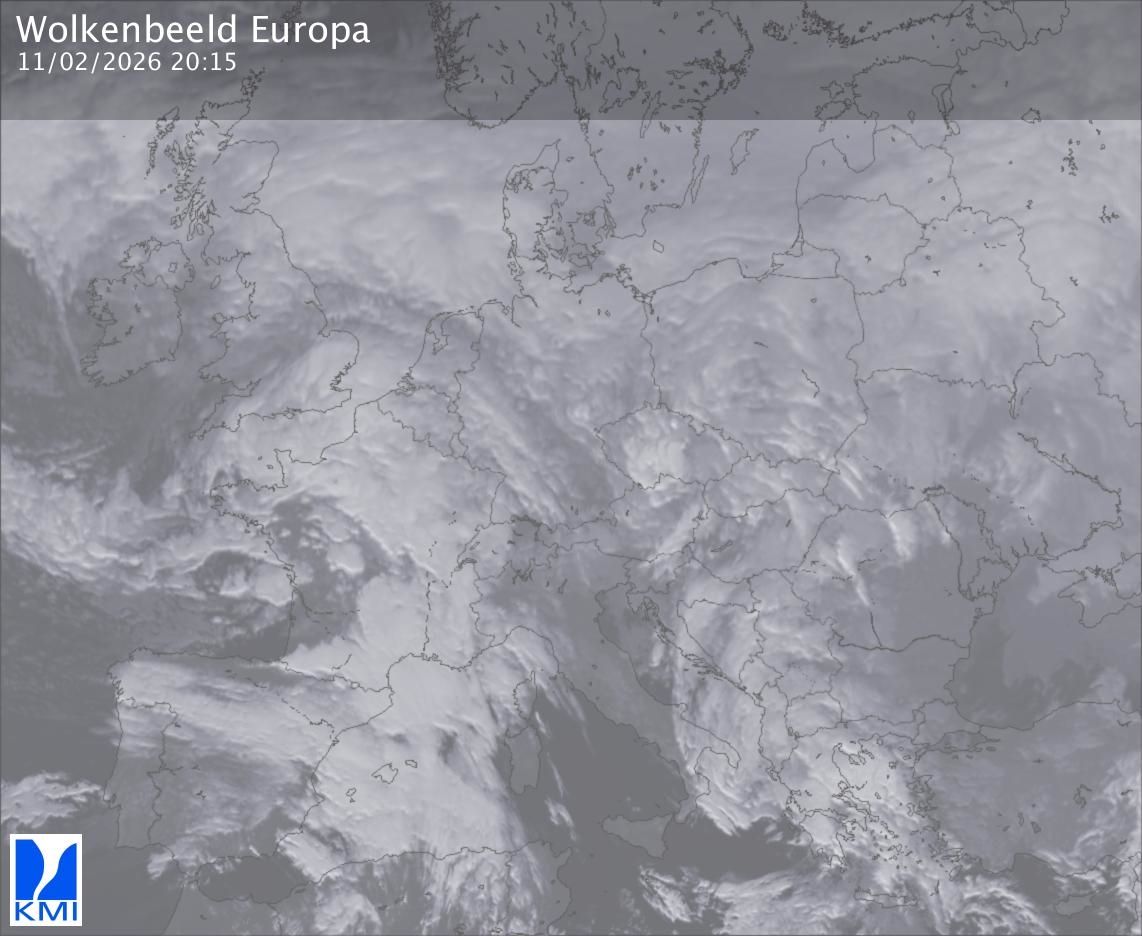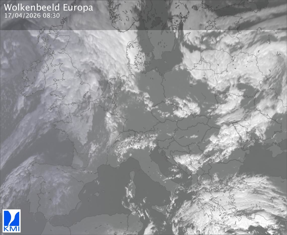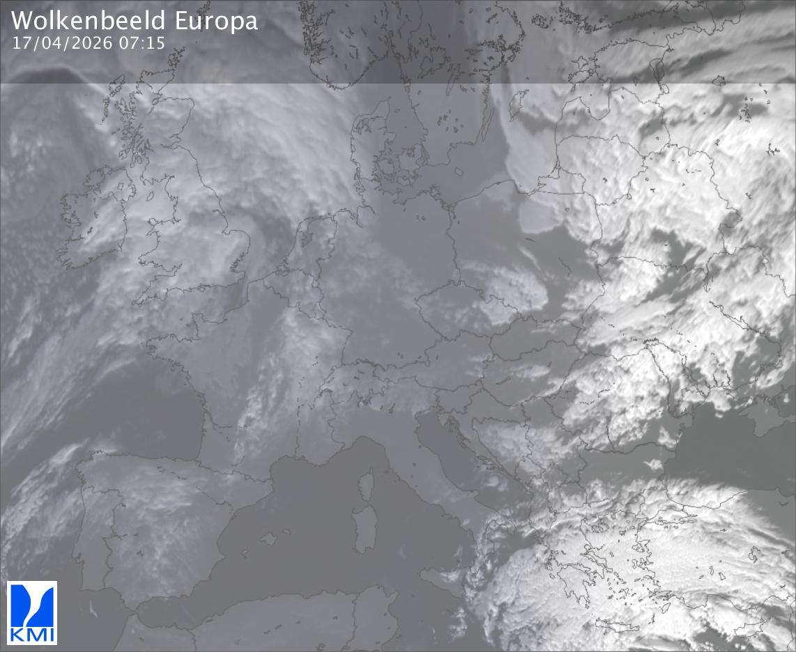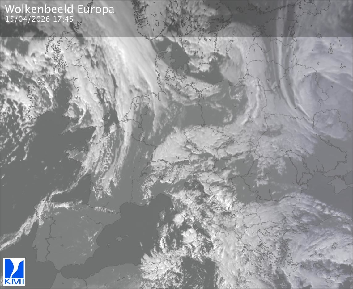 Wolkenbeelden van Europa: een combinatie uit het zichtbare (dag) en infrarode (nacht) spectrum.