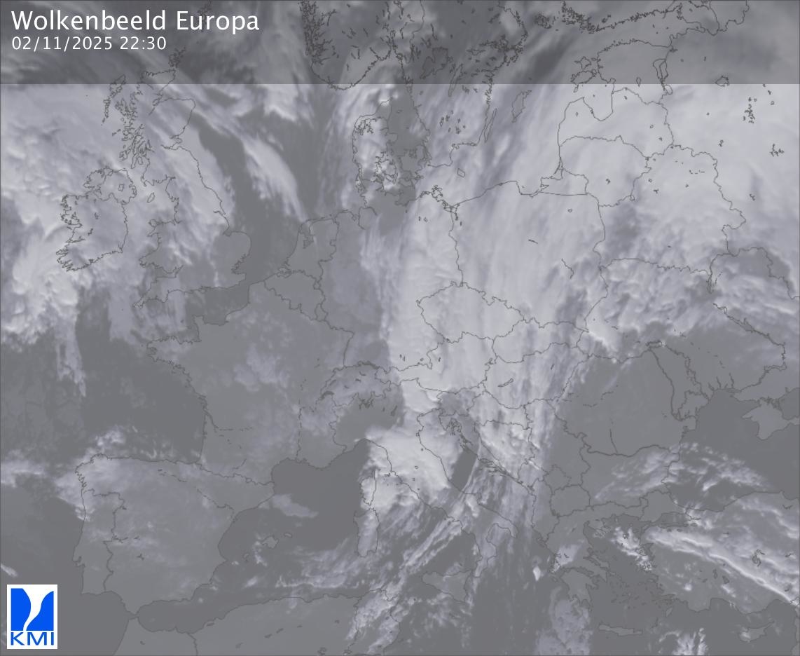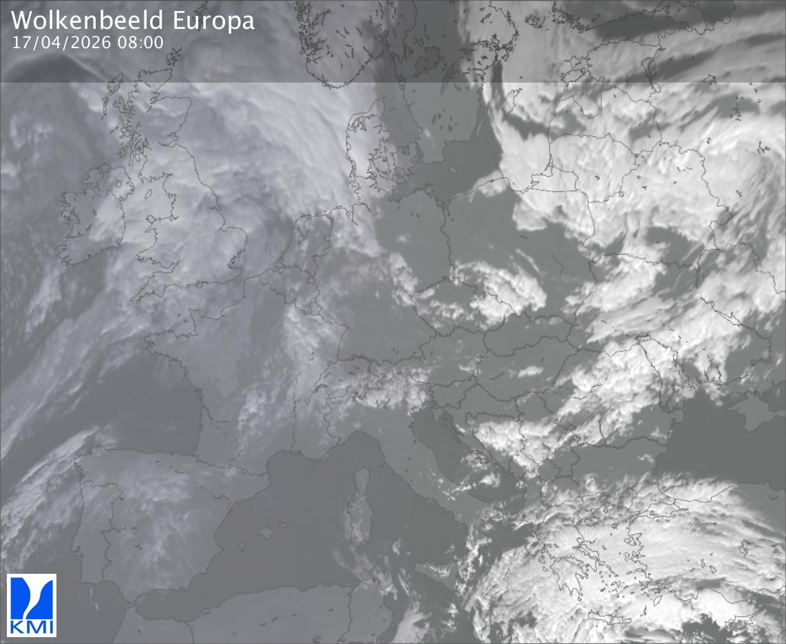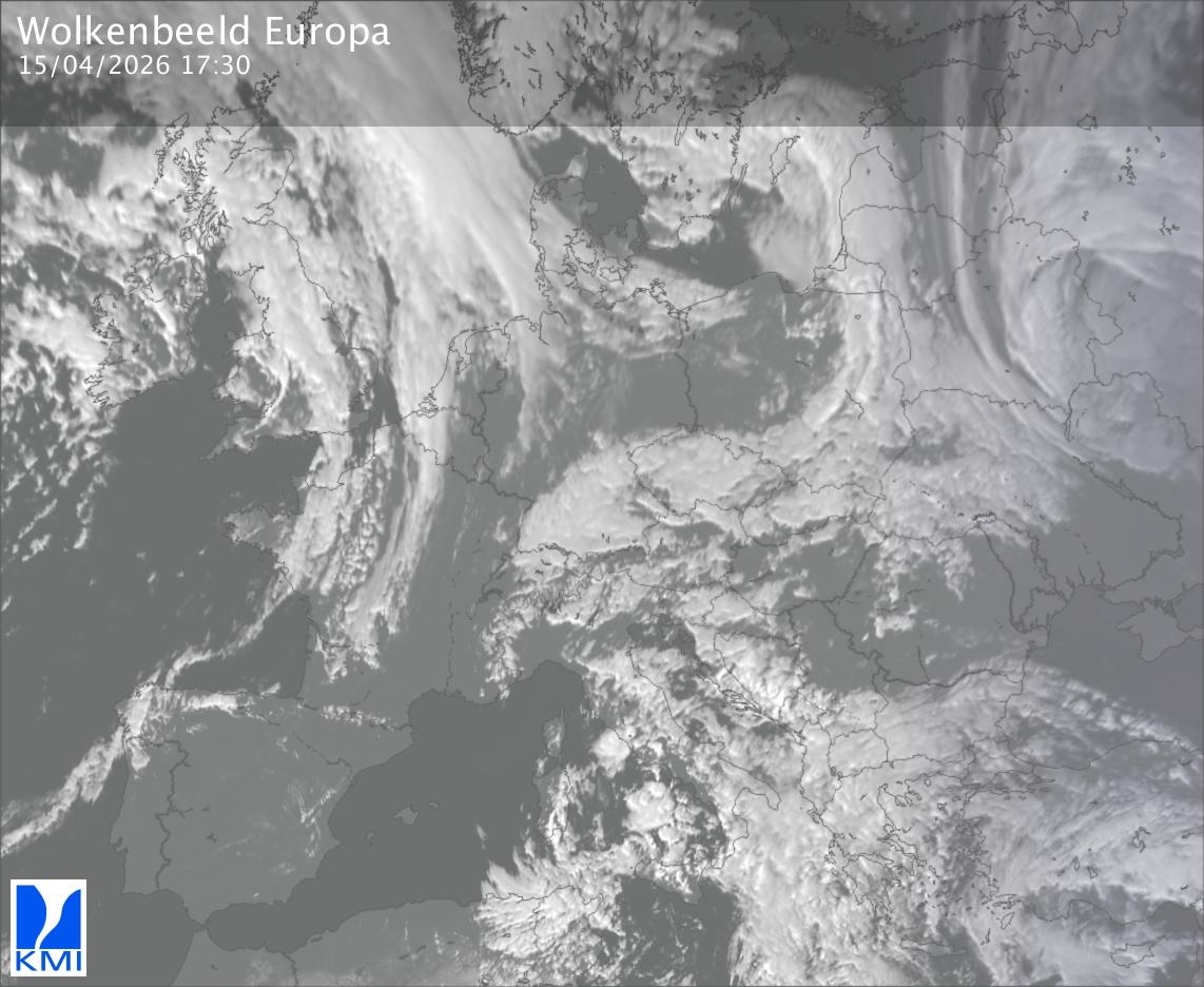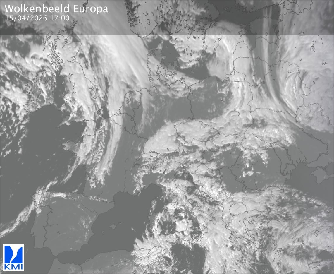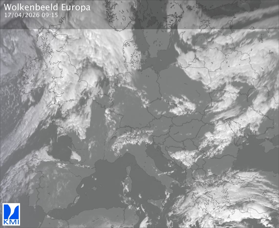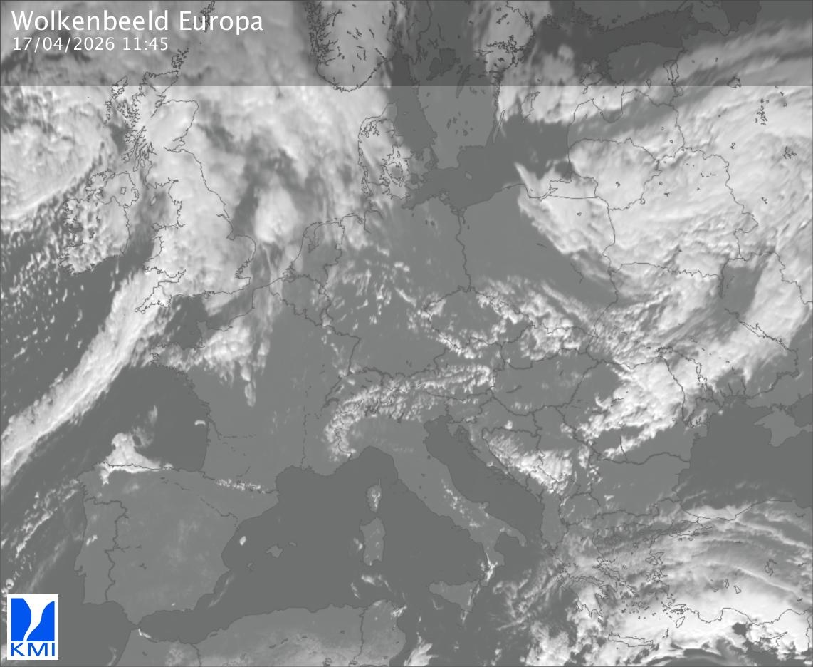 Wolkenbeelden van Europa: een combinatie uit het zichtbare (dag) en infrarode (nacht) spectrum.