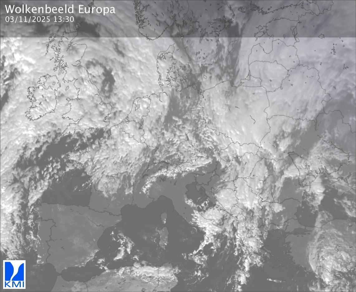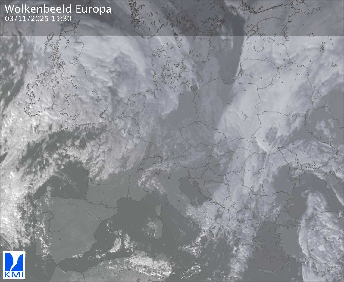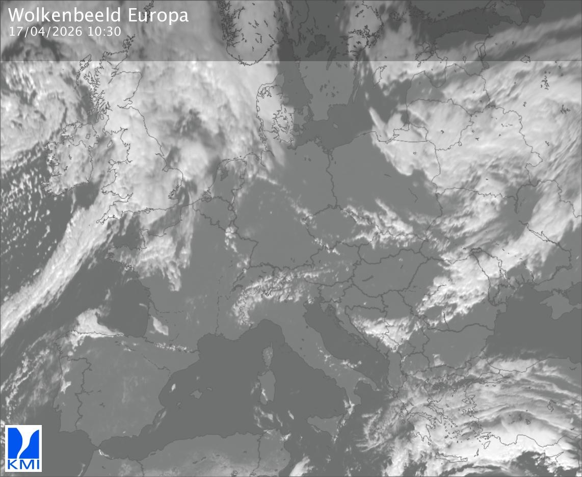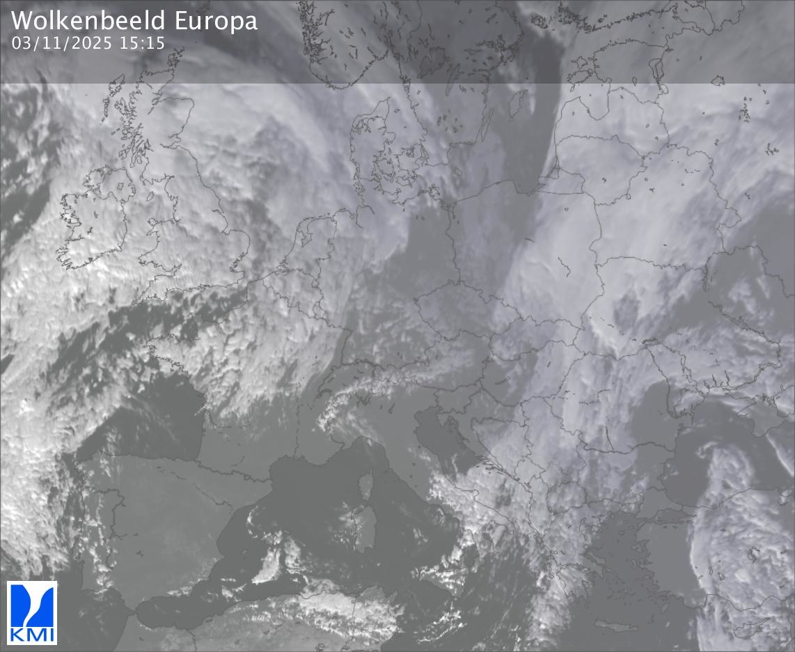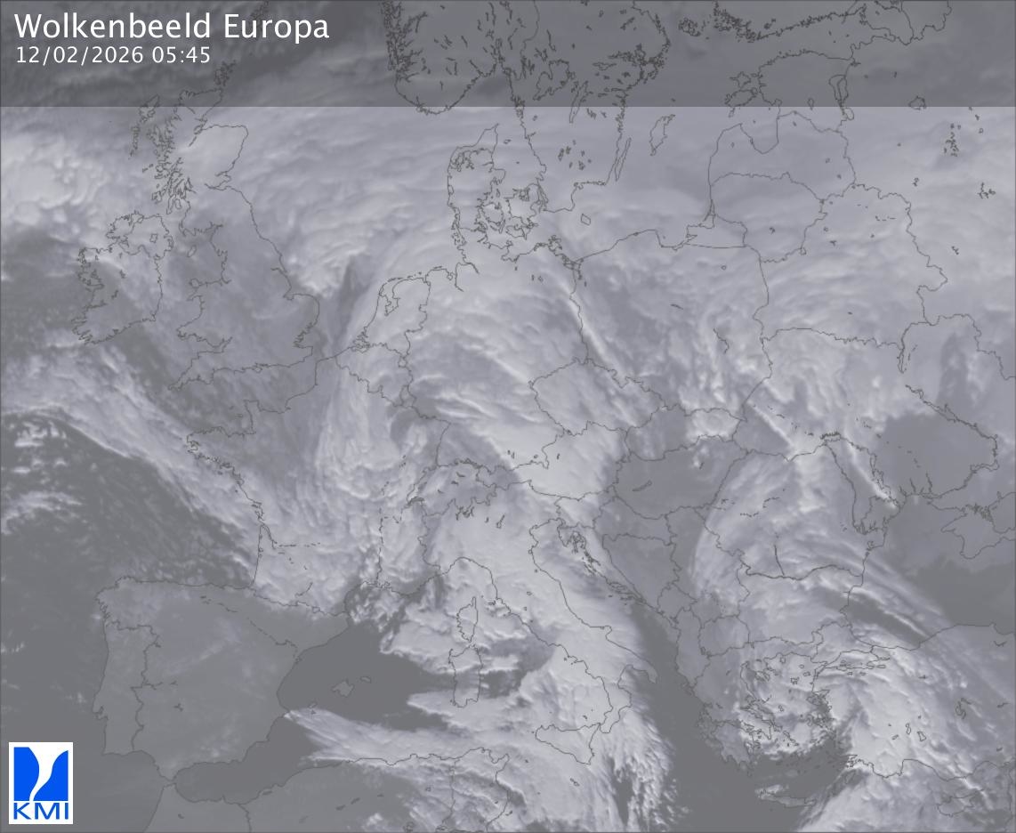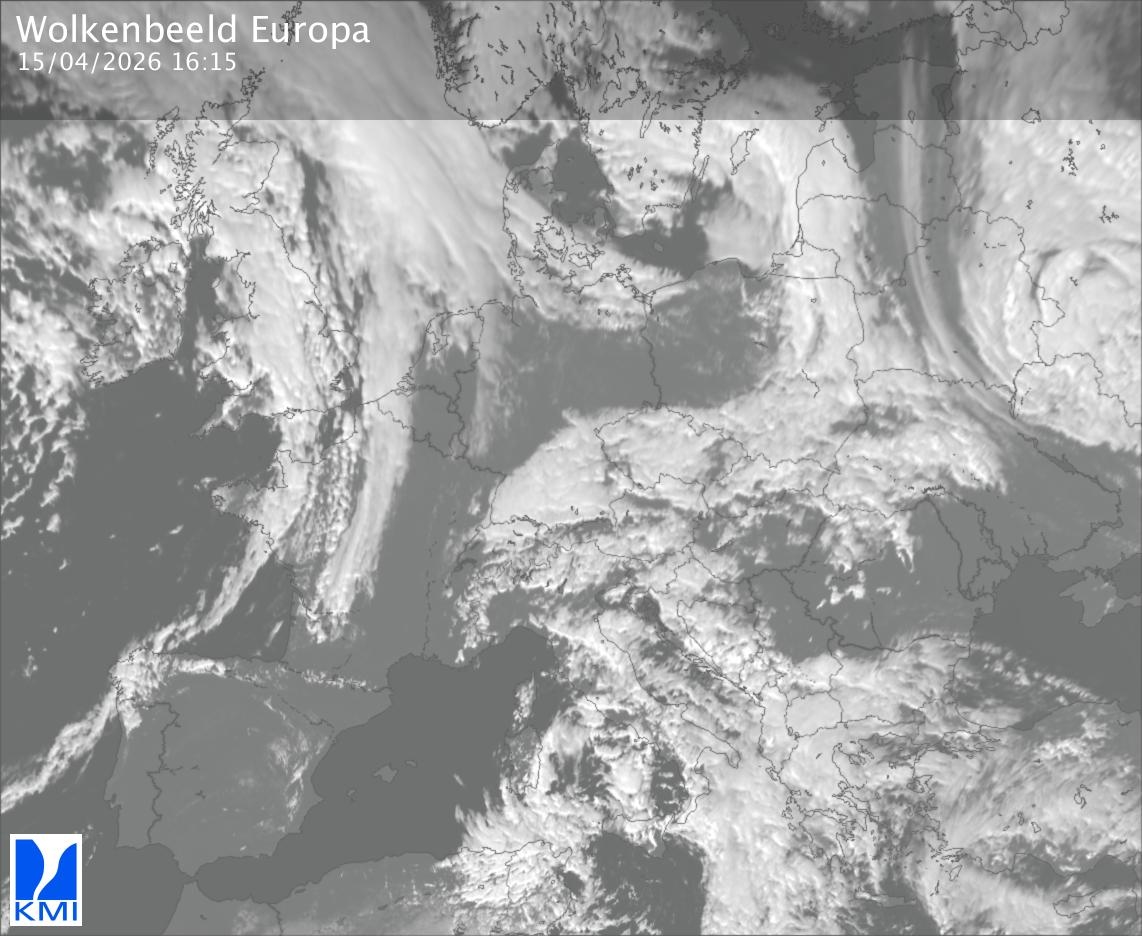 Wolkenbeelden van Europa: een combinatie uit het zichtbare (dag) en infrarode (nacht) spectrum.