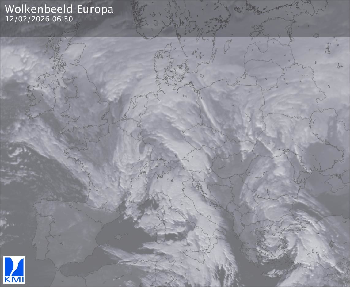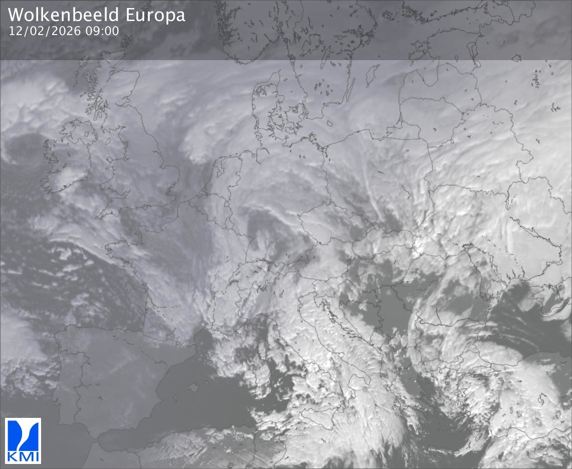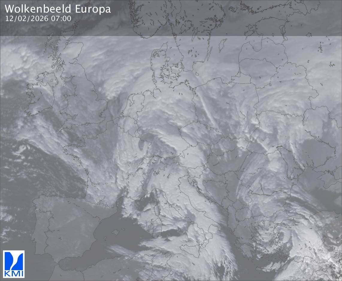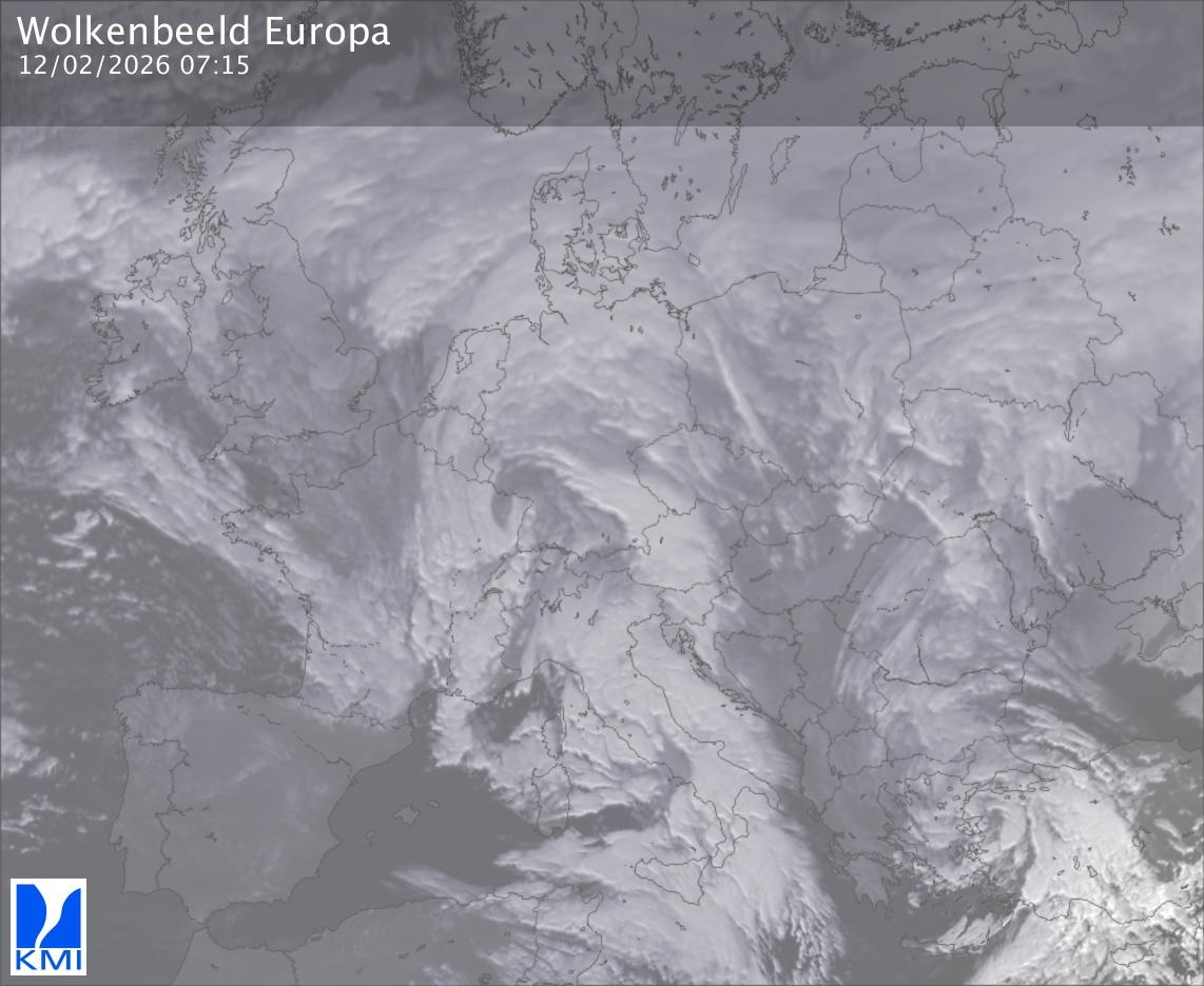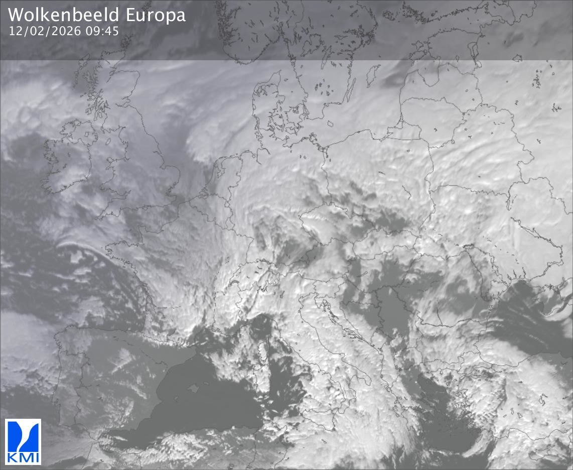 Wolkenbeelden van Europa: een combinatie uit het zichtbare (dag) en infrarode (nacht) spectrum.