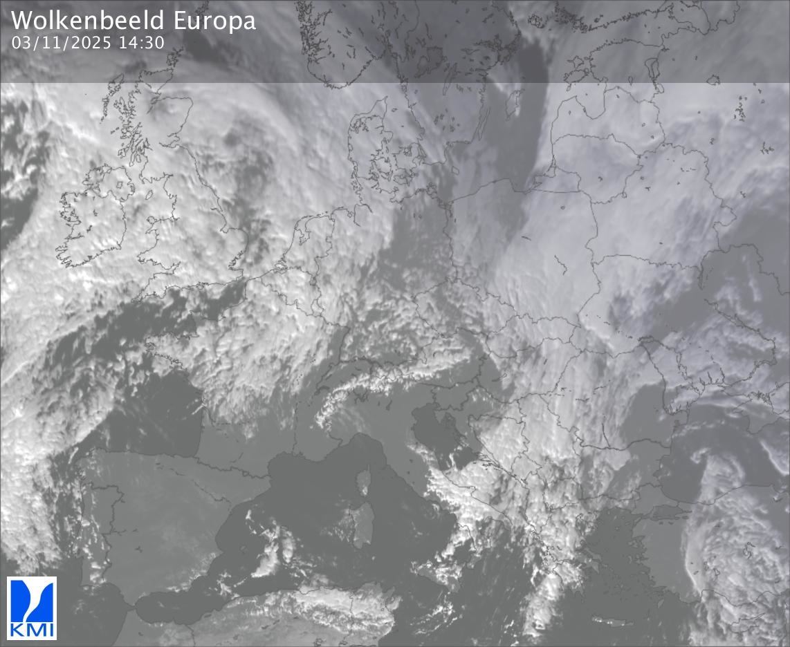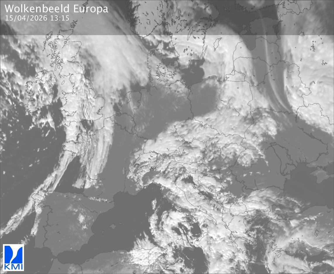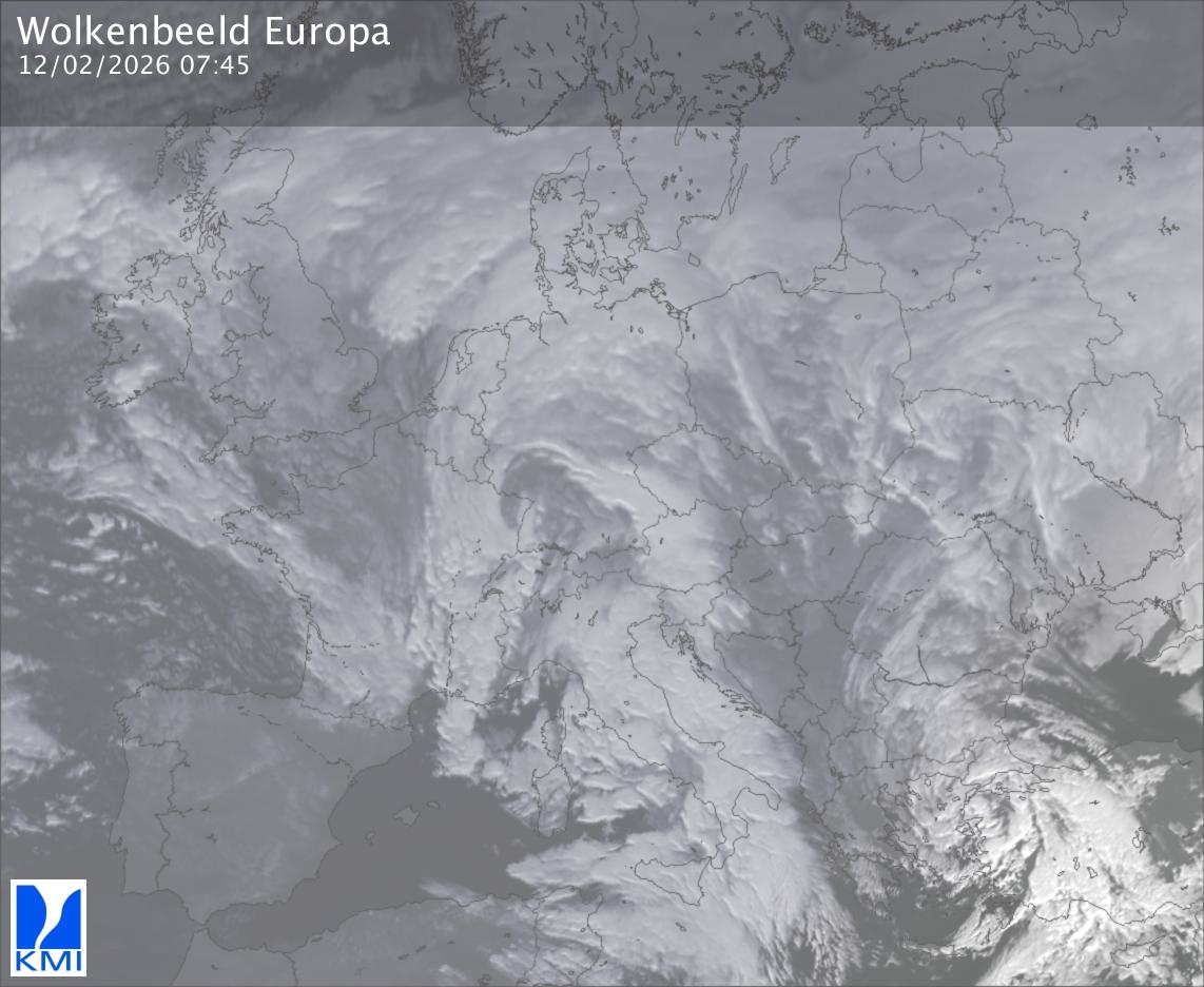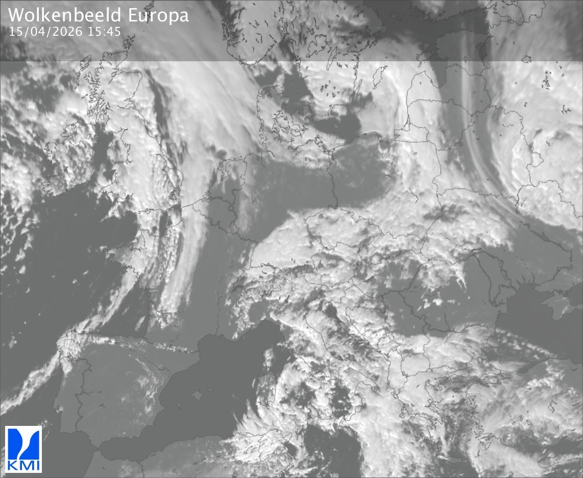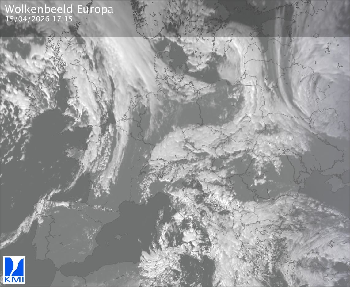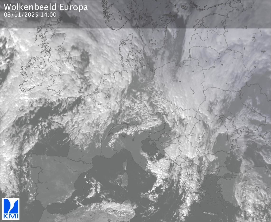 Wolkenbeelden van Europa: een combinatie uit het zichtbare (dag) en infrarode (nacht) spectrum.