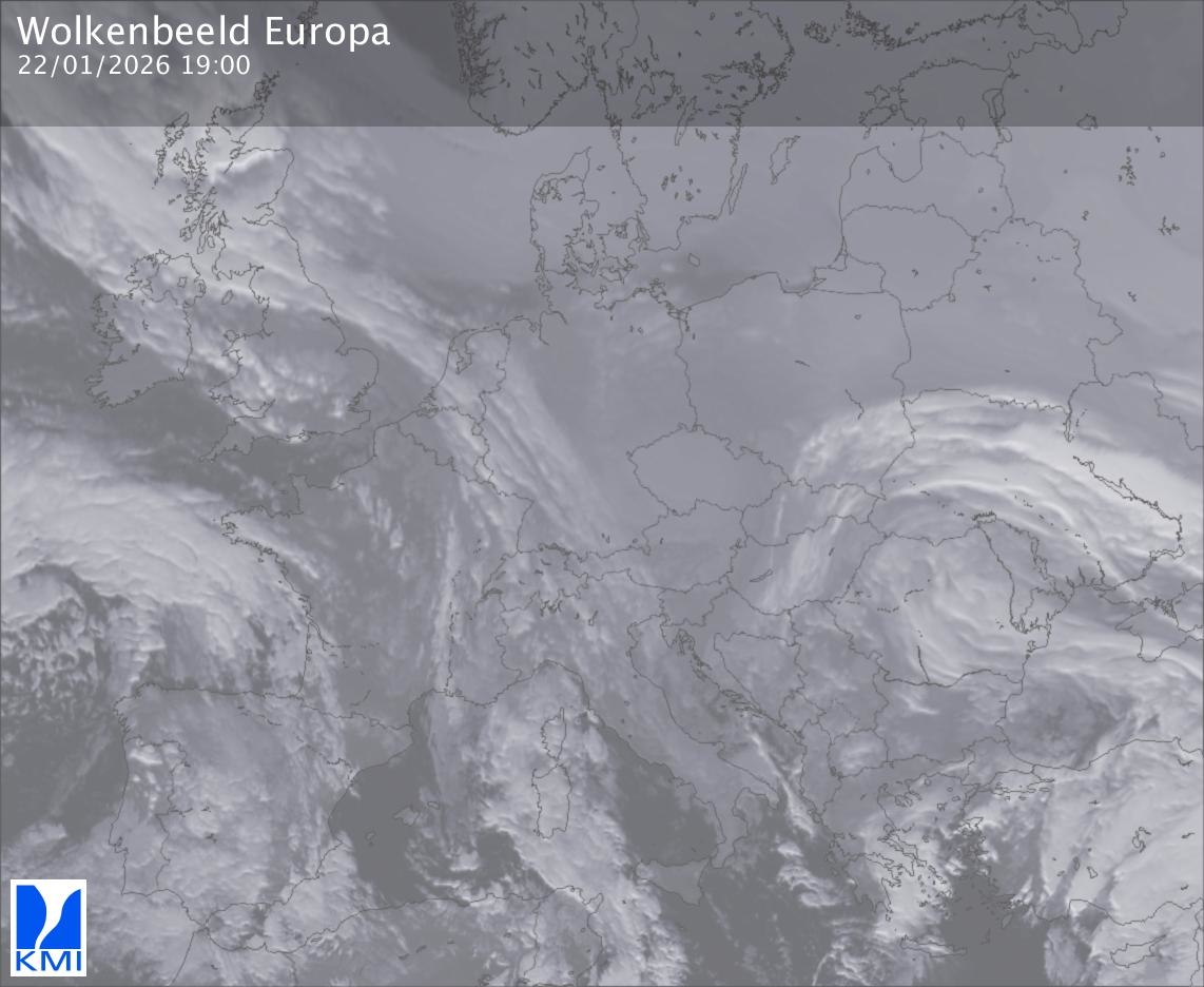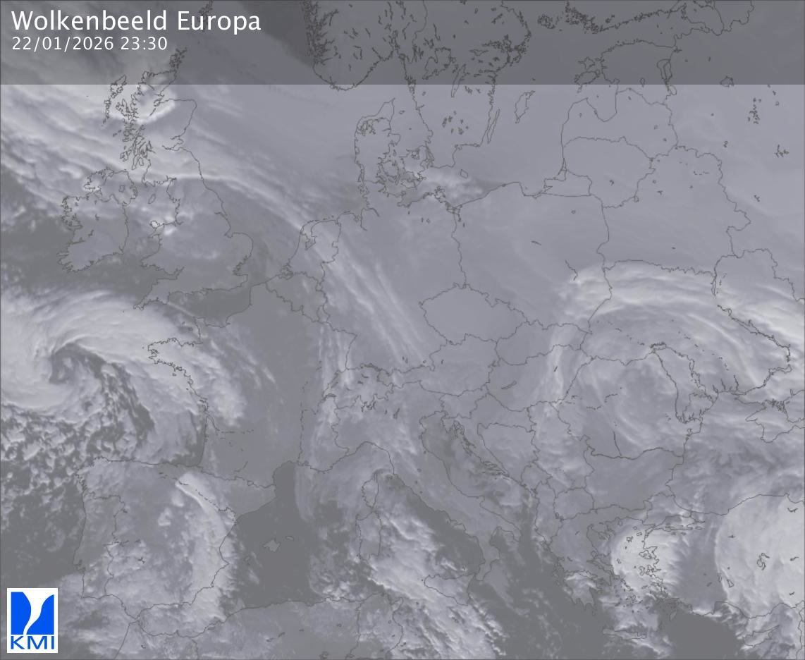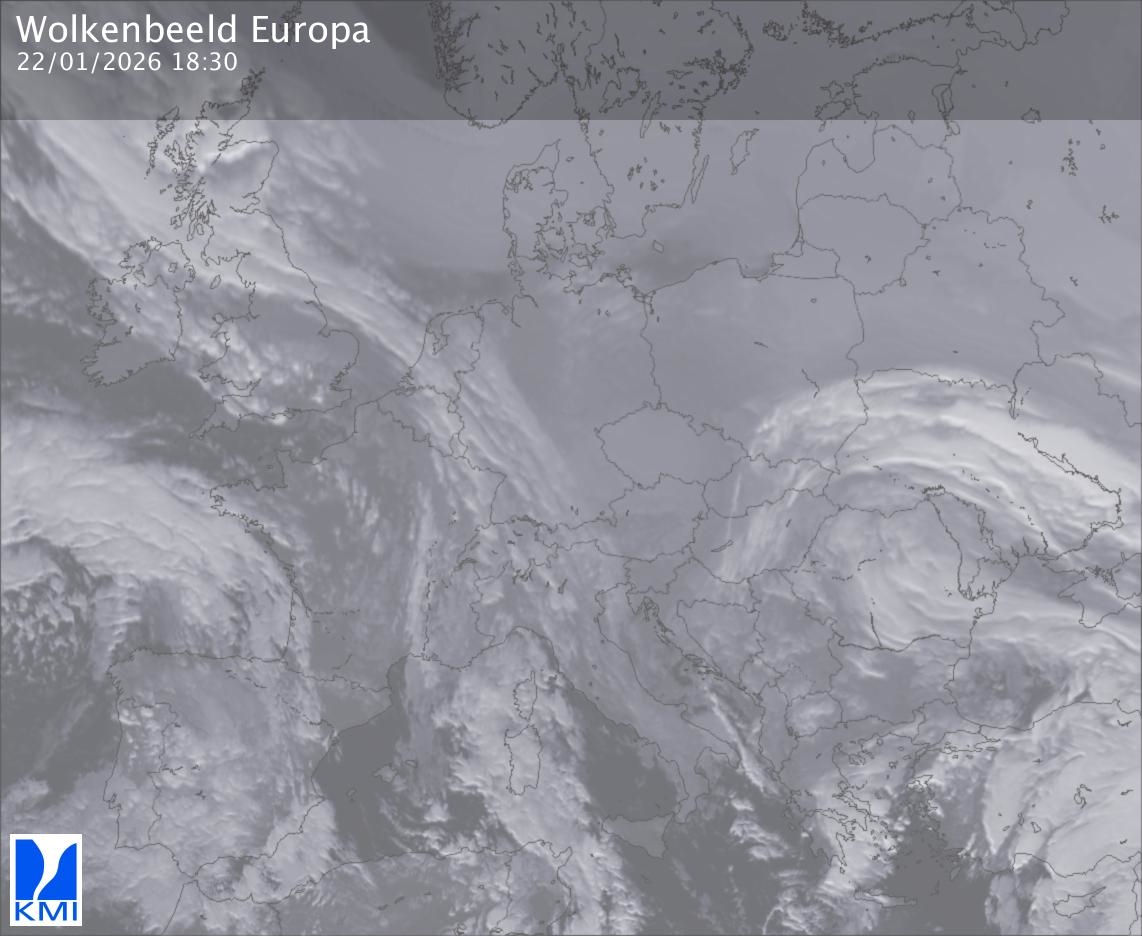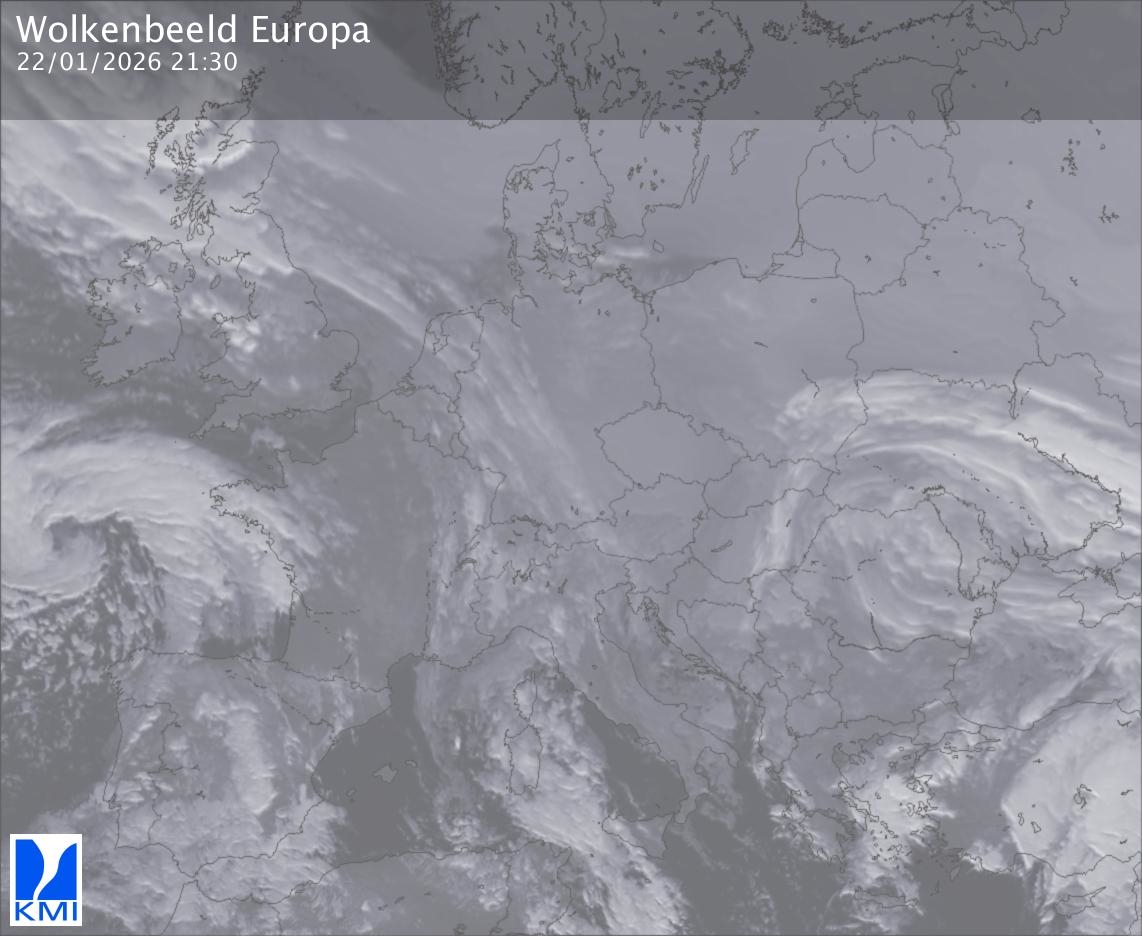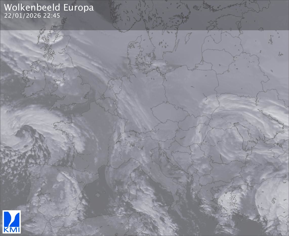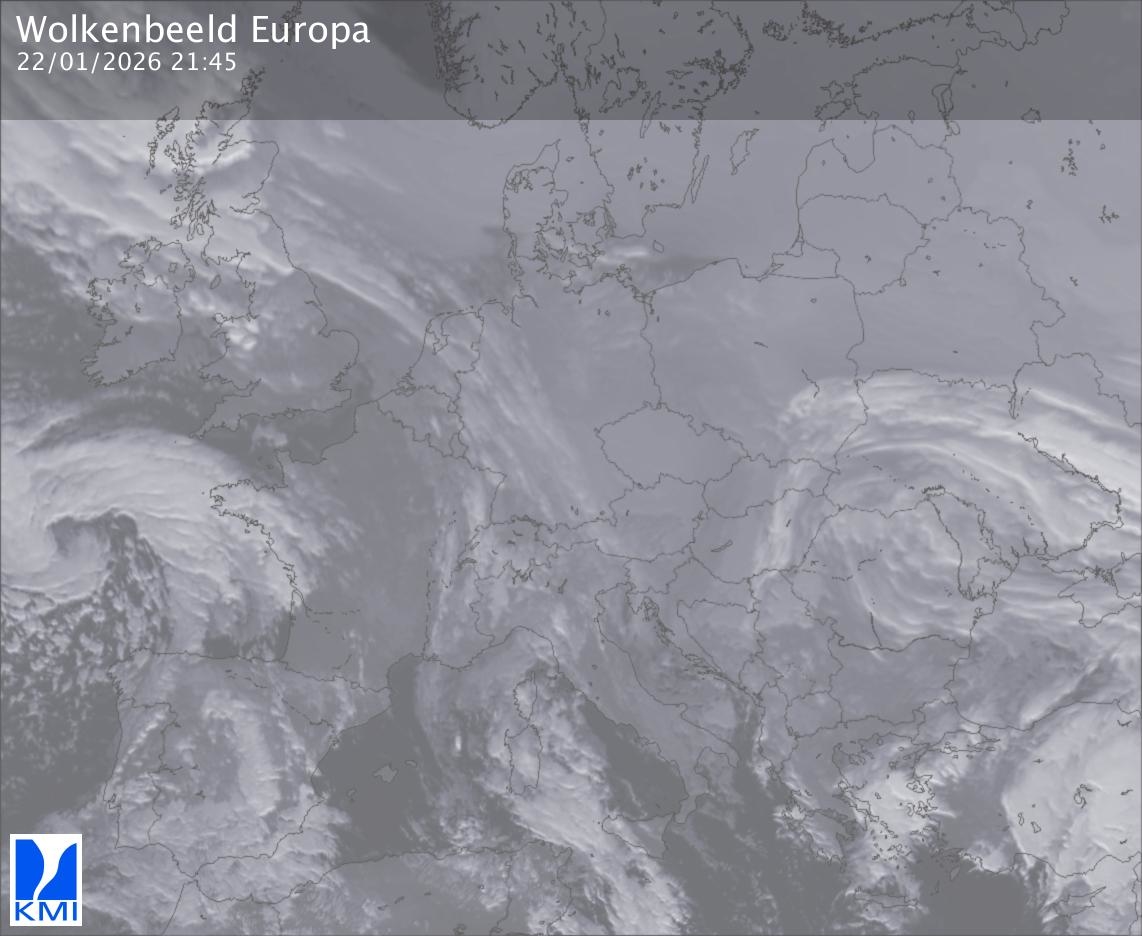 Wolkenbeelden van Europa: een combinatie uit het zichtbare (dag) en infrarode (nacht) spectrum.