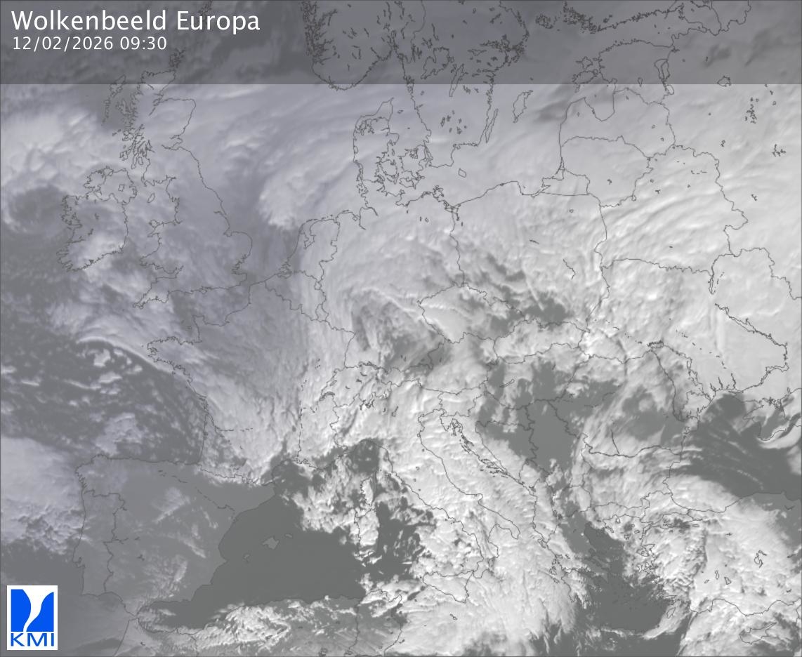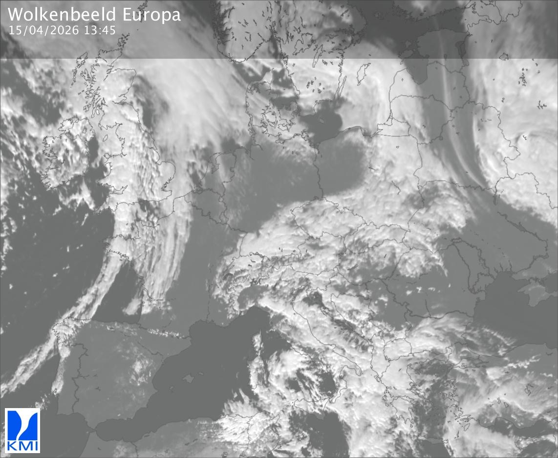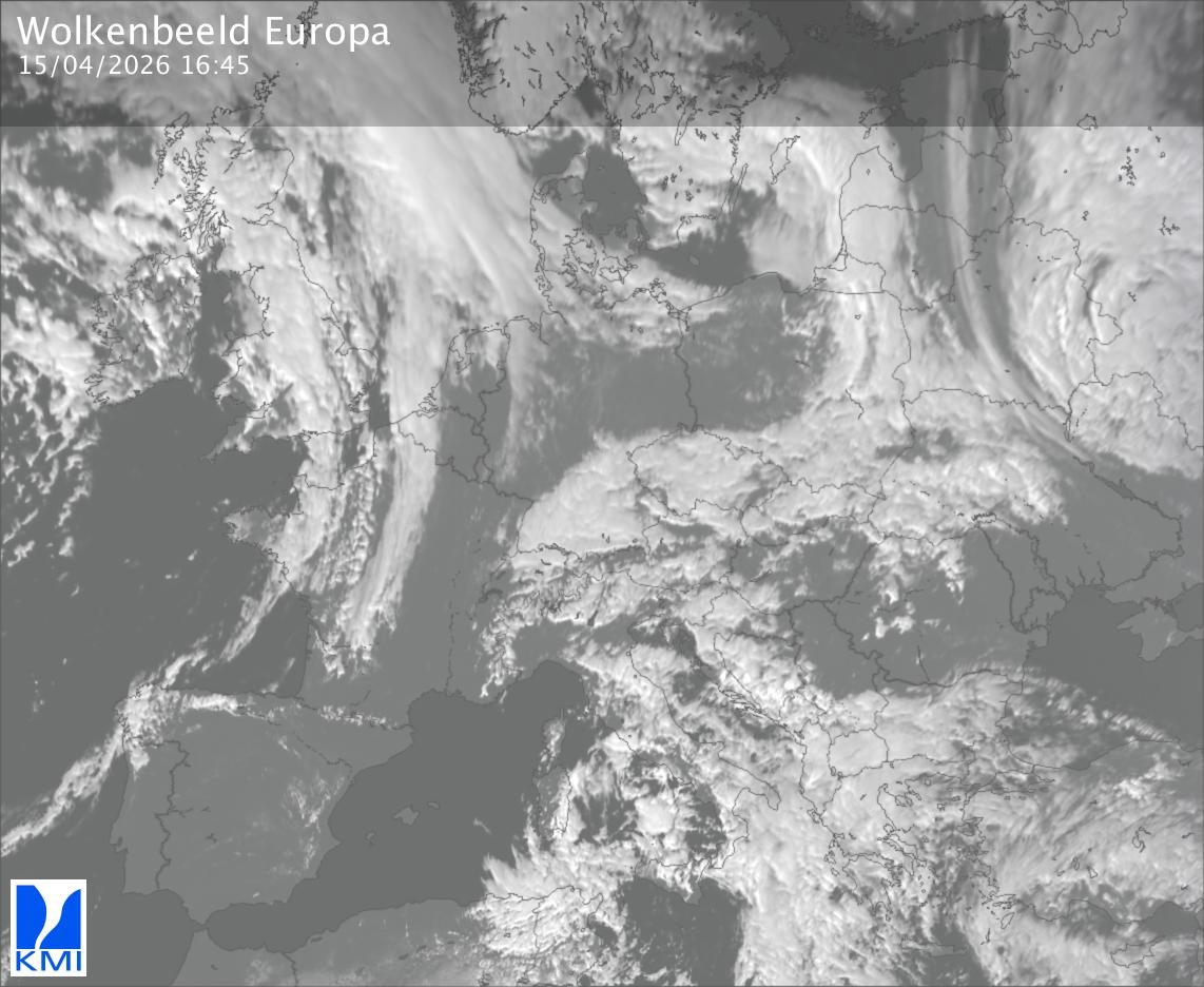 Hier ziet men wolkenbeelden die samengesteld worden door de satellietwaarnemingen uit het infrarode en het zichtbare golflengtebereik.