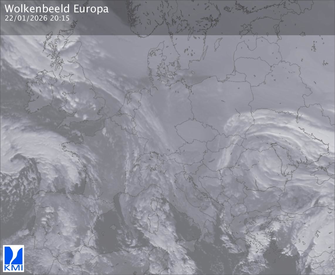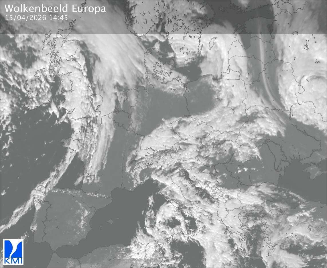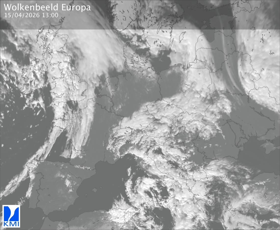 Hier ziet men wolkenbeelden die samengesteld worden door de satellietwaarnemingen uit het infrarode en het zichtbare golflengtebereik.