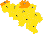 Deze namiddag en vanavond zijn er in het binnenland rukwinden tot 70 à 100 km/u of zeer lokaal wat meer, en aan zee tot tussen 100 en 120 km/u of zeer lokaal meer. Op de Belgische Noordzee komt er tijdelijk storm tot zware storm (9-10 Bf) uit west tot noordwest.